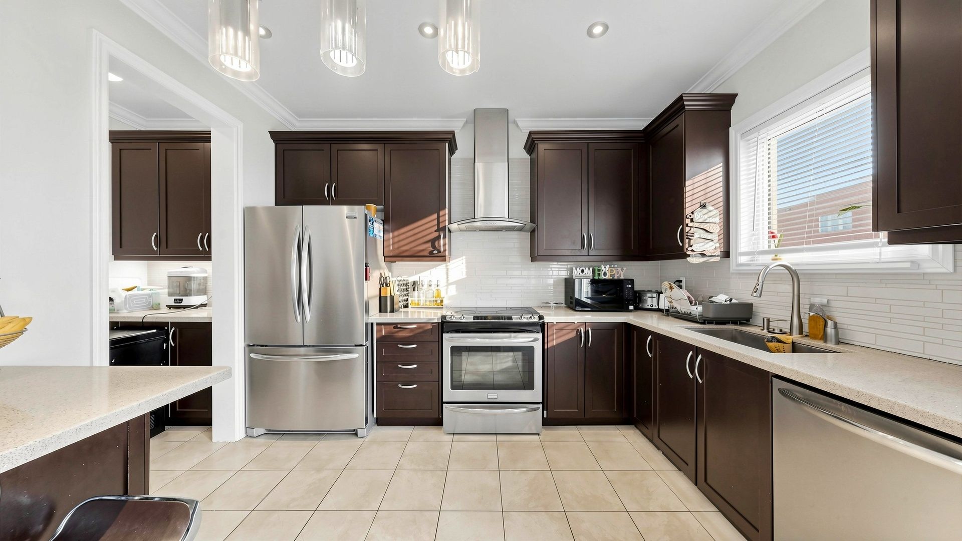 Experience luxury in this captivating 4-bedroom residence spanning 2807 sqft. The open-concept main floor features 9 ft ceilings, hardwood, and tile flooring, complemented by crown moulding. A gourmet kitchen with quartz countertops and glass tile backsplash opens to a spacious family room. The main floor office offers flexibility. Upstairs, four large bedrooms await, each with ample closets. The finished legal basement adds three bedrooms and two washrooms for added convenience. Welcome to unparalleled comfort and elegance in this remarkable home.
