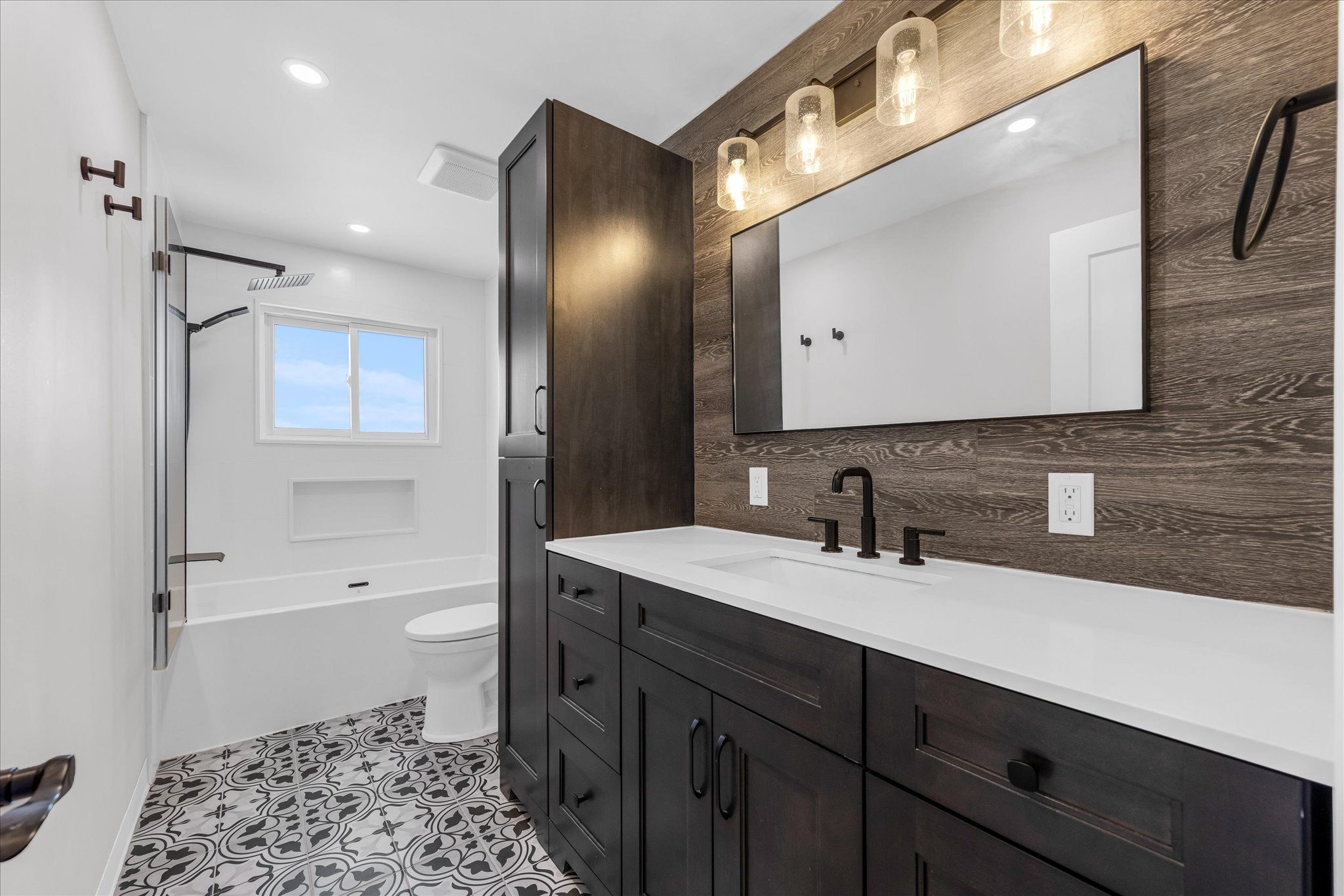 • Fully finished recreation room with a cozy gas fireplace.