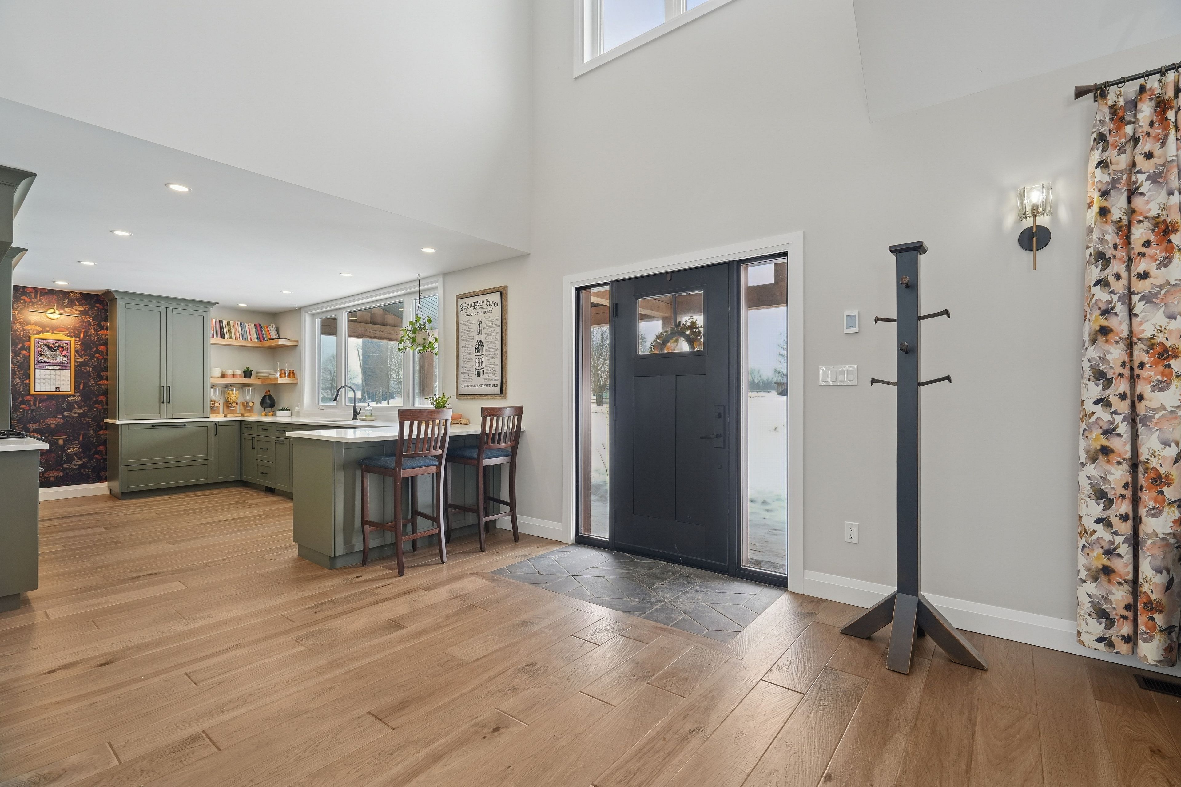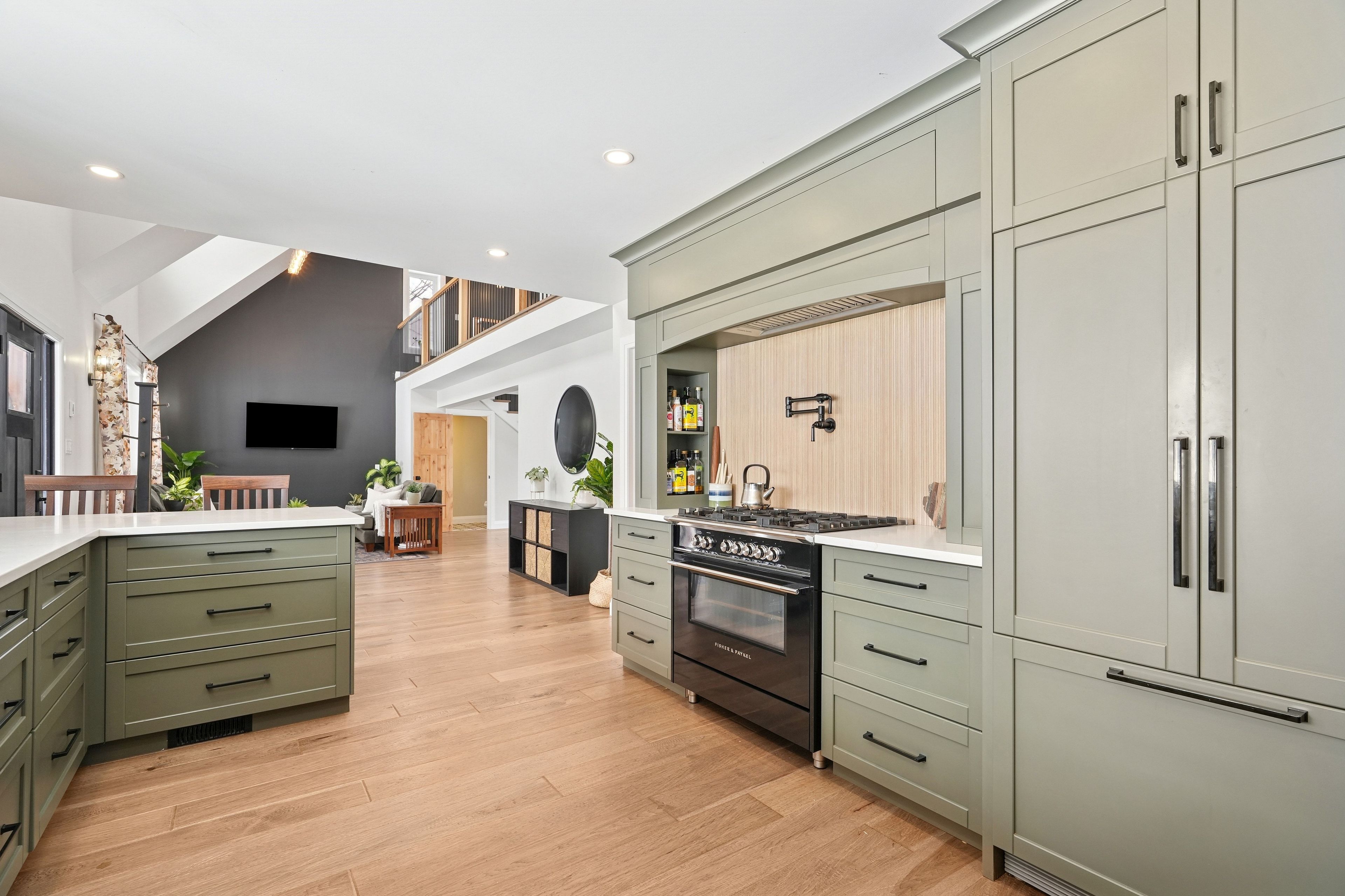 • Bright open-concept main floor with a chef's kitchen and large walk-in pantry.