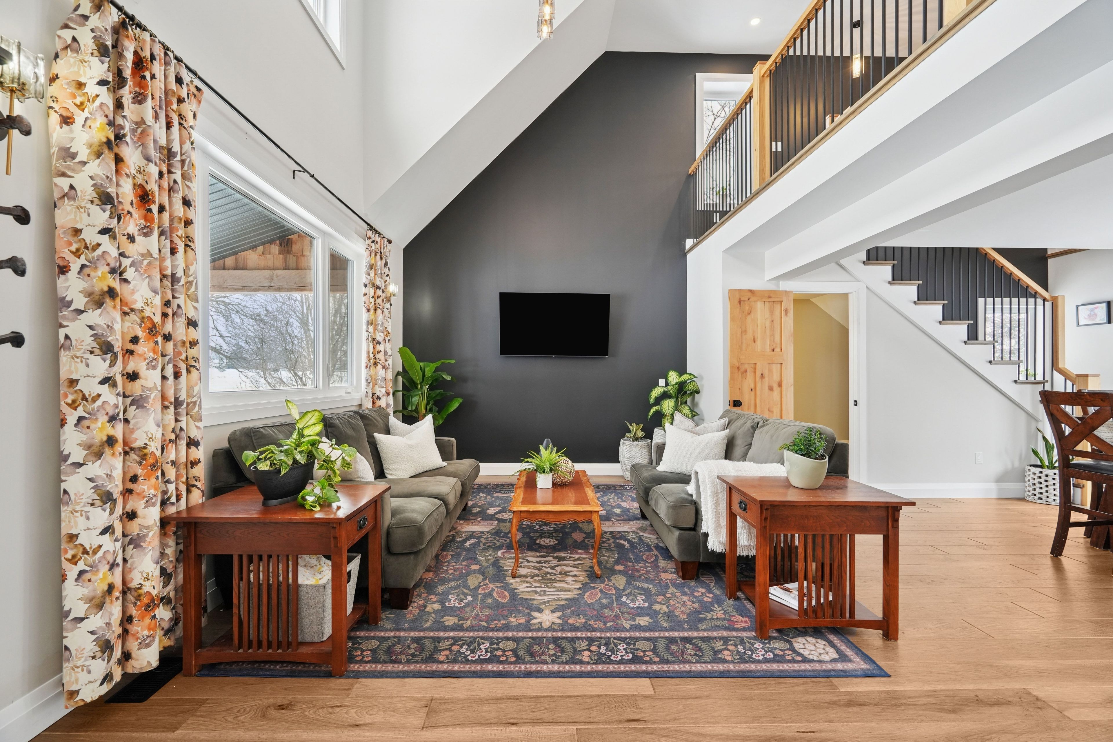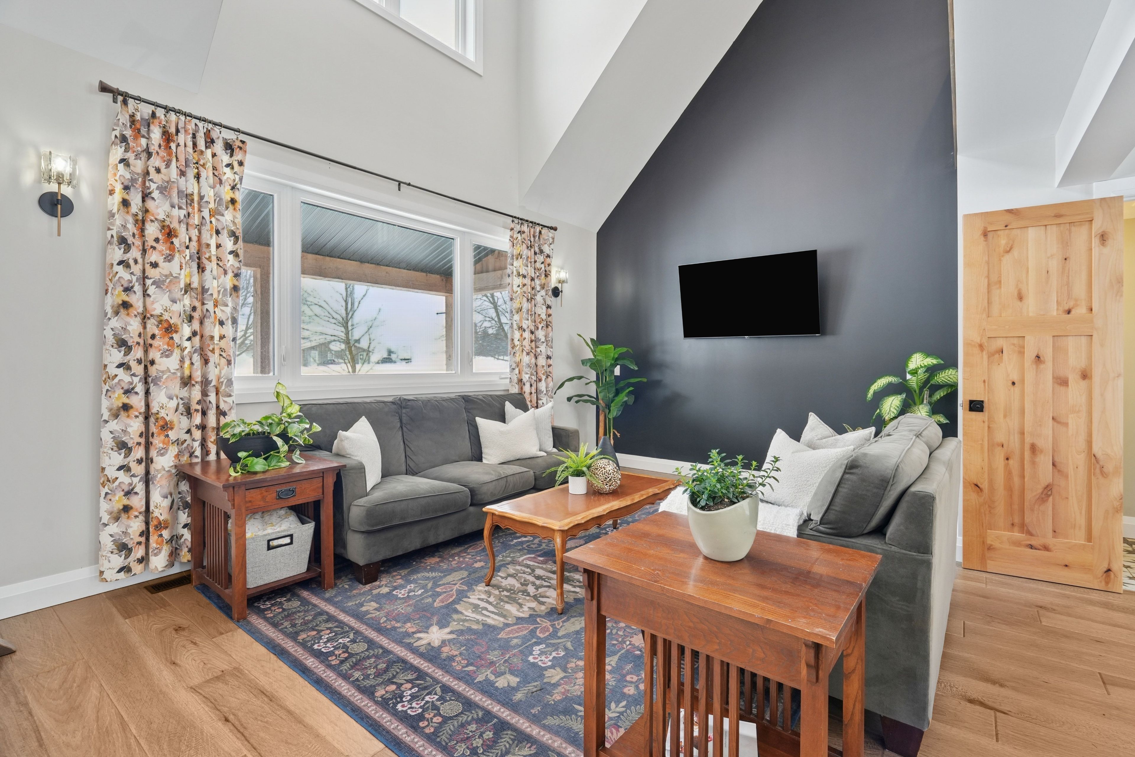 • Vaulted ceiling in the living room creates an airy, inviting atmosphere.