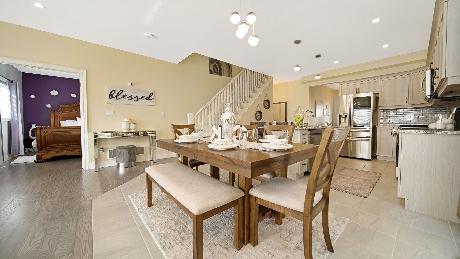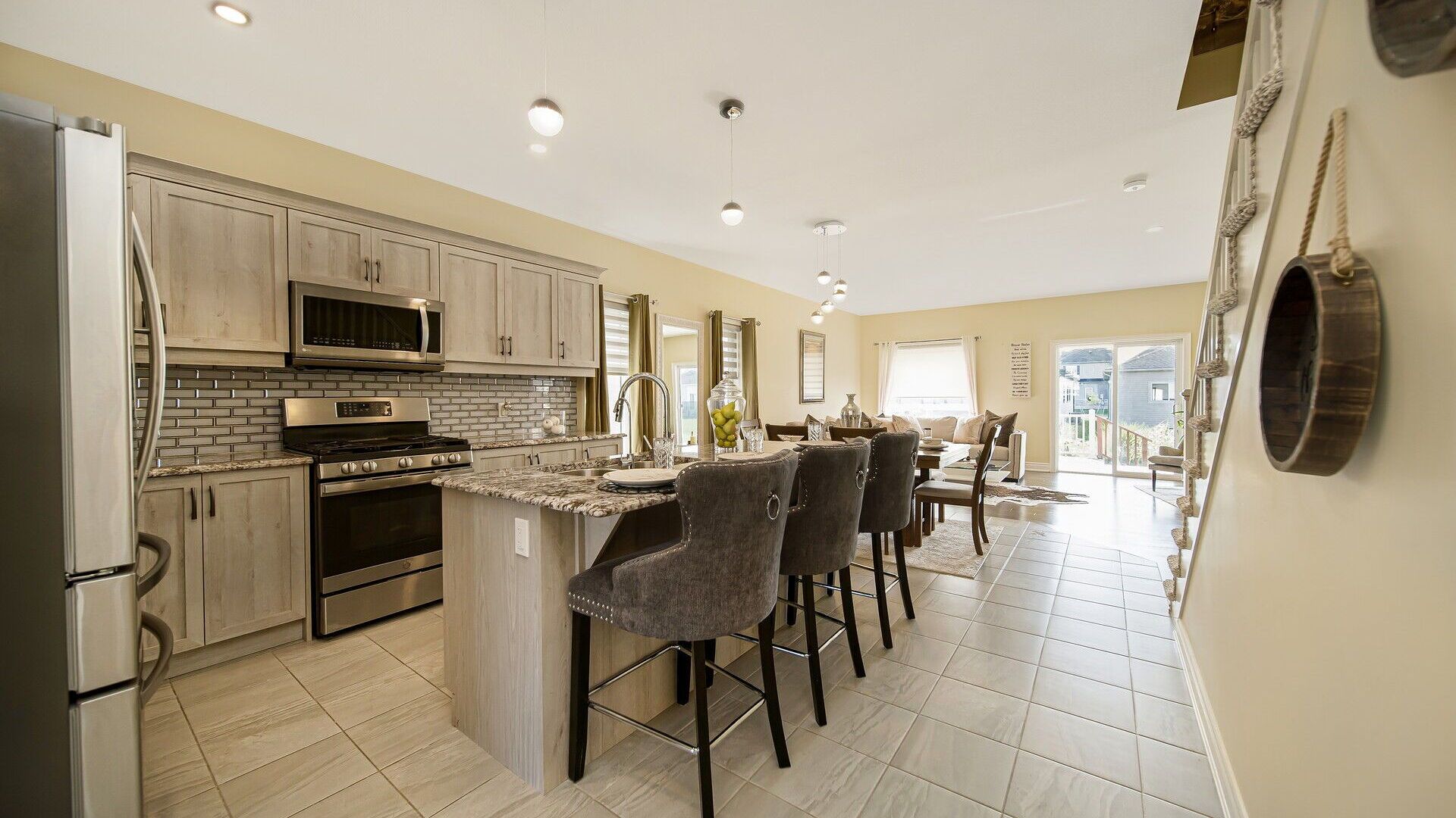 • Modern kitchen with quartz countertops and state-of-the-art appliances.