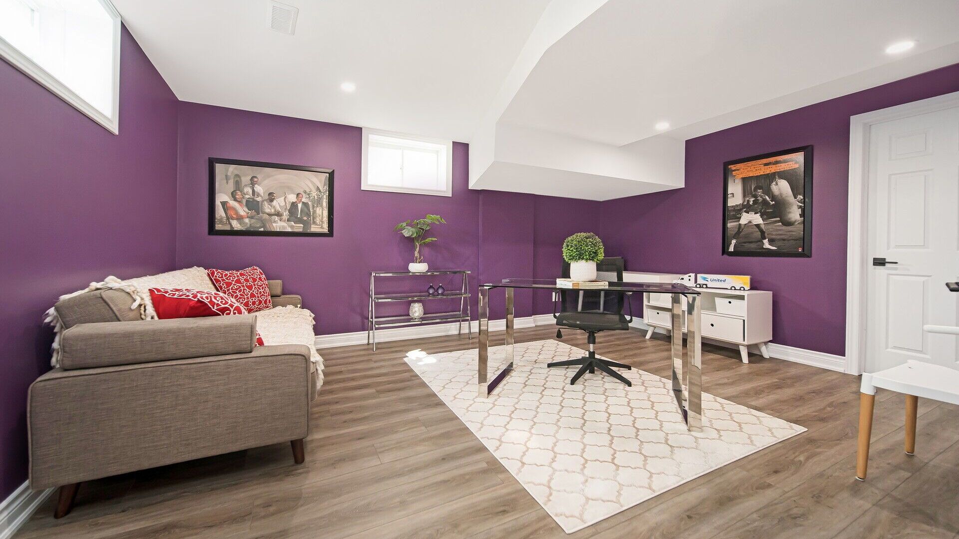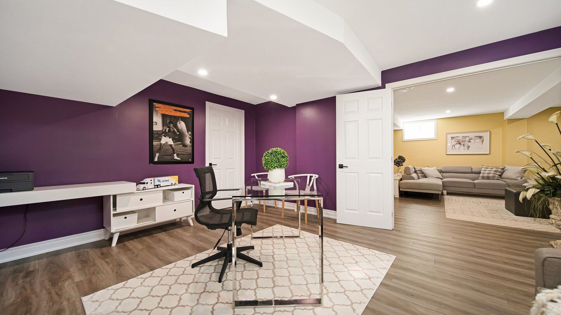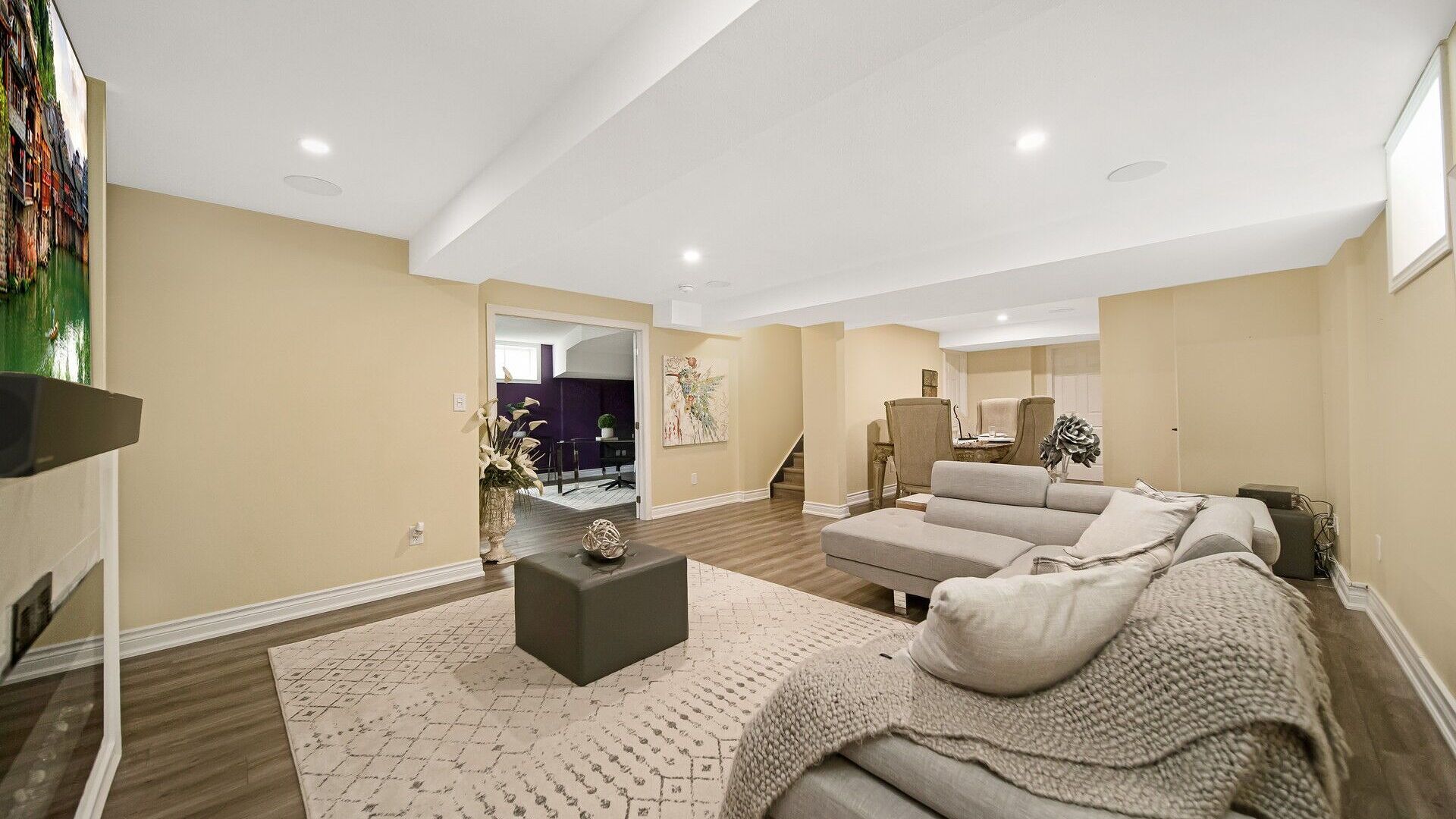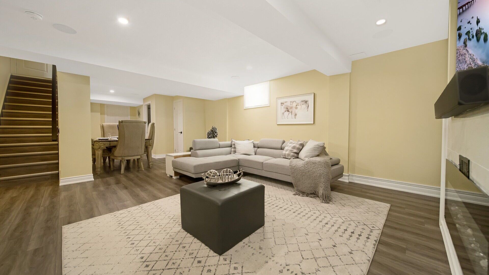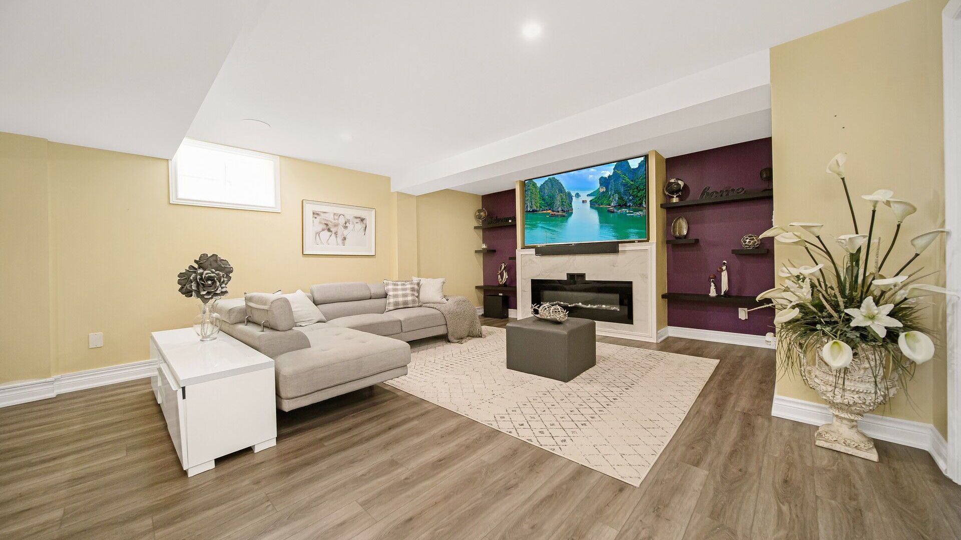 • Finished basement featuring a cozy fireplace and large recreation area.