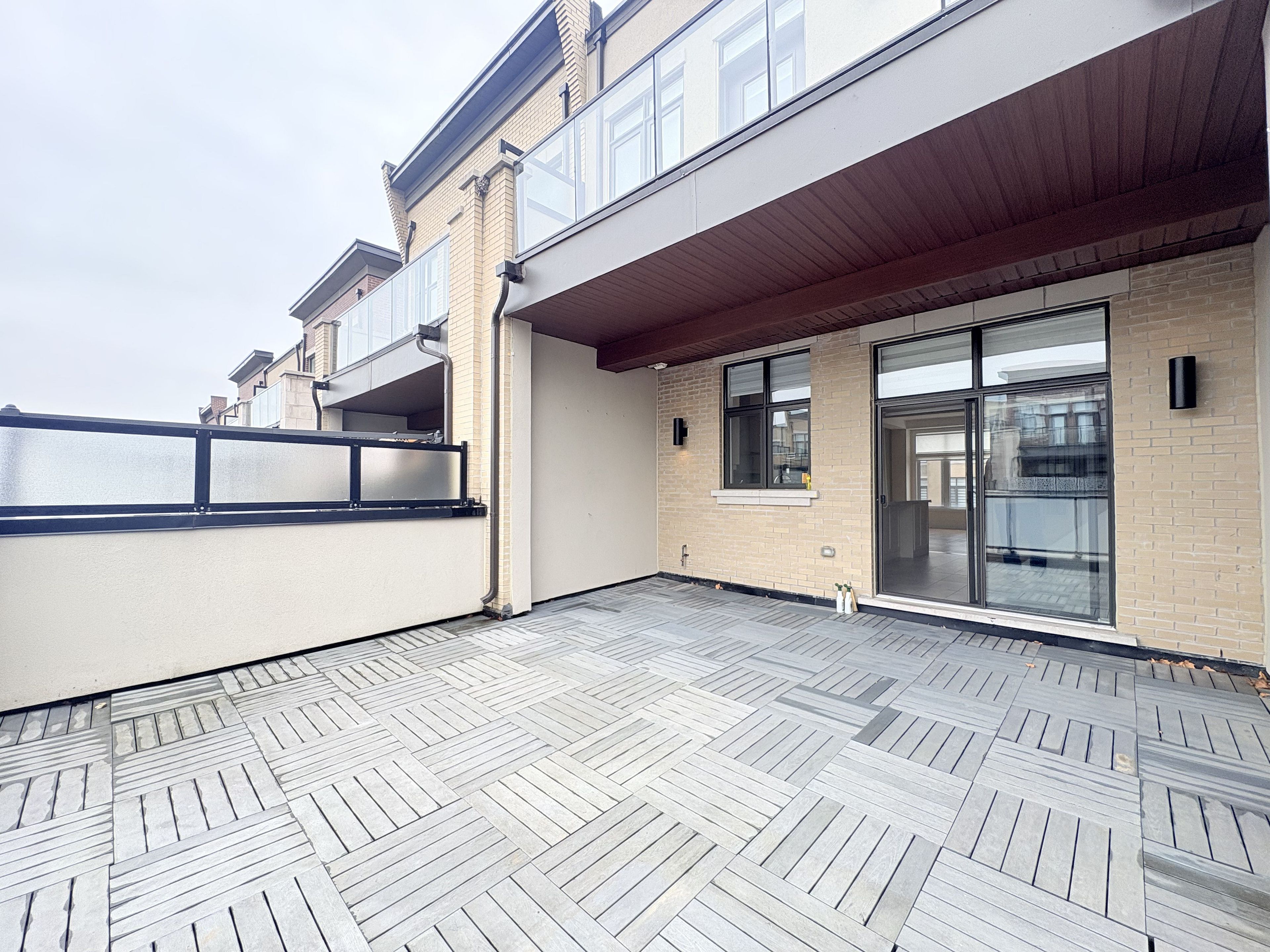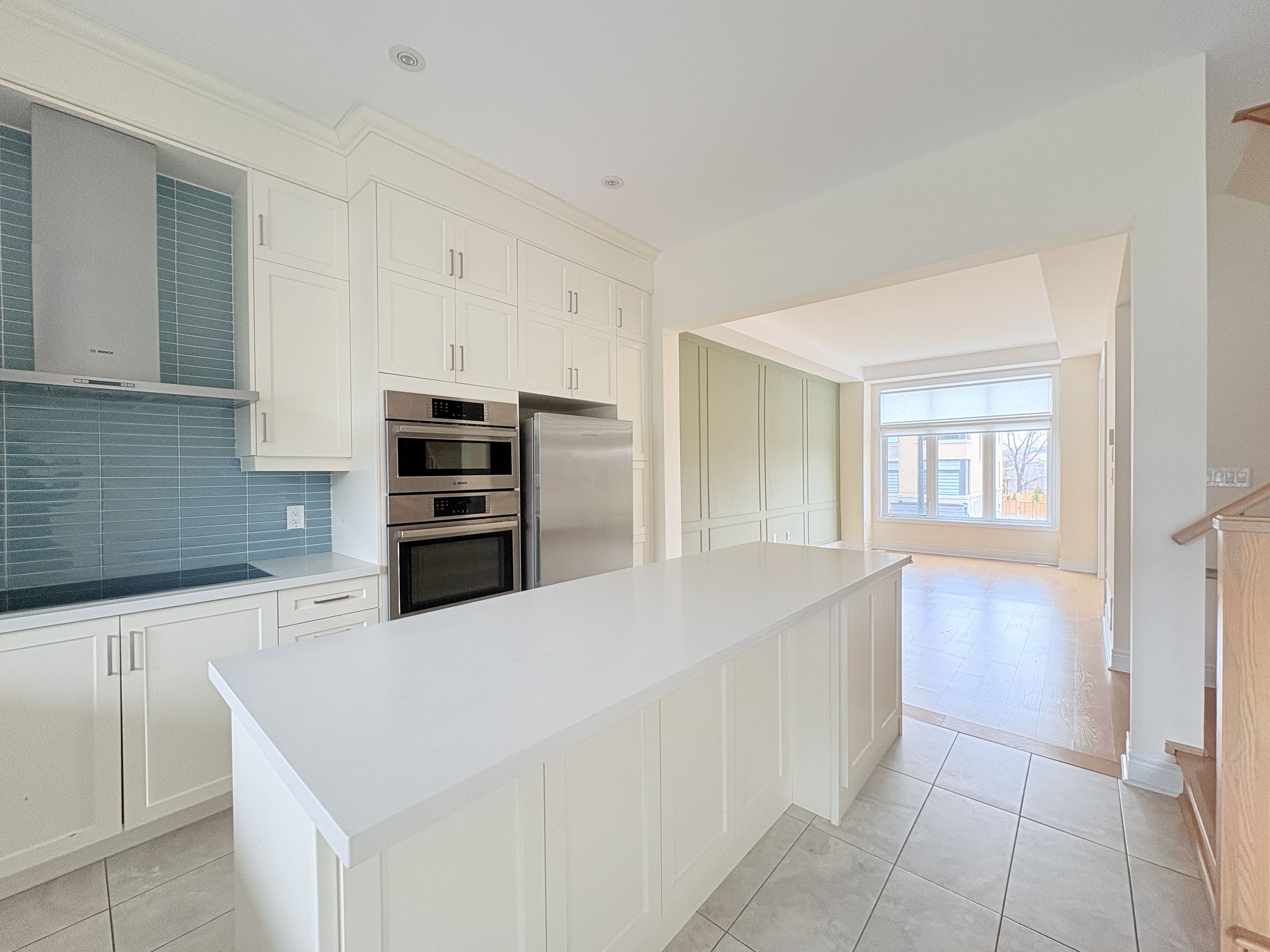 Luxury t. H , spacious&bright, 10' ceilings on main, 9' on ground&upper. Spacious&open concept main floor. Modern kitchen w top of the line appliances, 2 car garage&big terrace from kit. Private balcony in master bedrm. Extremely convenient location walking distance to grocery stores, shopping malls, go train station, hwy7 /407/400, subway station. Tenant pay utilities.