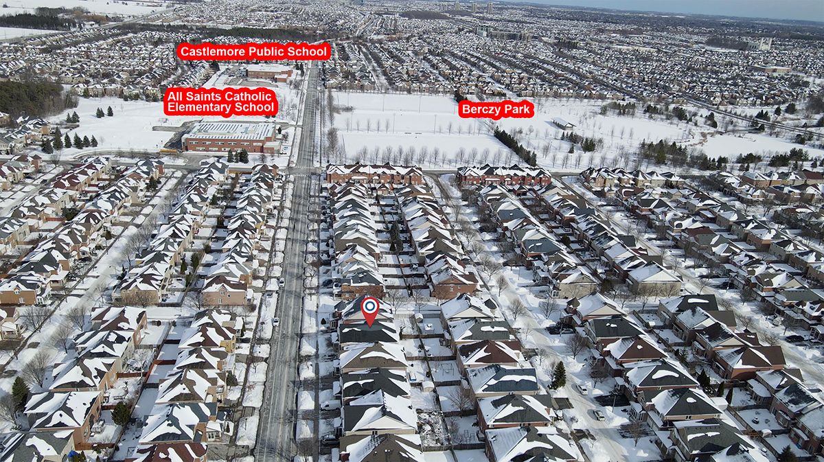 Fully renovated double car garage detached house in the heart of berczy village. 9 ft ceiling on first floor. Soaring cathedral ceilings - front entry & dining room. Open concept newly renovated kitchen with central island (2026). Breakfast area w/o to concrete patio. South-facing spacious family room with fireplace and display cabinet. Circular staircase. Main floor sunken laundry w/sink and door to garage. Bright south-facing primary room has walk-in closet & huge ensuite w/double sink and glass door shower. Second floor has a sitting area that can be an office. Roof (2024). Top-rated schools area. Steps to castlemore public school and pierre elliott trudeau high school. Walk to parks, trails, and the angus glen community centre. Enjoy a round of golf at angus glen golf club.