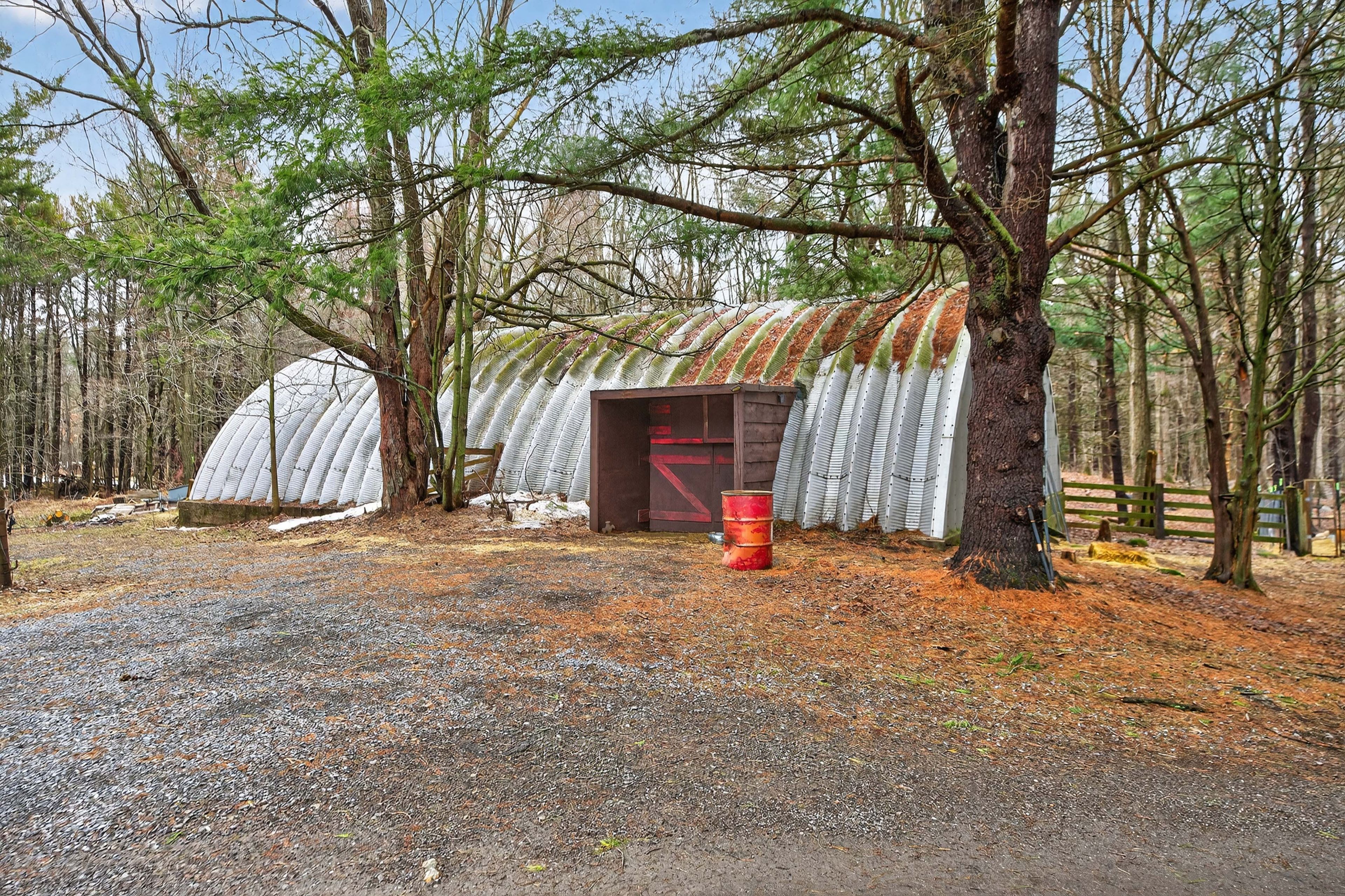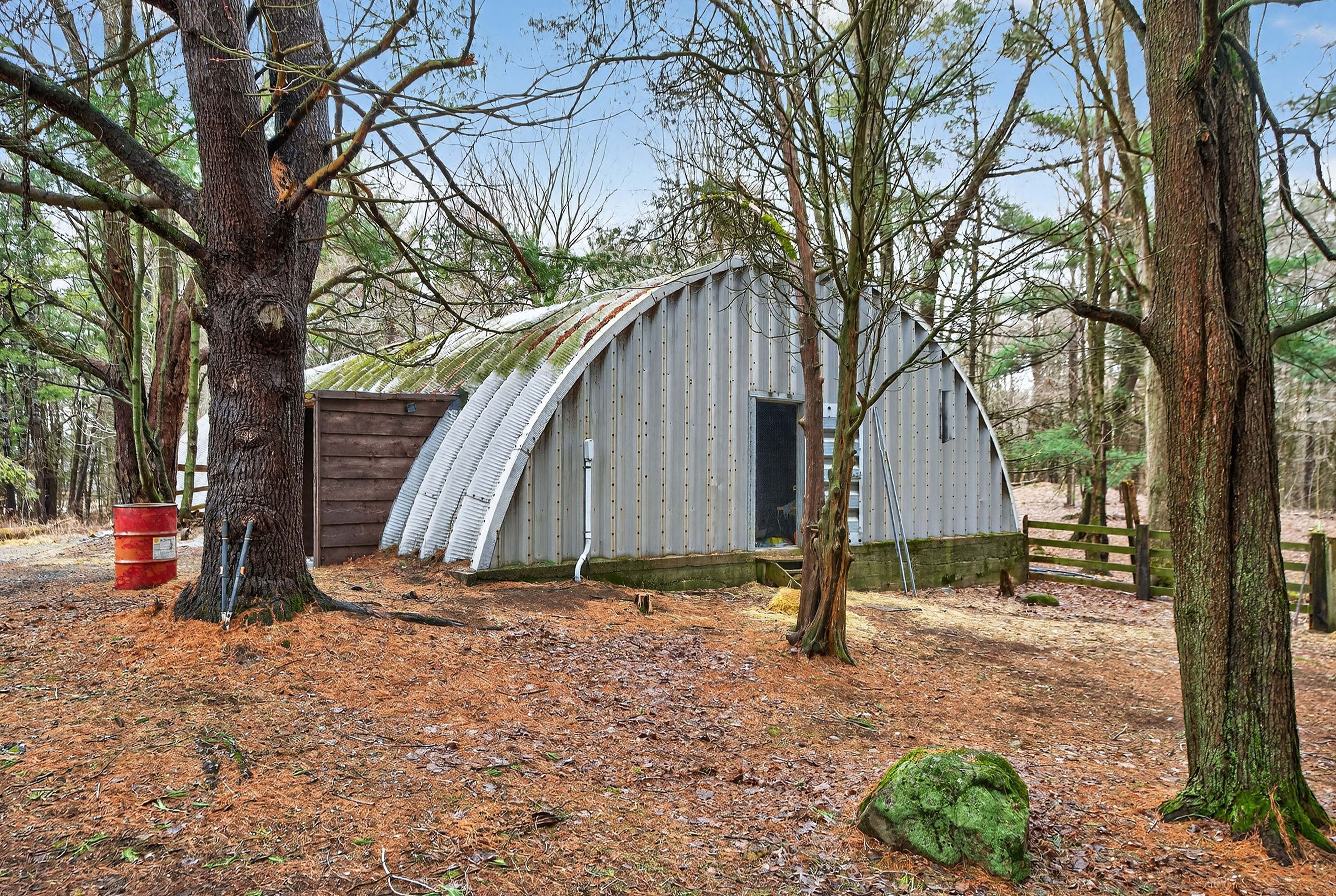 Nestled in the trees this 7-acre property has it all; conveniently located on a quiet road within walking distance to the 1000 island parkway waterfront trail, a marina, and a quick hop onto the 401 or to the bridge to the us. You have it all on one level with 3 bathrooms, 2 bedrooms, plus an office and large dedicated laundry room. An open concept kitchen, dining and living area takes advantage of the views and streams with sunlight. Vaulted ceilings make the space bright and airy a skylight adds even more light in the dining area. Lovely wood cabinetry in the kitchen with lots of storage and a handy breakfast bar or additional workspace. The living room is large, and light filled and you'll love to cozy up by the stove on those chilly nights. There is also a door for access to the wrap around deck. Outside there is plenty of room for all your hobbies to include a large shed with attached kennel or use as a chicken coop, a fenced area currently housed by chickens and a goat and to top it off a large steel quonset hut that provides endless options. Maybe boat storage or it once was used for horses or a fabulous workshop equipped with power. To add to this paradise, you have a lovely in ground pool surrounded by decking that can handle all your entertaining or relaxing dreams. The pool and deck area are at the rear and offer complete privacy surrounded by your own woods. If you are a nature lover wildlife abounds at this gorgeous location. Nicely set back from the road and featuring a circular driveway. Do not miss out on this!
