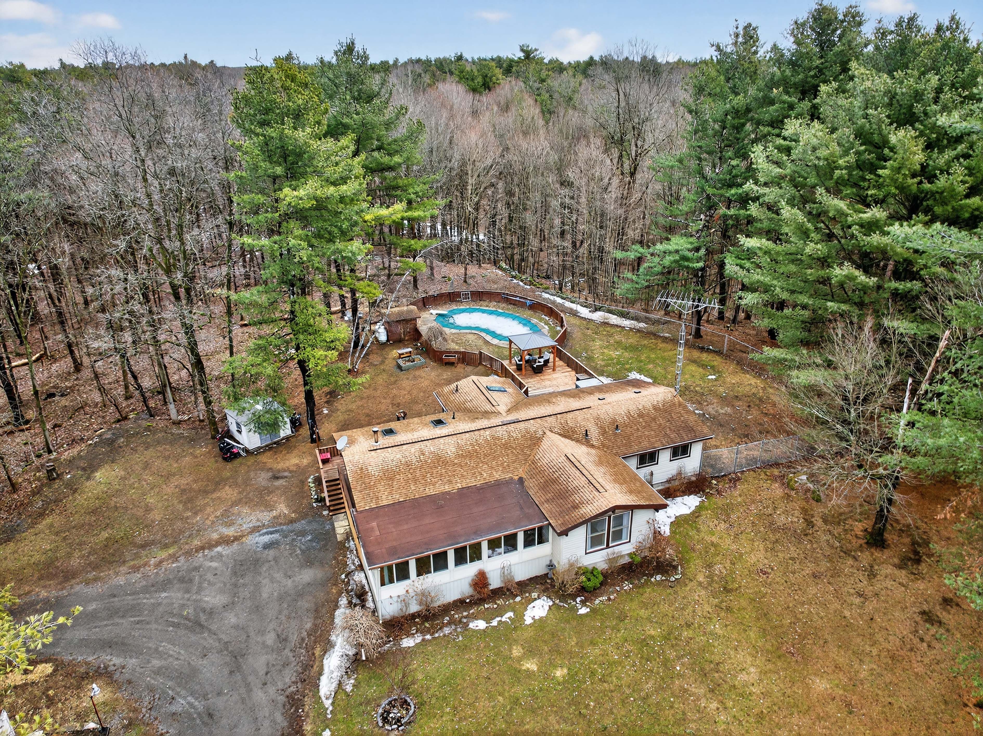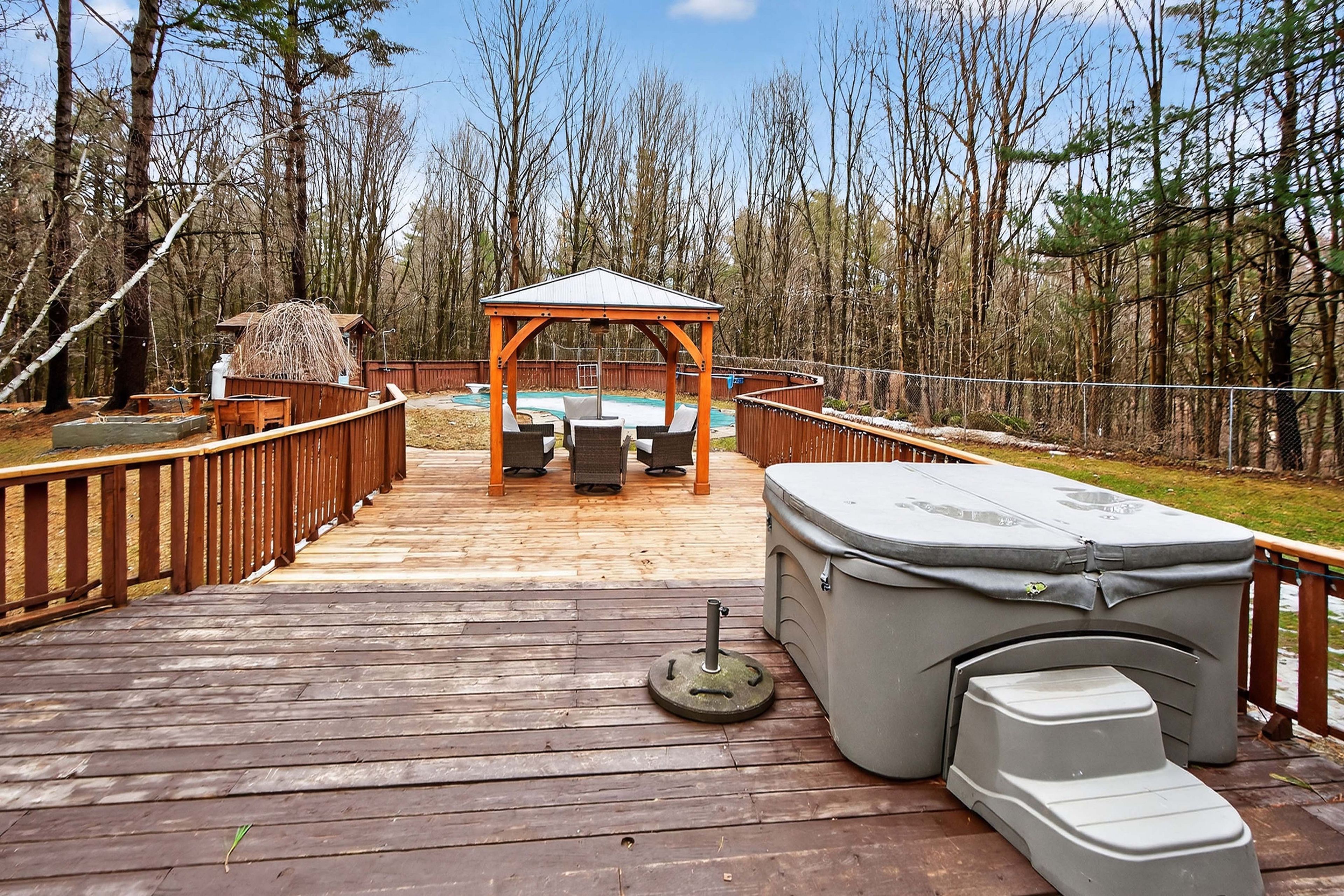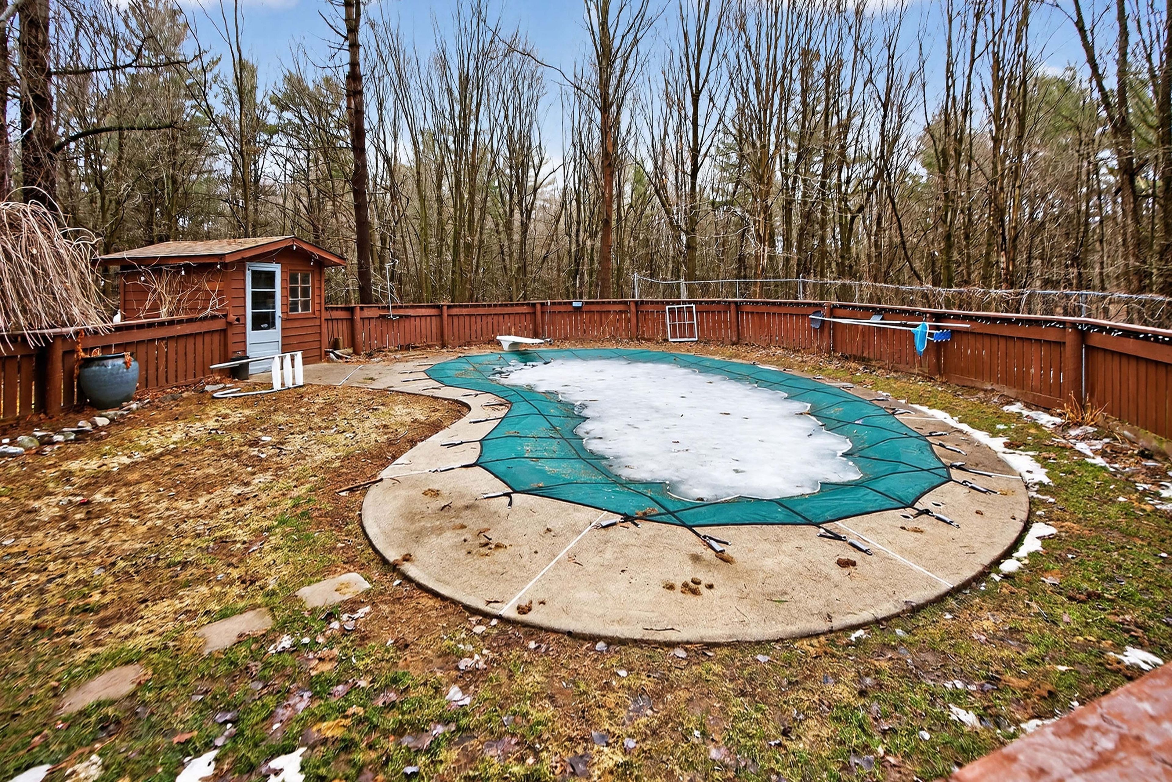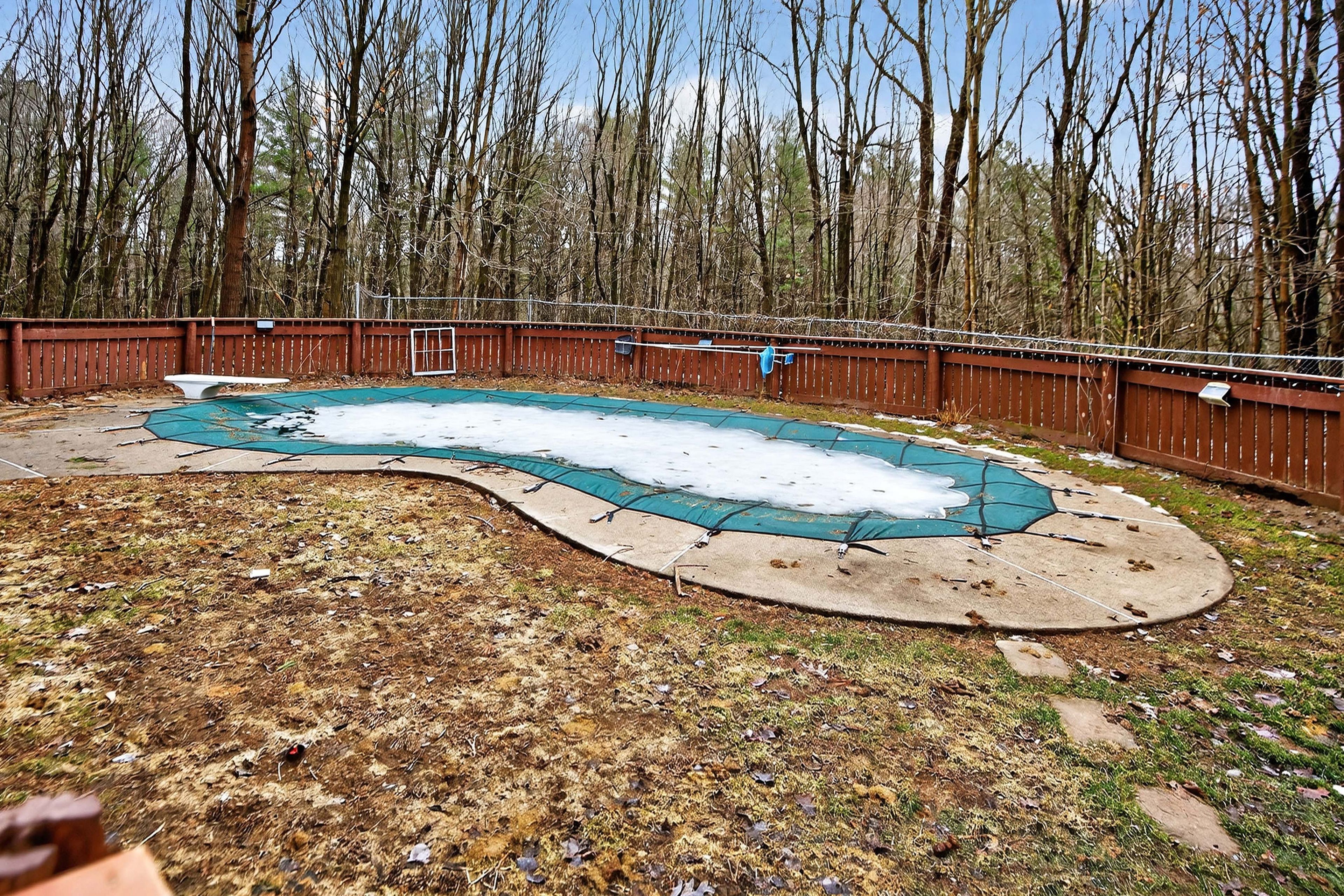 • In-ground pool surrounded by woods for privacy and relaxation.