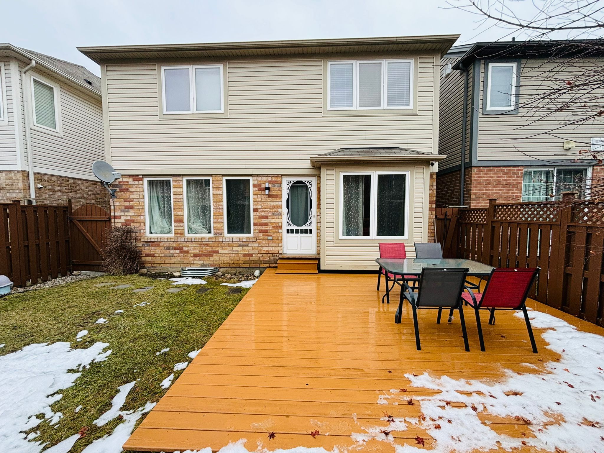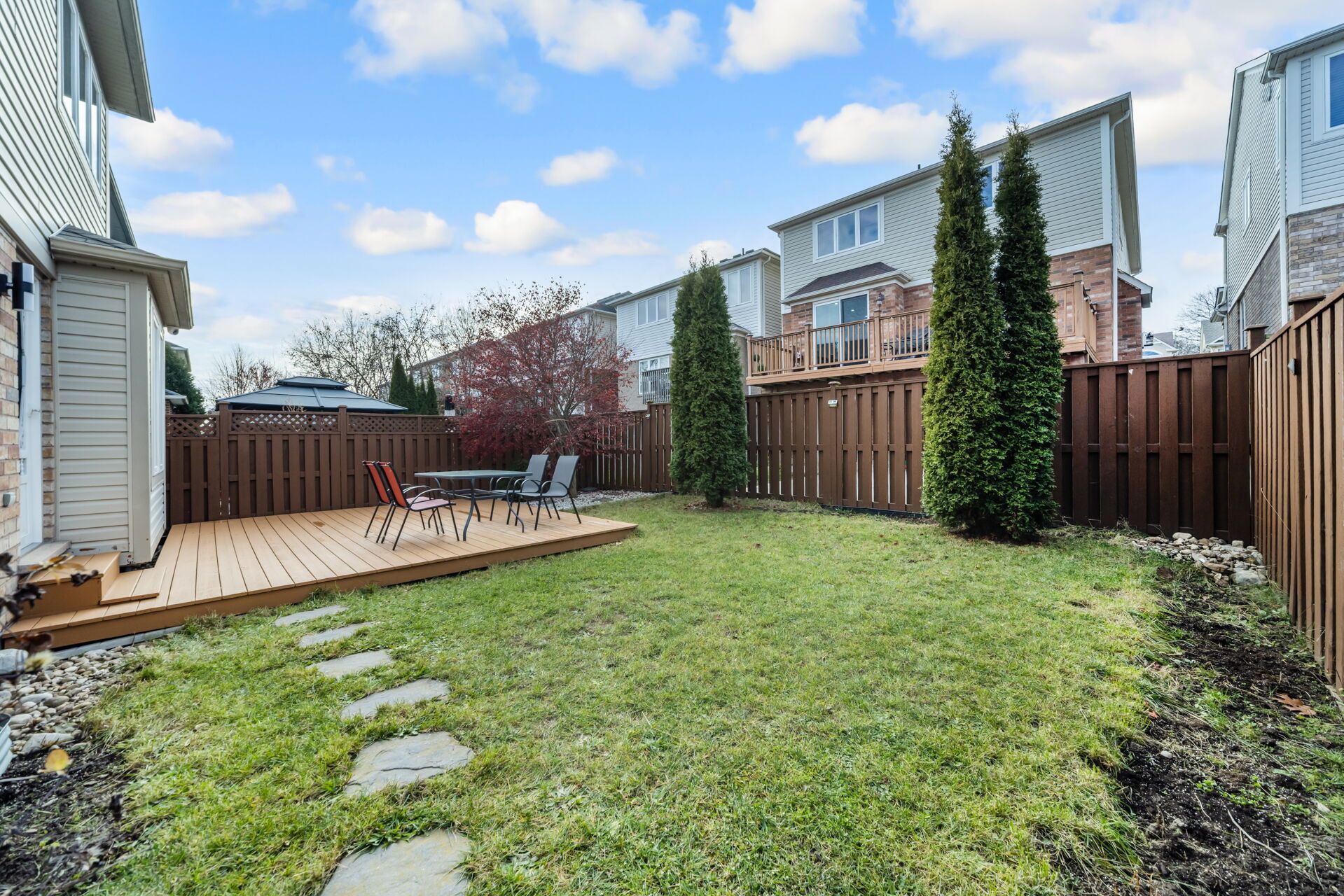 • Backyard features a fresh deck, fence, and a beautiful Japanese maple tree.