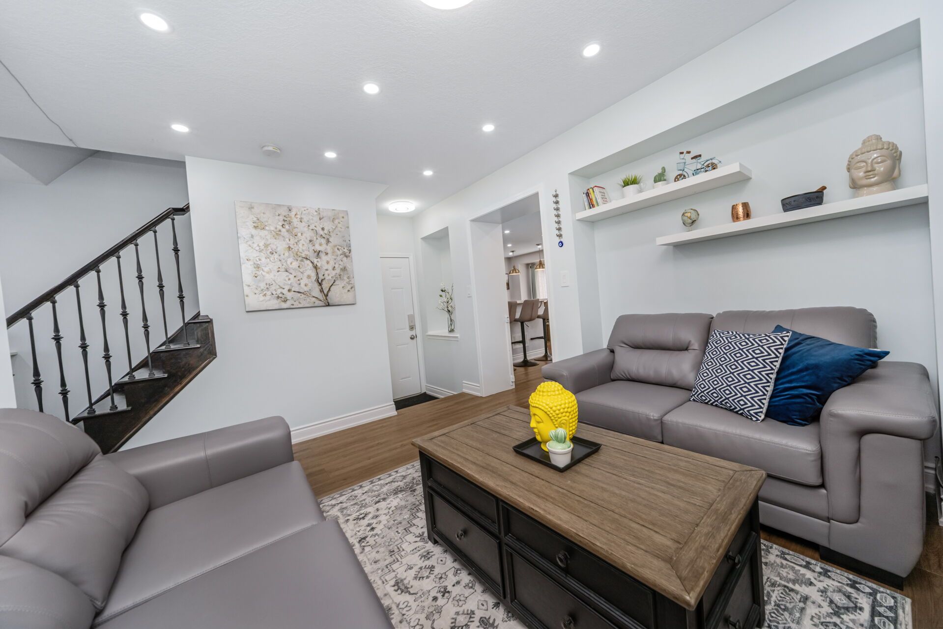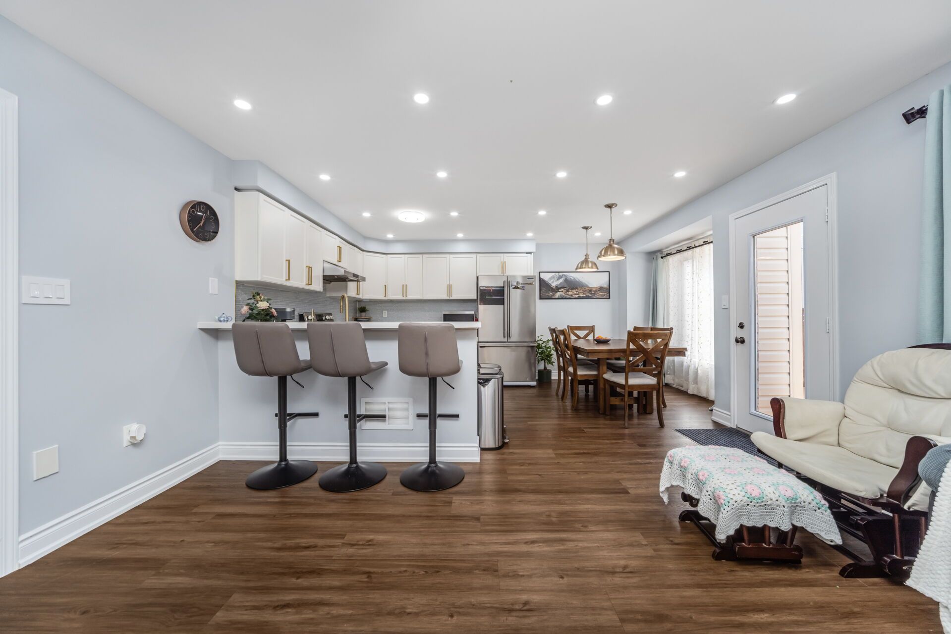 "exceptionally well maintained and custom upgraded house with a taste of luxury. Renovations of over $100k gave a complete make over for the entire home including 14 new premium appliances. Situated on a family friendly quiet circle in sought after hespeler area. Minutes away from 401 and steps away from green trails, schools and parks. Upper level boasts a large master bedroom with vast walk-in closet and a fully remodeled ensuite with heated floor. Two more spacious bedrooms with attached washroom and a laundry room on the same floor for your comfort. Main floor has a separate living room and a big family room with fully upgraded kitchen and a dining area. Basement is finished with a full washroom and a large entertainment area with lot of storage room. Big driveway with no side walk can accommodate 3 additional cars/suvs. A vibrant and peaceful backyard has freshly stained deck and fence featuring a stunning japanese maple tree. Perfect for families seeking comfort, style, and convenience. Just move in and call it a home. Refer feature sheet for the list of upgrades."
