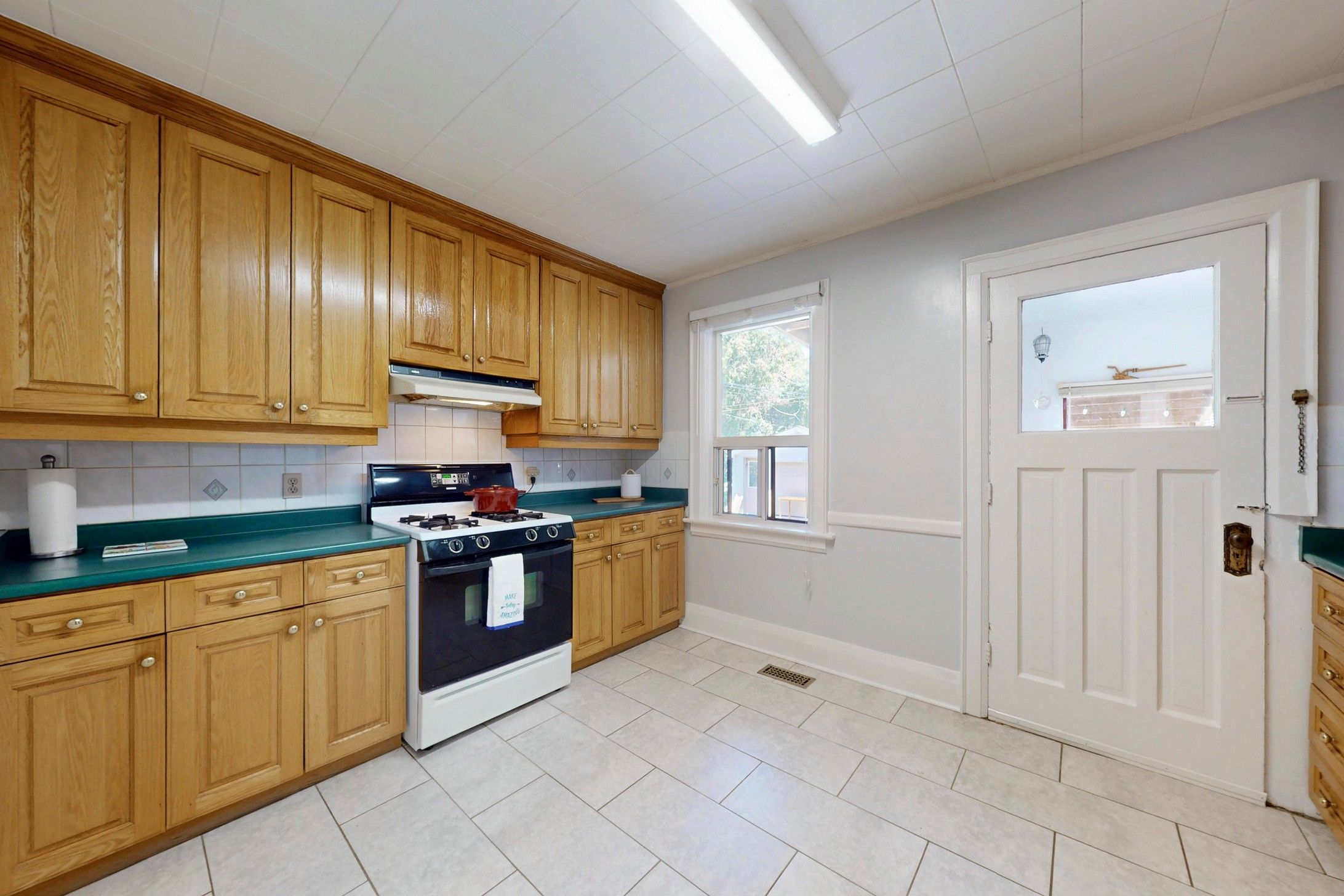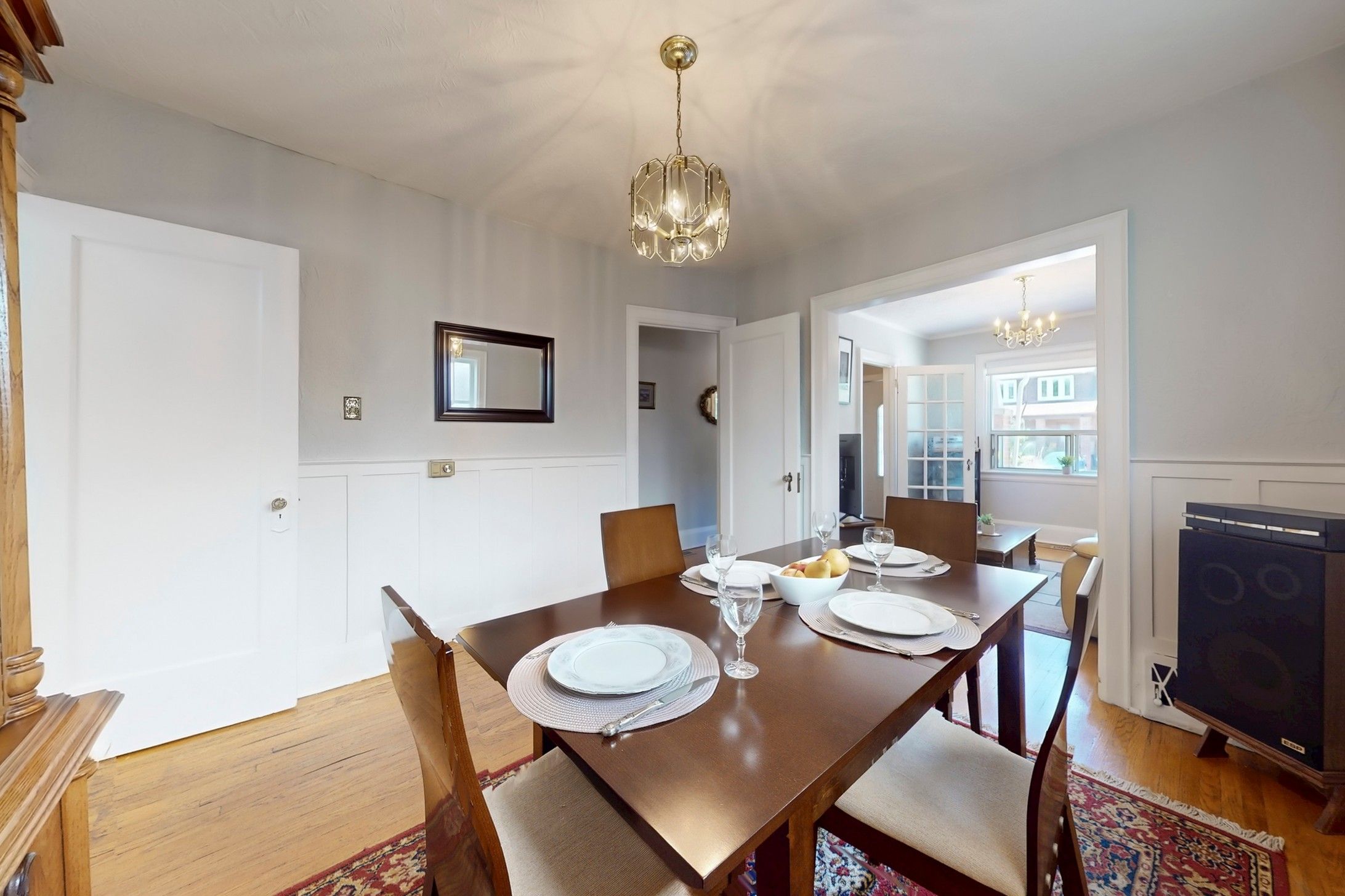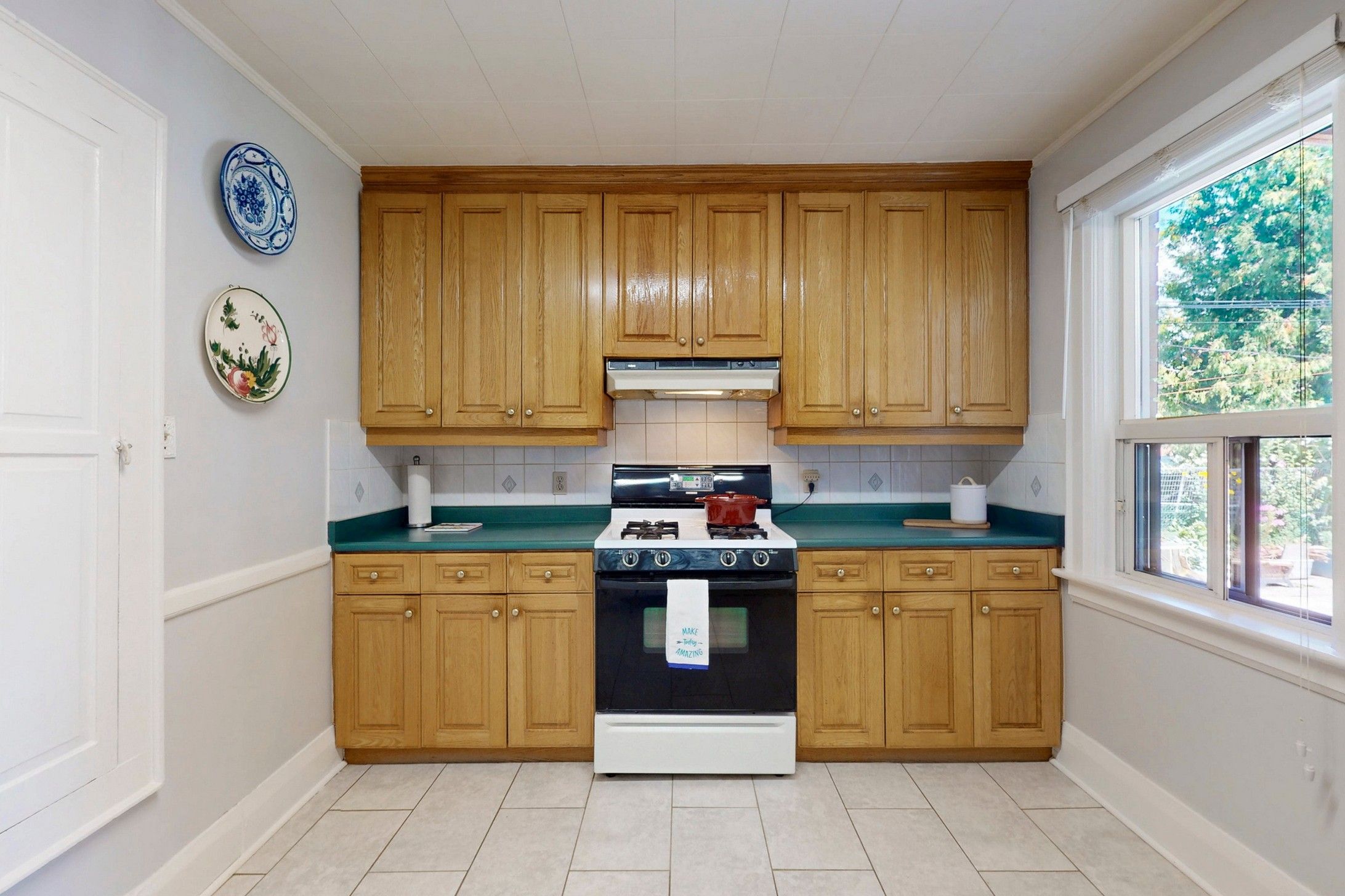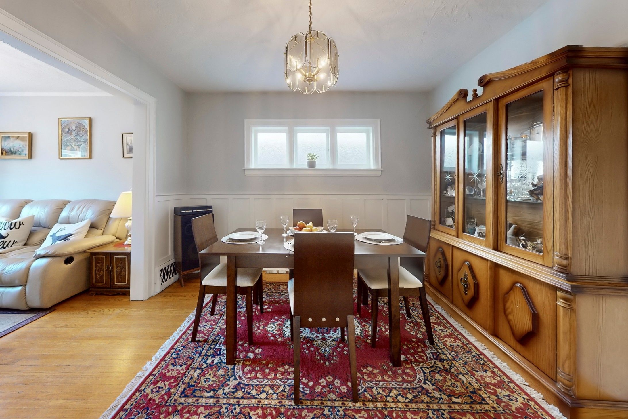 • Bright living room leads to a formal dining room and eat-in kitchen.
