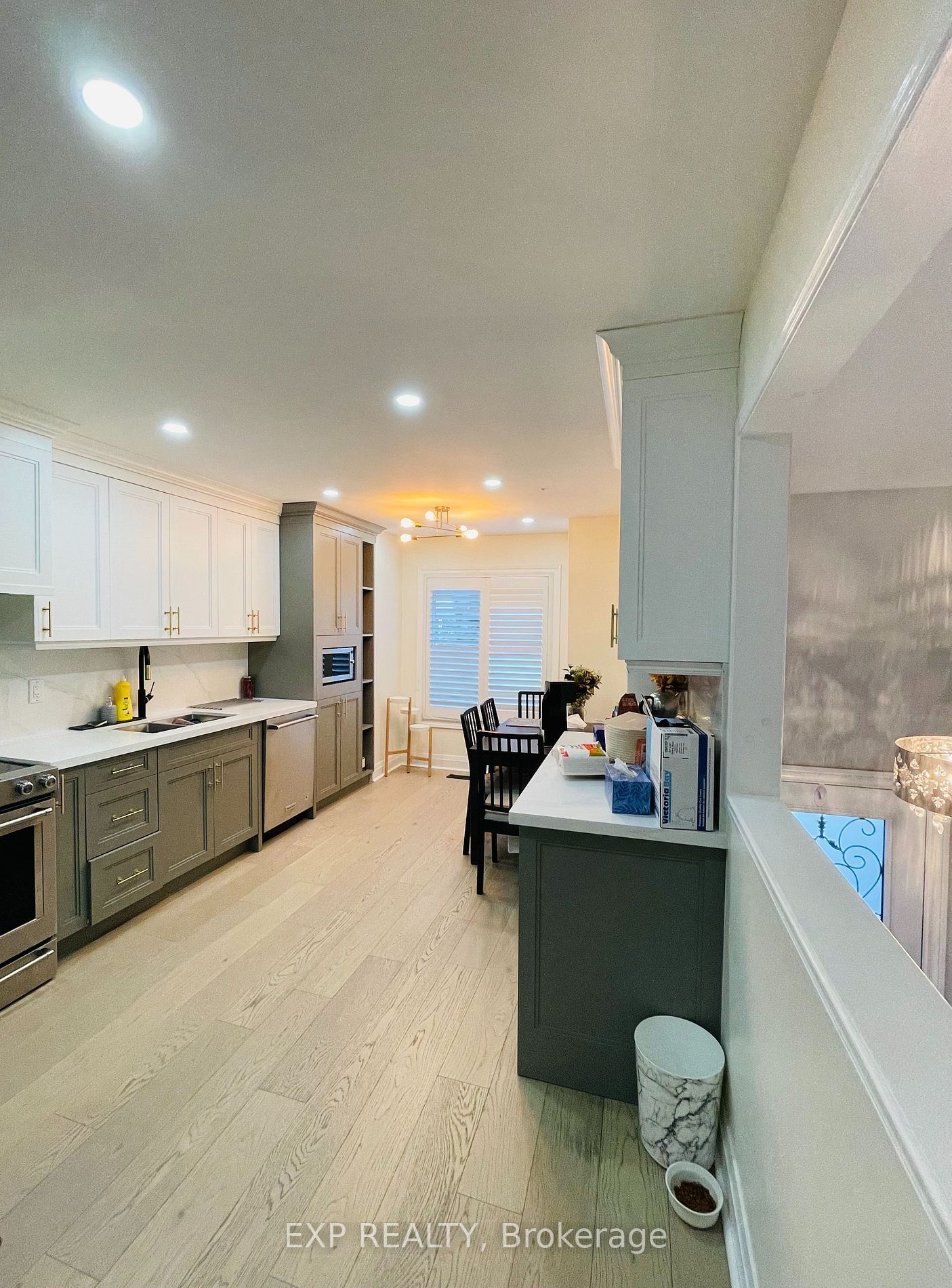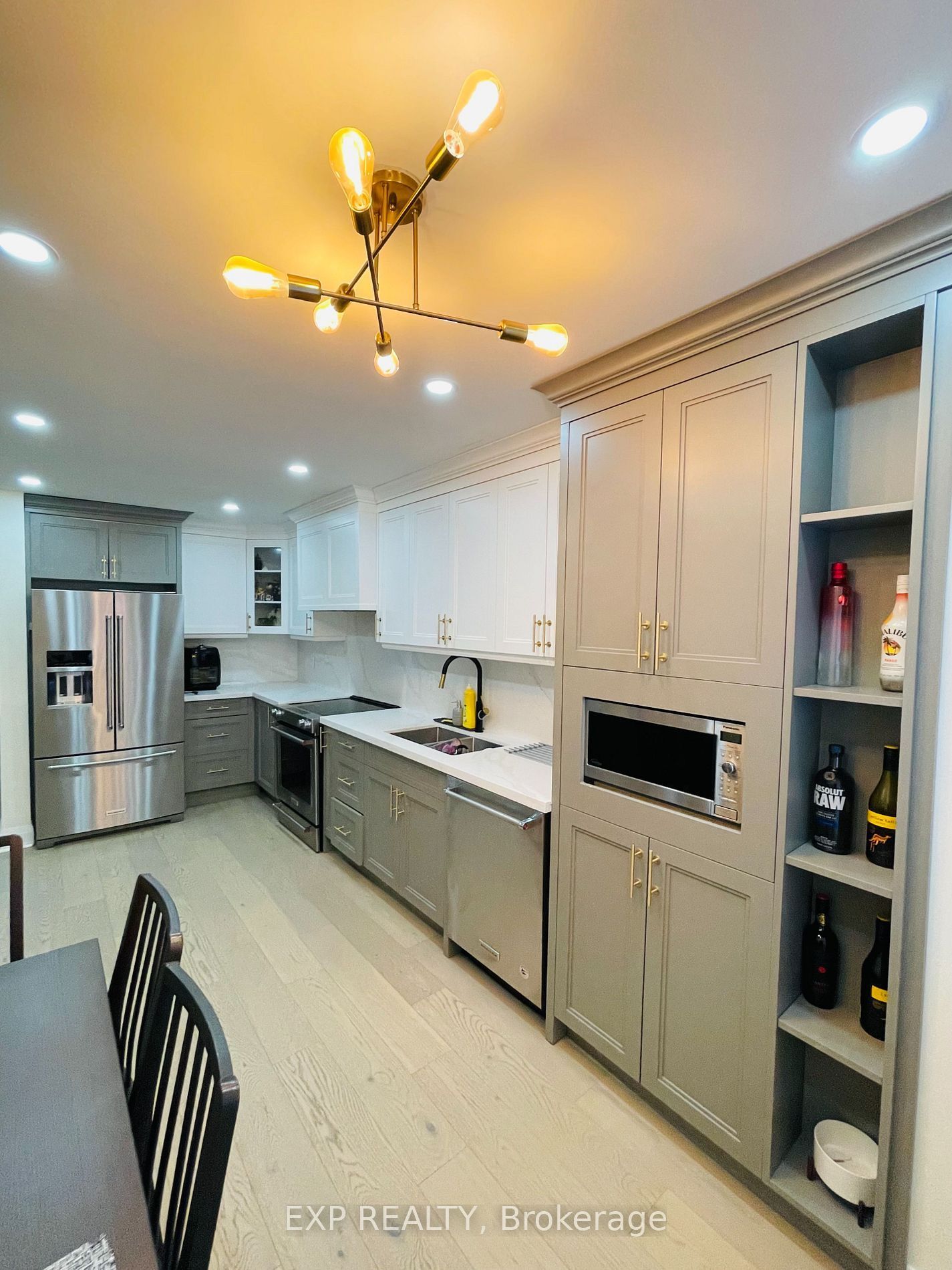 • Renovated kitchen features quartz countertops and stainless steel appliances.