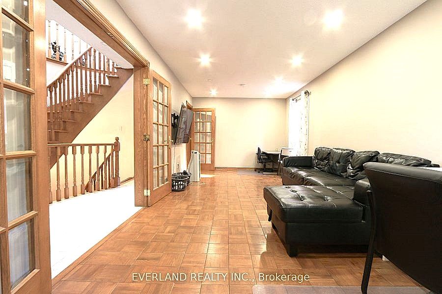 Welcome to 87 kyla cres. This beautiful 4+1bedroom home is situated steps to stunning parks, trails, schools , the sprawling, functional space hosts tons of upgrades and features including brand new garage door, 3 solid 2" oak french doors, 3/4" oak floors, extended kitchen wall w/pass through to family room, quartz kitchen counters, updated ceramic backsplash, large skylight over upgraded spiral oak staircase, 2 gas fireplaces, a solid luxurious oak wet bar in the basement, jacuzzi and heat lamps in primary ensuite, 4 bathrooms, enlarged aluminum windows in basement, interlocking driveway, 8 parking spaces, front yard & walkway/big shed with electricity, and so many more thoughtful upgrades.