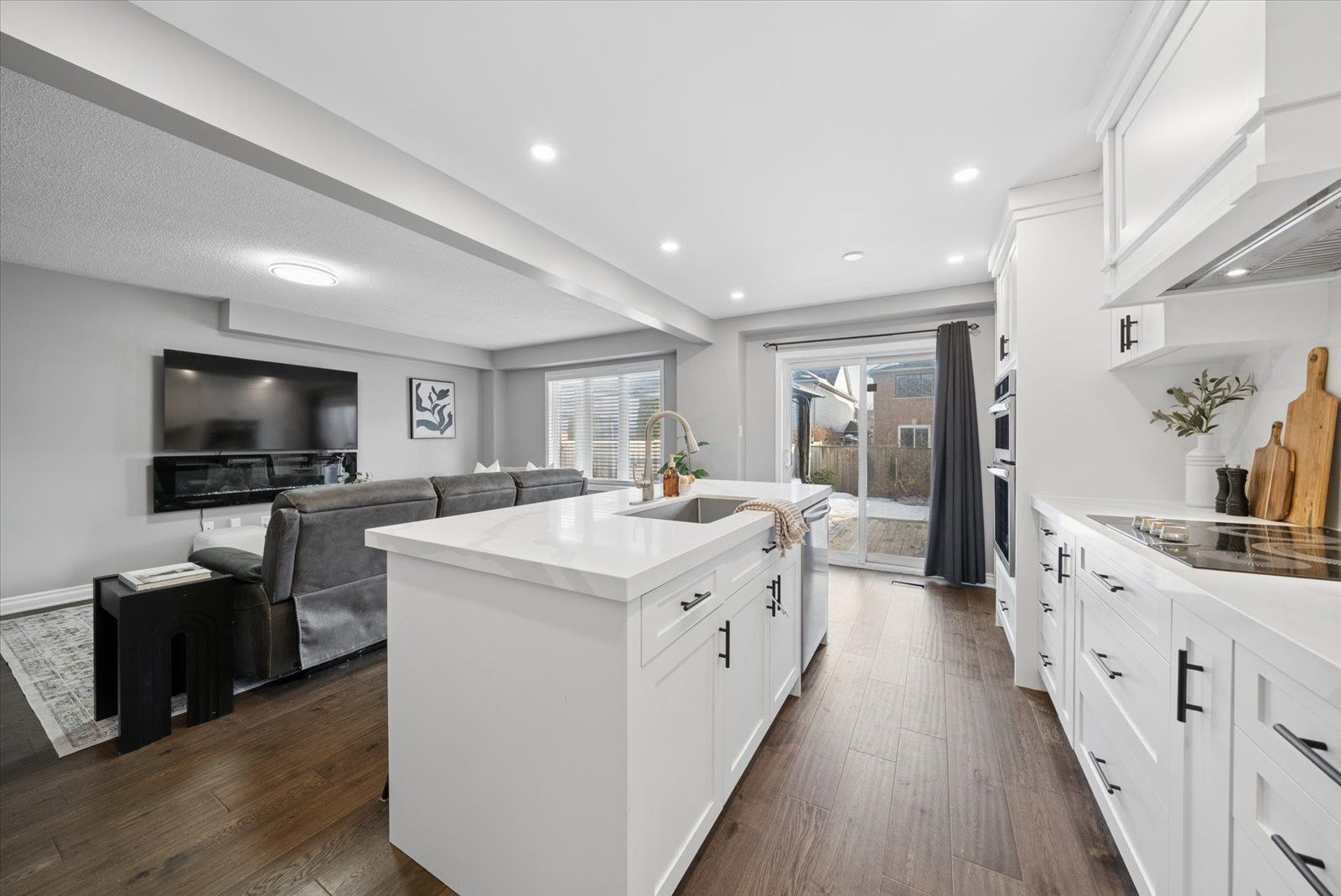 Welcome to 87 madden place in bowmanville! This beautifully updated 3-bedroom, 4-bathroom detached home blends modern design, stylish finishes, and total comfort - all in one of bowmanville's most sought-after neighbourhoods! Step inside and fall in love with the bright, open-concept main floor, where 5-inch hardwood floors and pot lights bring warmth and energy to every corner. The heart of the home is the custom, fully remodelled kitchen - complete with quartz countertops, stainless steel appliances including a cooktop and built-in oven, and sleek cabinetry that makes both cooking and entertaining an absolute joy. Upstairs, you'll find three generous bedrooms with engineered wood veneer flooring and two full bathrooms, including a private primary ensuite - your own relaxing retreat at the end of the day. Every detail has been thoughtfully refreshed, from modern lighting and hardware to new railings and spindles, all designed to give this home a clean, contemporary feel. The finished basement is ready for fun, complete with a spacious rec and games room plus a full bathroom - perfect for movie nights, play dates, or hosting overnight guests. Convenient powder room on main level and interior garage access (heater in the garage for hobbyist). Outside, enjoy great curb appeal with fresh landscaping and paving, a repaved driveway, and a charming brick front exterior. The newer backyard deck is ready for summer barbecues or quiet evenings under the stars, all paired with a convenient 1. 5-car garage. And the peace of mind? It's all here - with a new furnace (2024), owned hot water tank, and upgraded 200 amp electrical panel already in place. This home truly combines style, comfort, and value, giving you a move-in-ready space where every box is checked.