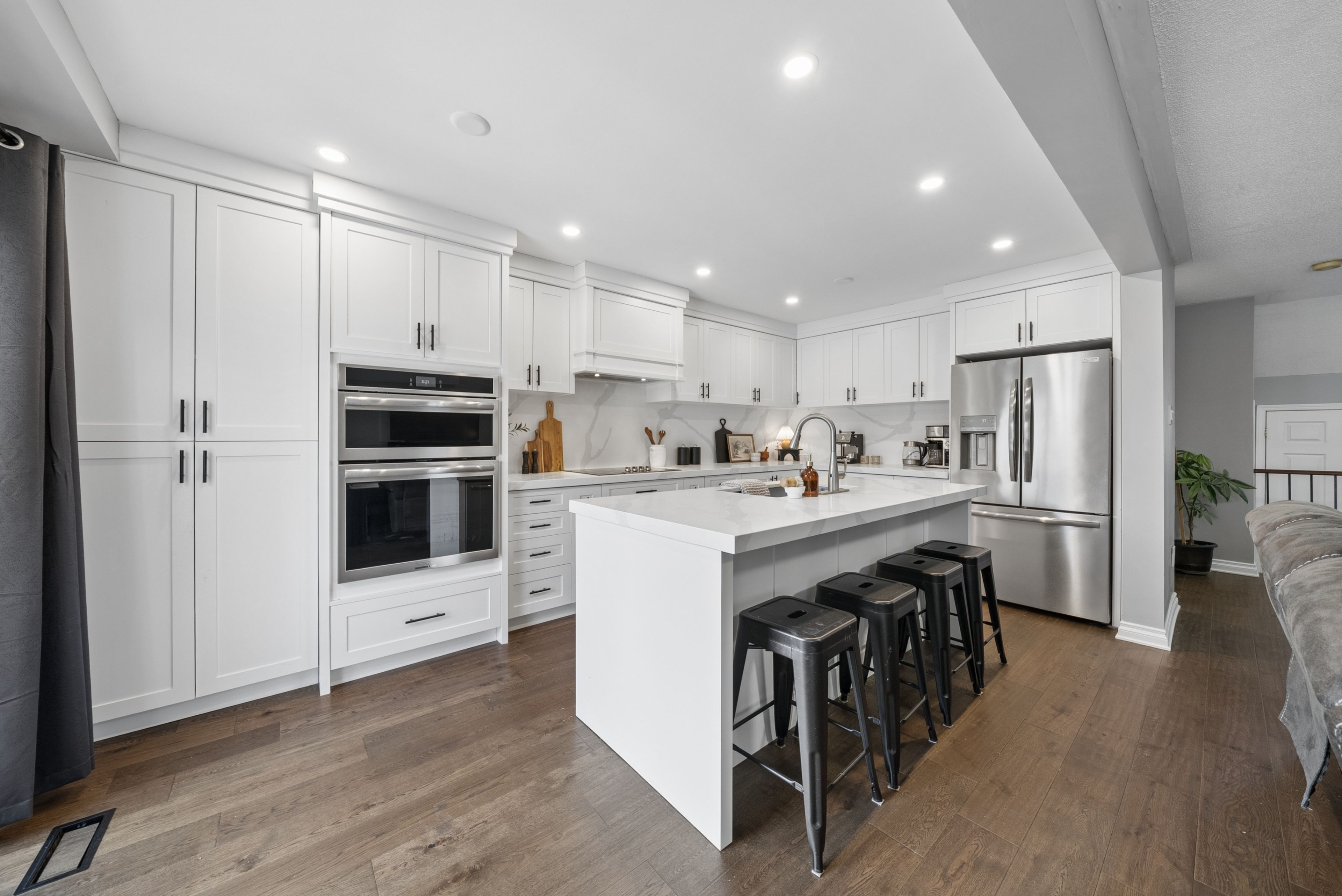 With over $150,000 in high-end upgrades, 87 madden place in bowmanville is a showstopper that perfectly combines modern design, luxury finishes, and total move-in comfort in one of bowmanville's most sought-after neighbourhoods. Step inside to find a bright, open-concept main floor where five-inch hardwood floors and recessed pot lighting create warmth and flow throughout the space. The custom, fully remodeled kitchen is a true centerpiece, featuring quartz countertops, stainless steel appliances including a cooktop and built-in oven, and sleek cabinetry designed for both everyday living and effortless entertaining. Upstairs, three spacious bedrooms offer engineered wood veneer flooring and two full bathrooms, including a private primary ensuite that provides the perfect place to unwind. Every detail has been thoughtfully refreshed, from modern lighting and updated hardware to new railings and spindles, creating a fresh, contemporary atmosphere throughout. The finished basement extends your living space with a generous recreation and games room plus a full bathroom, ideal for family time, guests, or a home gym setup. Enjoy added conveniences like a main-level powder room, interior garage access with a heater for hobby enthusiasts, fresh landscaping, a repaved driveway, and a charming brick exterior that enhances curb appeal. Step out back to a newer deck that's perfect for summer barbecues or relaxing evenings under the stars. With a new furnace installed in 2024, an owned hot water tank, and an upgraded 200 amp electrical panel, this home delivers style, comfort, and peace of mind. 87 madden place is a true bowmanville gem that checks every box for those seeking a turnkey, beautifully upgraded home in a fantastic location.