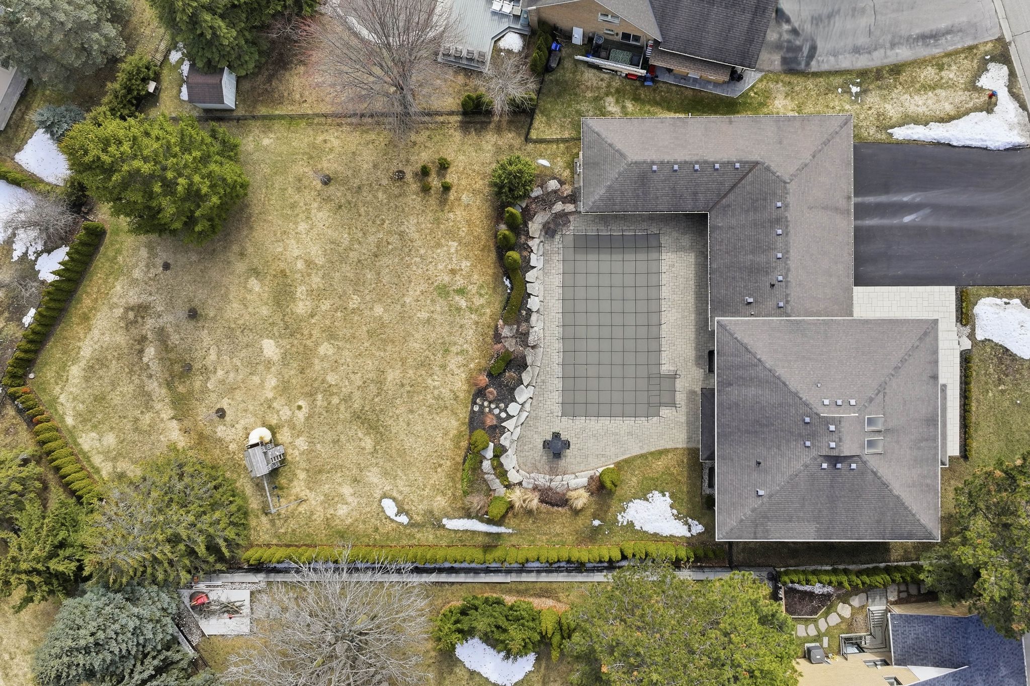 Set on a stunning estate lot in king city's prestigious heritage park, this impeccably maintained residence offers over 4,000 sq. Ft. Of refined living space. Significant renovations in 2016 and 2020 have brought unparalleled craftsmanship to the home, featuring engineered white oak floors, upgraded baseboards, and custom solid wood doors throughout. The main level is designed for both sophisticated entertaining and everyday function, boasting a chef's kitchen with custom nima cabinetry, caesarstone countertops, and a walk-in pantry. Sliding french doors seamlessly connect the principal spaces, including a spacious family room, a formal dining area, and a dedicated main-floor office complete with a bright bay window. For added convenience, a full laundry room provides direct access to the basement, backyard, mudroom and the three-car garage. The second level continues the white oak flooring across five generous bedrooms, providing exceptional flexibility for a growing family. The primary suite serves as a true sanctuary, highlighted by his-and-hers closets and a luxuriously renovated 6-piece ensuite completed in 2016. The home's versatility extends to the finished basement, which offers incredible potential for multi-generational living or guest accommodation, featuring an expansive recreation area, a gas fireplace, a full second kitchen, and a 3-piece bathroom. Outdoors, the property transforms into a private resort-style oasis. A heated saltwater inground pool is surrounded by professional landscaping, interlock stonework, and lush green space perfect for relaxation. Completing this rare offering is a three-car garage with a unique attached bonus room, providing the perfect footprint for a home gym, workshop, or pool house. This home perfectly blends thoughtful design and family-focused functionality in one of king city's most established and sought-after settings.