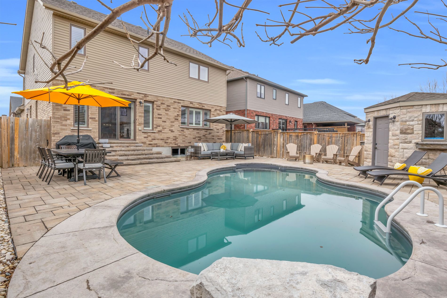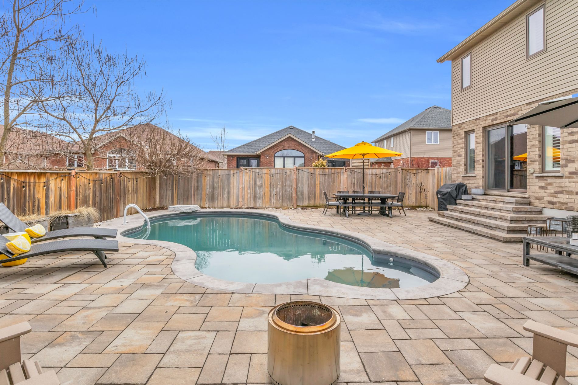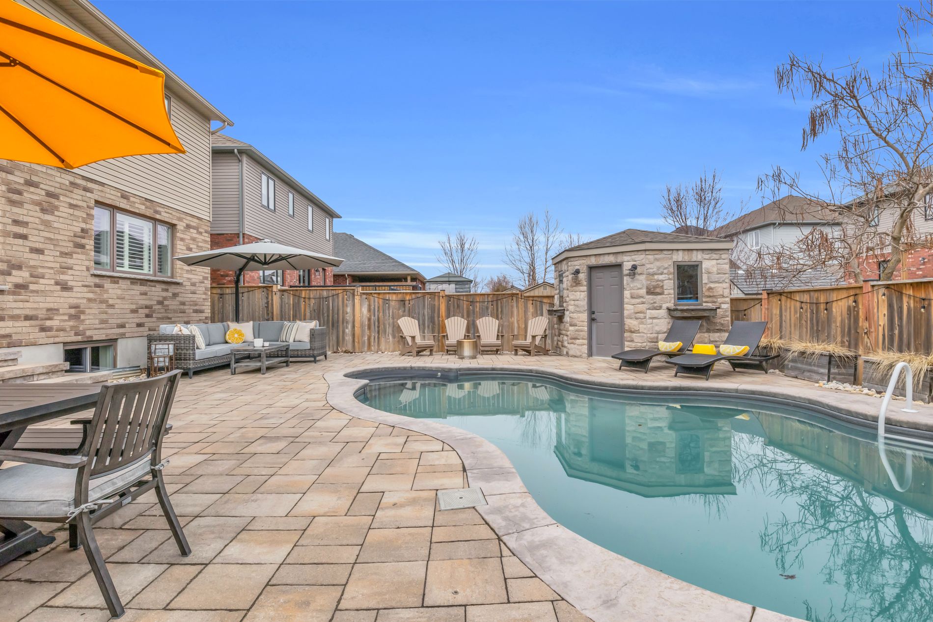 Tucked into one of elora's most desirable south end neighbourhoods, just steps from the trail and minutes from the charm of downtown. Welcome to 87 mcgowan street, built in 2014 by award-winning wright haven homes, this impressive 4-bedroom, 4-bathroom home offers over 3000 sq ft of finished living space. With its prime location and exceptional features, this property is sure to capture your attention. The spacious eat-in kitchen is designed for both everyday living and entertaining, featuring stainless steel appliances, a large island, and upgraded cabinetry, all seamlessly open to the family room. The living room showcases a cozy gas fireplace, custom built-in cabinetry, and oversized windows overlooking the private, resort-style backyard with a saltwater pool. Professionally landscaped, the backyard includes a stone patio, elegant poolside coping, and a versatile shed with a stone exterior that houses pool equipment, a change area, and even a fridge, perfect for summer entertaining. The main floor is completed by a powder room, a large mudroom with laundry, and stunning backyard views throughout. Upstairs, the primary suite offers a true retreat with a walk-through closet leading to a bright ensuite featuring a soaker tub and separate shower. Three additional generously sized bedrooms, a 3-piece bathroom, and a bonus tv/lounge area complete the second level. Recent updates include a new pool heater (2 years old), new hardwood flooring in the main floor living room, and a fully finished basement (2025) with a new bathroom. The home is also equipped with all new california shutters throughout. Don't miss out on the opportunity to make this house your home. With its modern design, upgraded features, and family-friendly layout 87 mcgowan street is the perfect place to create lasting memories. Schedule your private showing today!
