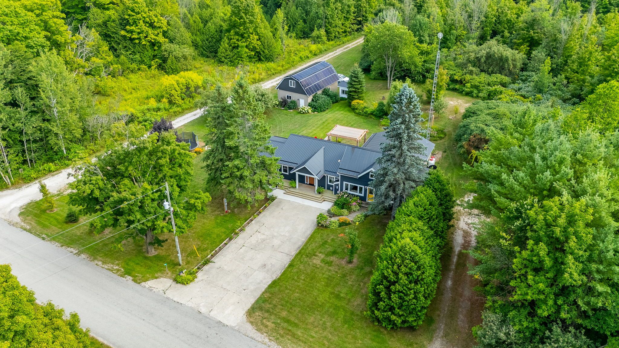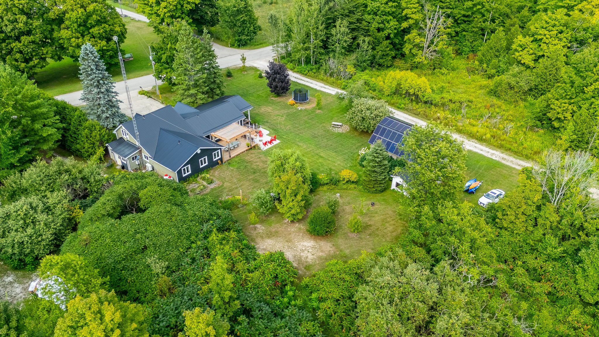 Where modern luxury meets timeless country charm. Set on 95. 85 acres of pristine land, this completely renovated and expanded century home offers the perfect blend of history, sophistication, and natural beauty. With 16. 5 workable acres and the balance in lush hardwood forest, the property provides endless opportunities whether for a hobby farm, family retreat, or forever home. The main residence was reimagined in 2020 with a substantial addition, making it feel nearly new while preserving its character. Inside, you'll find three spacious bedrooms and three elegant bathrooms, soaring ceilings, and sun-filled living spaces that overlook landscaped gardens and a flourishing orchard. A private in-home theatre creates the perfect setting for cozy nights in, while the wraparound deck invites you to enjoy quiet mornings with coffee or evening sunsets with family and friends. A self-contained one-bedroom, one-bathroom granny suite adds flexibility, offering a comfortable space for multi-generational living, extended guests, or income potential . Outdoor living is equally impressive. A timber-frame dining and bar area sets the stage for unforgettable gatherings, while the property itself offers space for hunting, wildlife watching, trails, and exploration. The long private driveway winds through the acreage, providing access to multiple entrances and extending all the way to the back of the property. Practicality meets innovation with features such as a detached 24x40 shop with loft, 16,000w solar panels for eco-friendly living, and smart-home technology including an ev hookup, tesla charger, automated blinds, smart lighting, and high-speed internet perfect for the tech-savvy buyer who refuses to compromise on modern conveniences. Generous parking, hobby farm potential, and unmatched privacy make this property a rare offering. 87 meadowland road isn't just a home its an experience, a retreat, and a way of life. Call your realtor today to schedule your private tour.