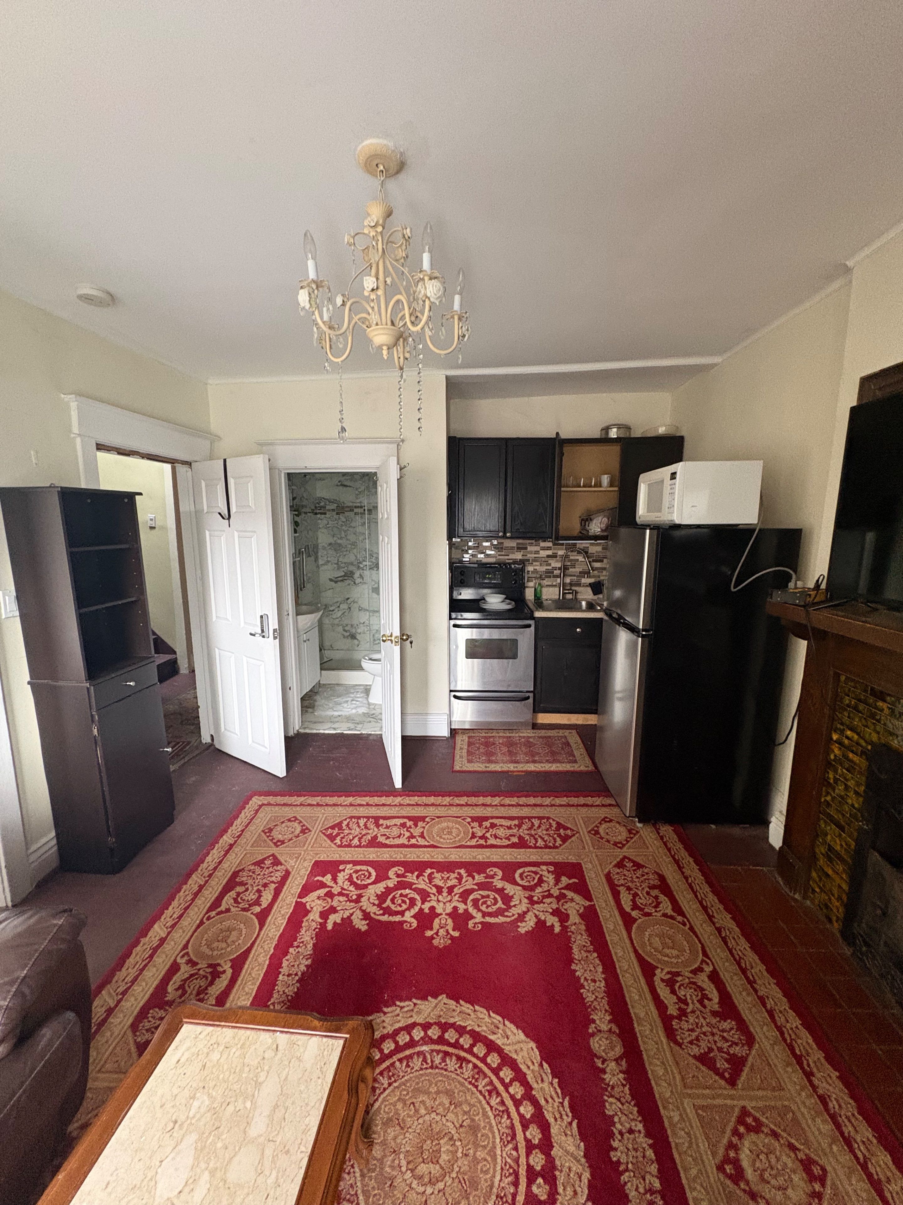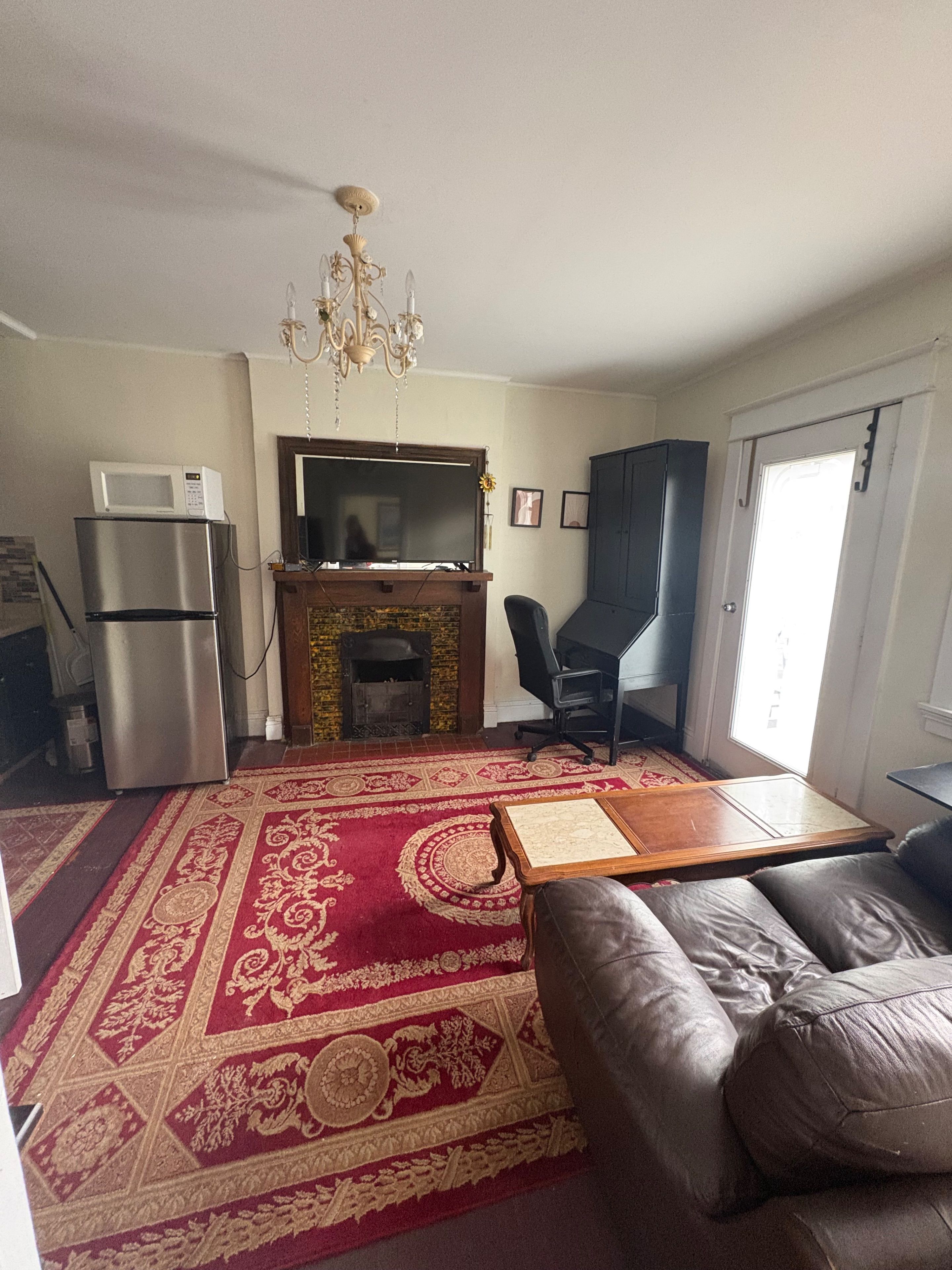 • Furnished one-bedroom apartment available now in a quiet side street location.