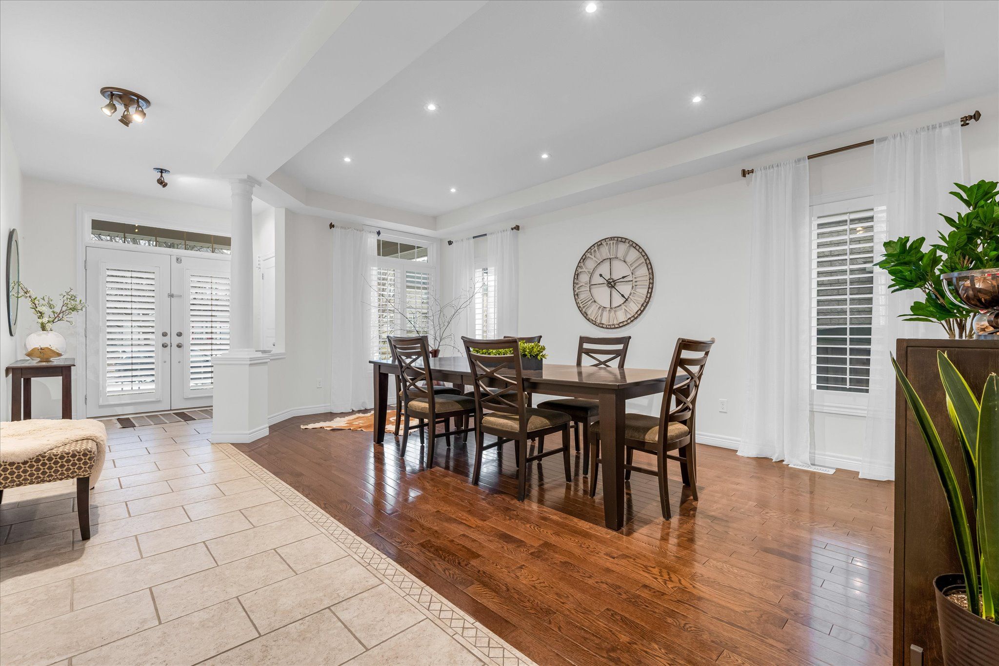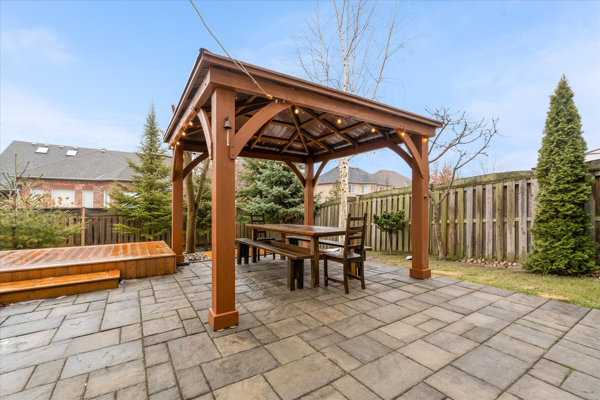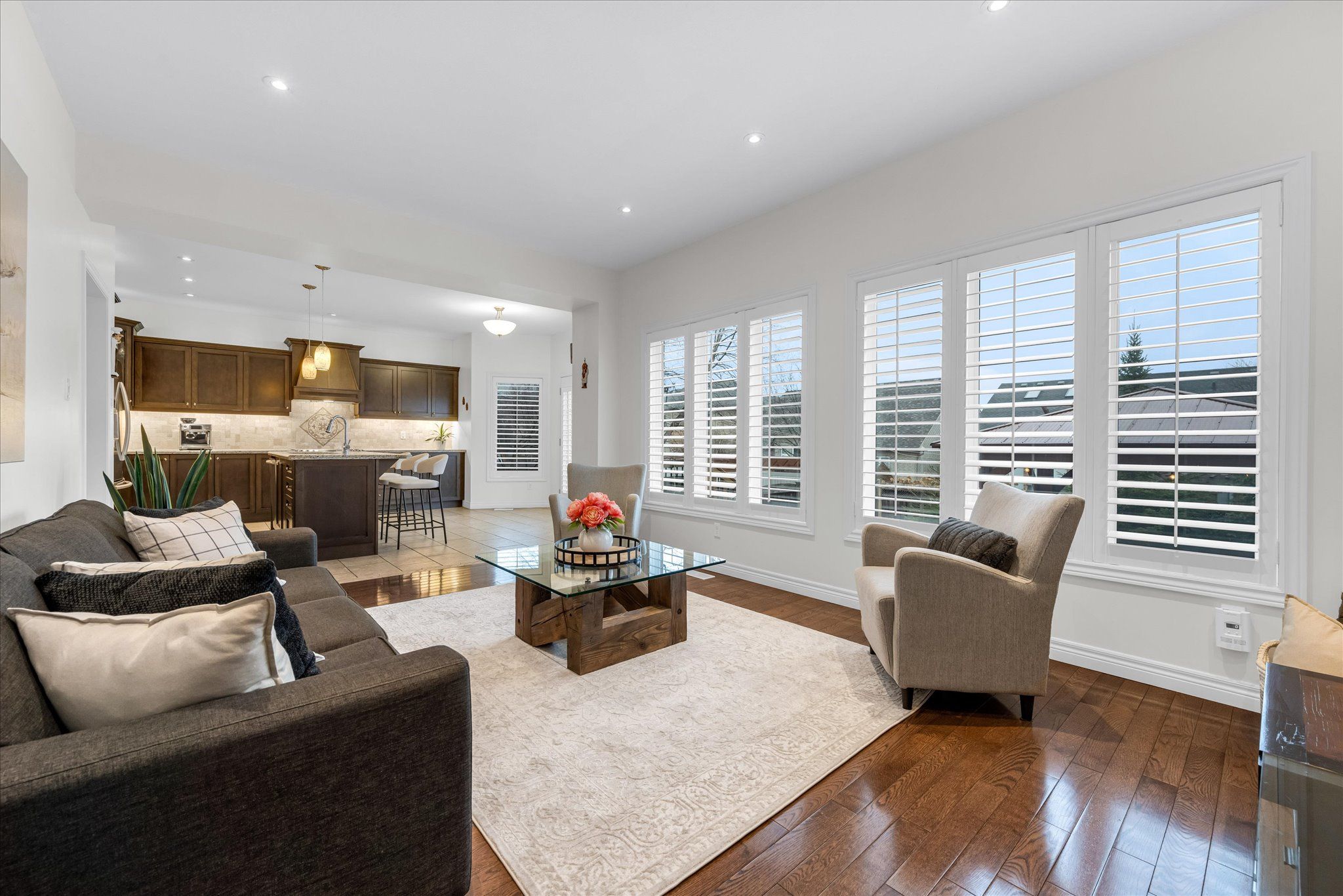 Located on a quiet street in a desirable dundas neighbourhood, this remarkably maintained home is just steps from conservation trails and close to dundas valley golf & curling club. The main floor features 9 ft ceilings, a spacious living room with a real stone feature wall, and large windows that fill the space with natural light. The bright and spacious dining area can comfortably host both small and large gatherings. The gourmet kitchen offers maple cabinetry, granite countertops, stainless steel appliances, and a large island with sink and seating - perfect for everyday living and entertaining. The main level also includes a powder room with a real stone feature wall, a laundry room, and inside entry to the double car garage. French doors lead to a generous deck featuring a hot tub covered by a pergola, along with a separate large stone patio with a gazebo - ideal for outdoor entertaining. The professionally landscaped front yard and pool-sized backyard include mature trees, a vegetable garden, and multiple seating areas. An enclosed side yard provides space for a future shed or additional equipment storage. The upper level offers four bedrooms and two full bathrooms, including a spacious primary bedroom with a 4-piece ensuite, soaker tub, and large glass shower. Enjoy being just steps from dundas valley conservation area and the bruce trail. Updates include: roof (2025), furnace (2026), washer & dryer (2025), garage door opener (2025), hot tub heater (2025). Nothing to do - just move in.