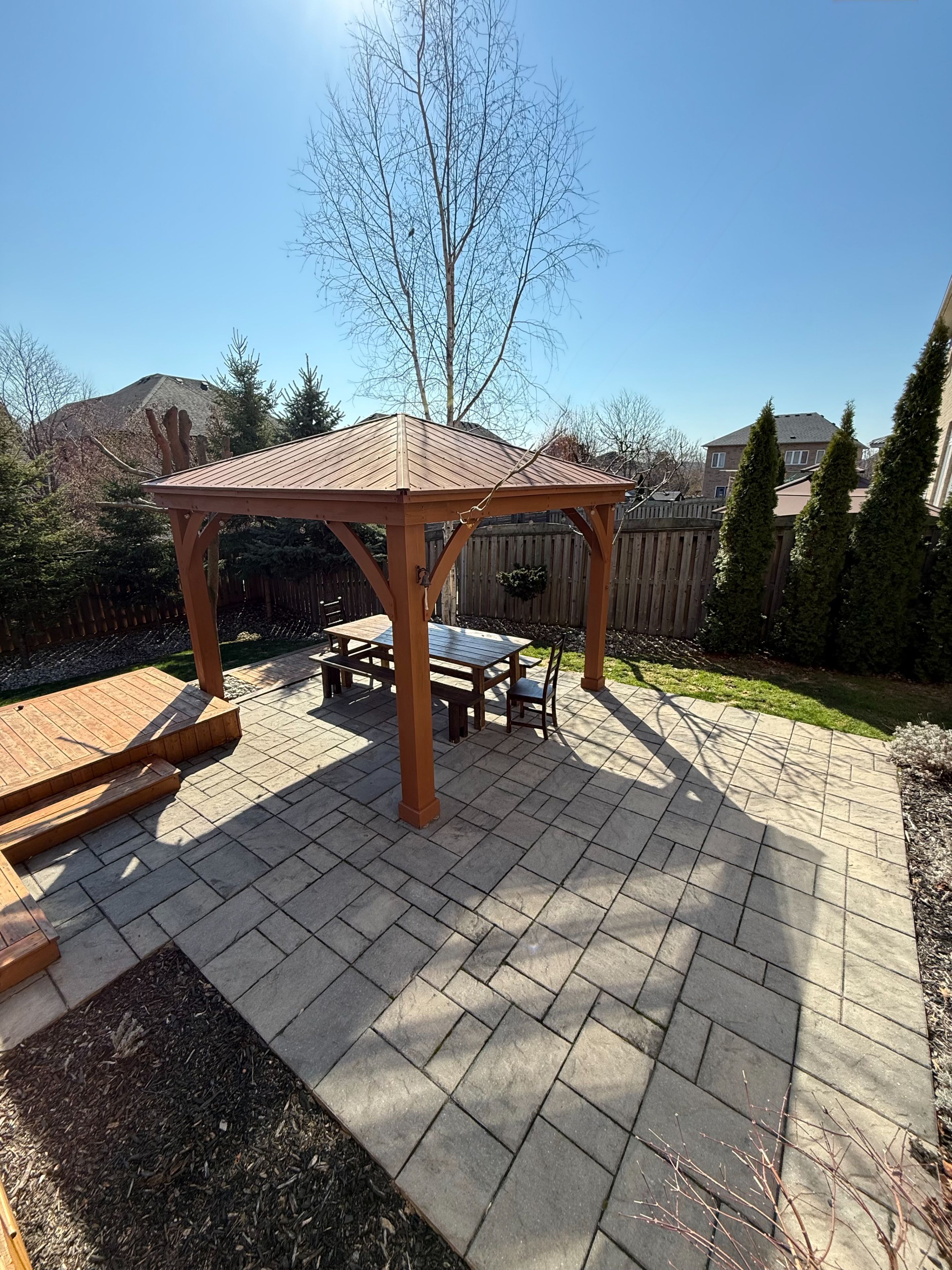 • Outdoor spaces include a deck with hot tub, stone patio, and gazebo.