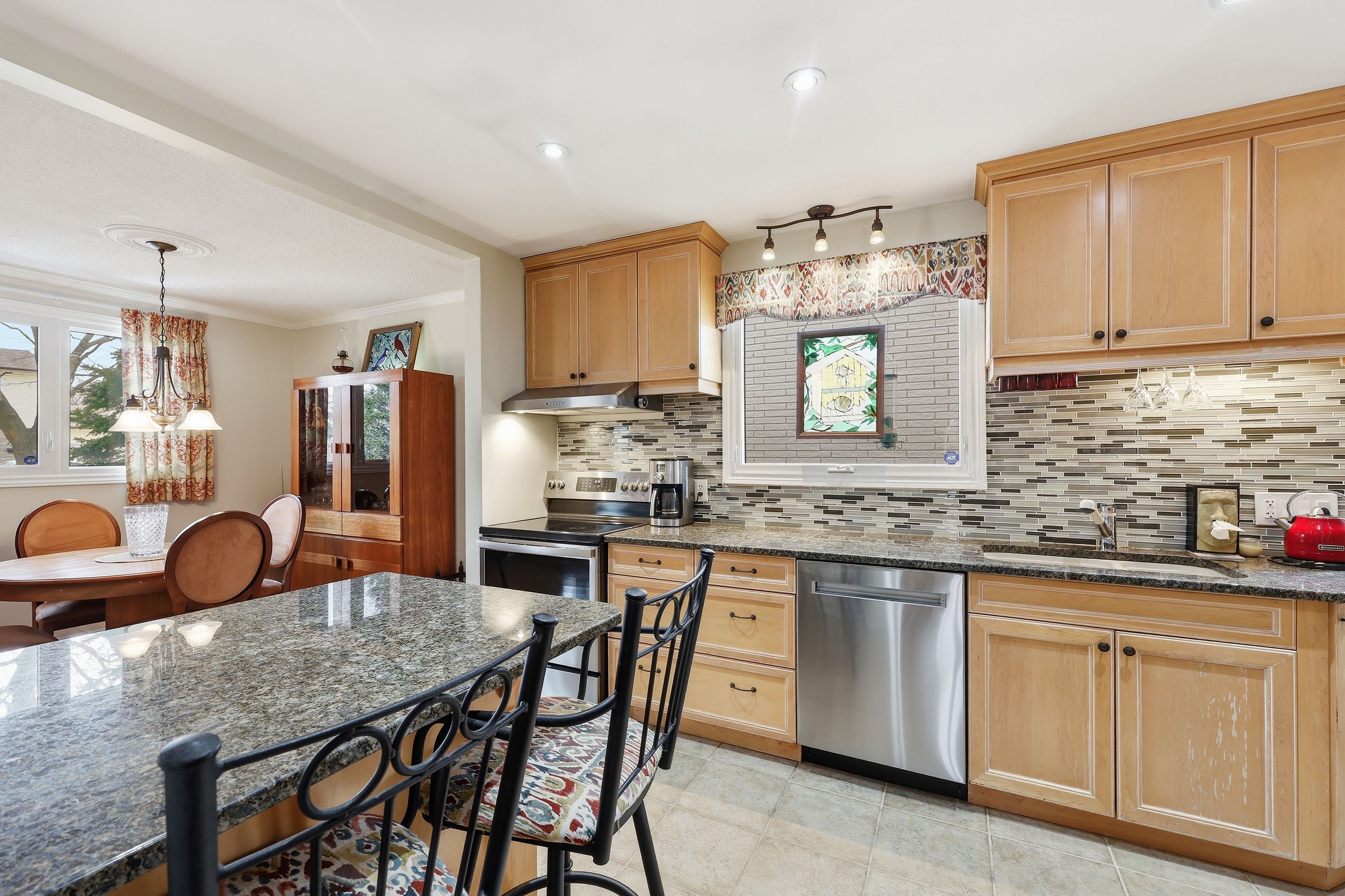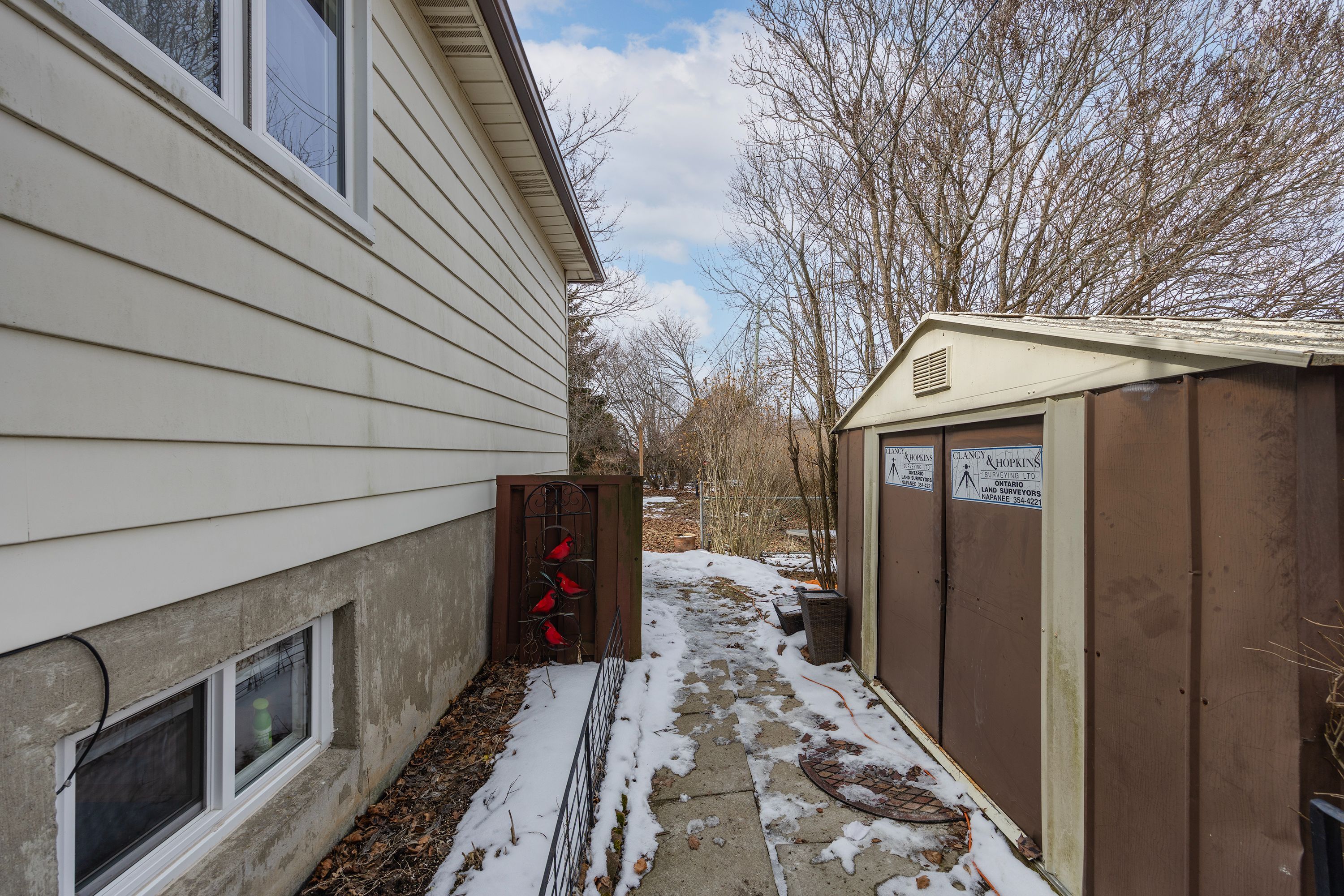 Welcome to old oak - a lovingly maintained sidesplit proudly offered by its original owner, showcasing true pride of ownership throughout. Ideally located just minutes from st. Lawrence college, this home offers exceptional space, functionality, and future potential. Set on a deep, private lot surrounded by mature trees, the outdoor space features a charming stone patio with plenty of room to create your dream backyard, including the possibility of adding a pool. A convenient carport and ample parking complete the exterior. Inside, you'll find bright and spacious living and dining areas highlighted by gleaming hardwood floors. The beautifully updated kitchen offers abundant pantry space, stainless steel appliances, and a cozy eat-in bar, perfect for everyday living and entertaining. The upper level features three generously sized bedrooms, along with a well-appointed 4-piece bathroom complete with a relaxing jacuzzi tub. The lower level adds incredible versatility with a large rec room, dedicated office space, oversized laundry room, an additional 3-piece bathroom, and excellent in-law suite potential. Situated in a desirable location close to amenities, schools, and transit, this is a rare opportunity to own a well-cared-for home in a fantastic neighborhood.