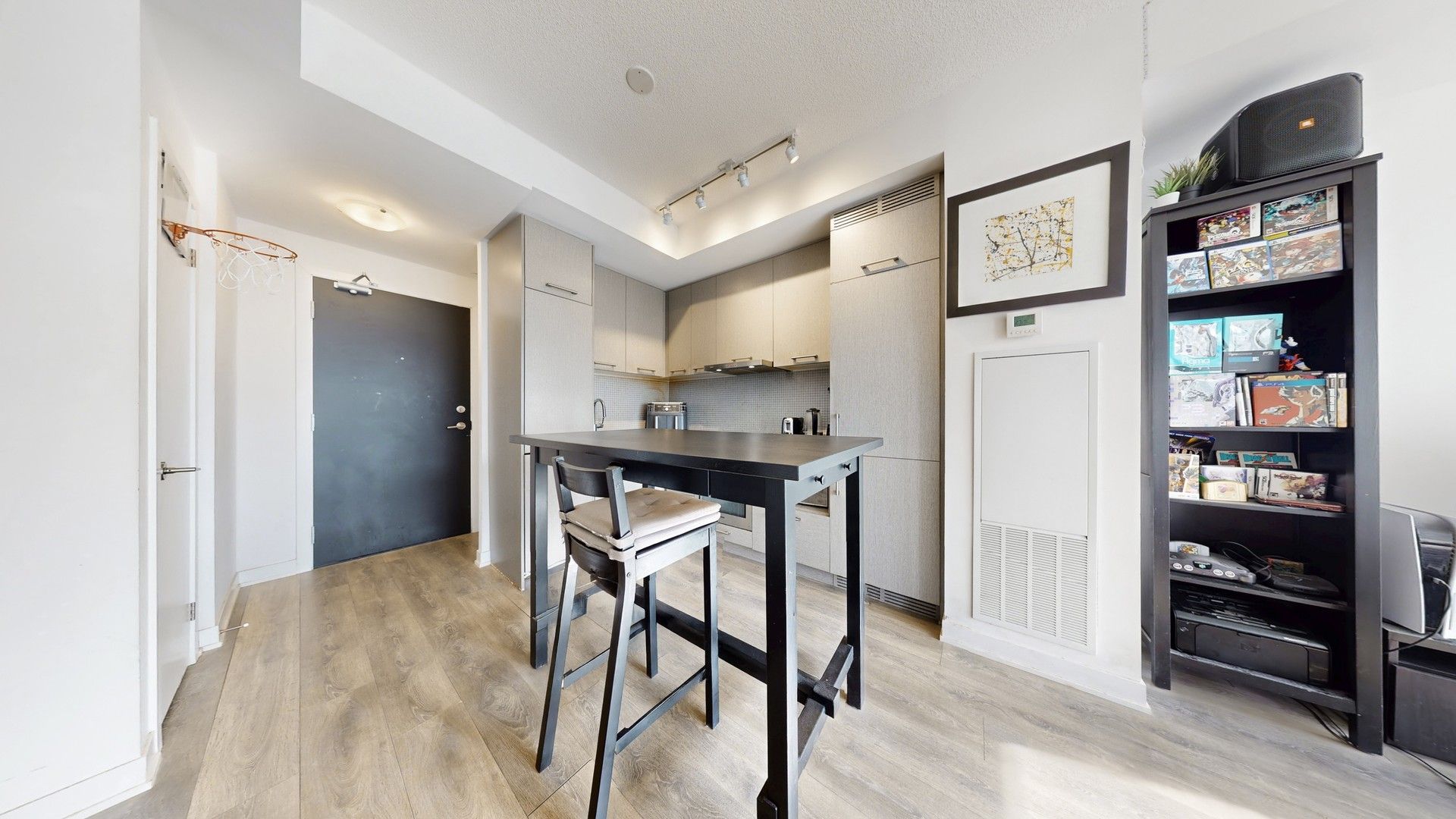 Fabulous 1 bedroom unit at iconic menkes residence 87 peter st! Completed in 2018, perfectly positioned in the heart of toronto's vibrant financial and entertainment districts. This bright and thoughtfully designed 1-bedroom, 1-bathroom suite offers a smart open-concept layout with 9-foot ceilings and expansive floor-to-ceiling windows that fill the space with natural light from its desirable south exposure, creating a warm and airy atmosphere throughout. Step out onto your private balcony and enjoy impressive city views, while low maintenance fees make this an efficient and comfortable choice for urban living. Residents enjoy access to exceptional resort-style amenities, including 24-hour concierge service, a fully equipped fitness centre, sauna, steam room, yoga studio, billiards room. Walk to waterfront, cn tower, rogers centre, ttc subway access, grocery stores, restaurants - this is downtown living at its finest. An outstanding opportunity for first time buyers or investors. Don't miss this exceptional offering!