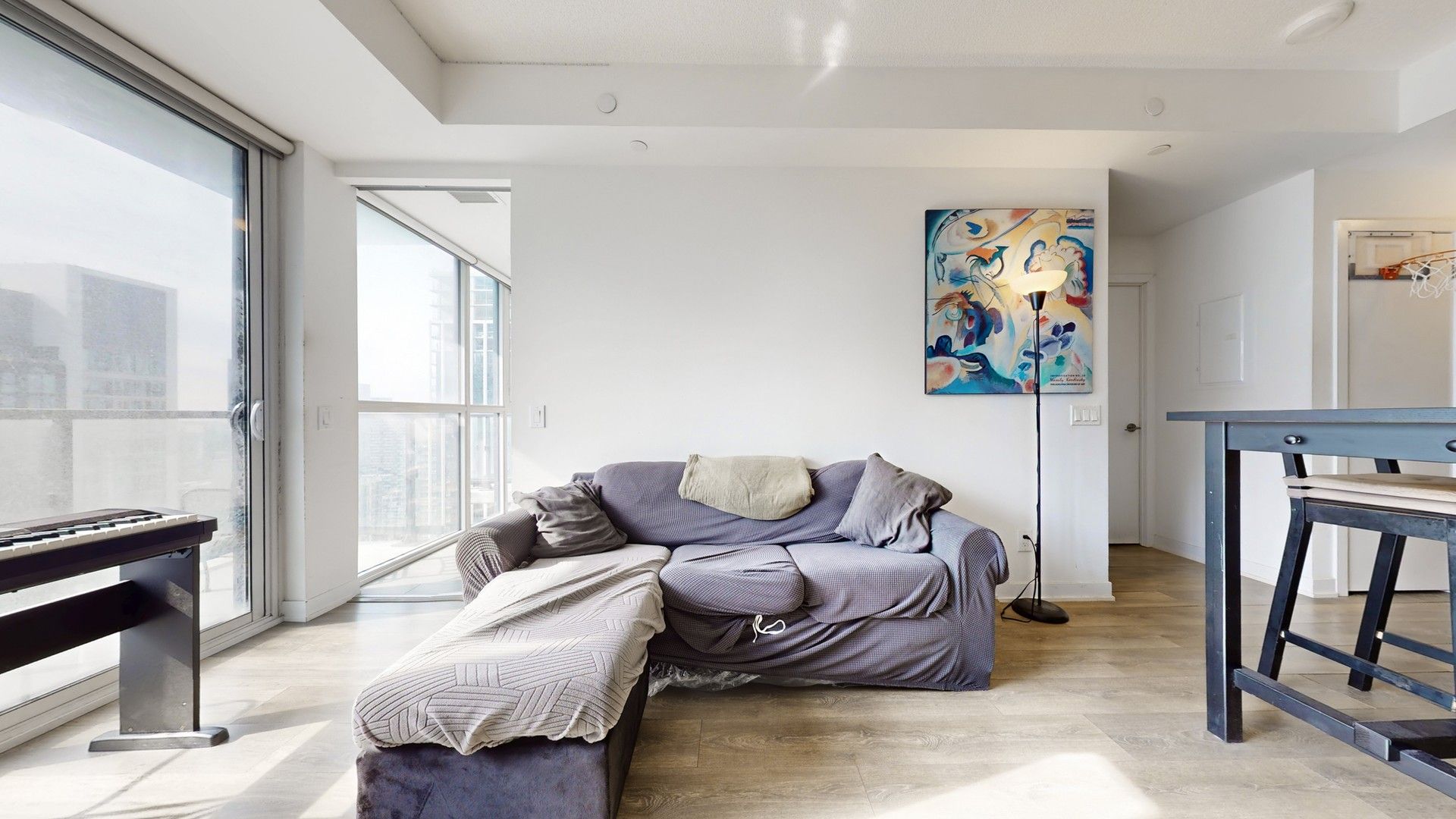 • Bright 1-bedroom unit with 9-foot ceilings and floor-to-ceiling windows.
