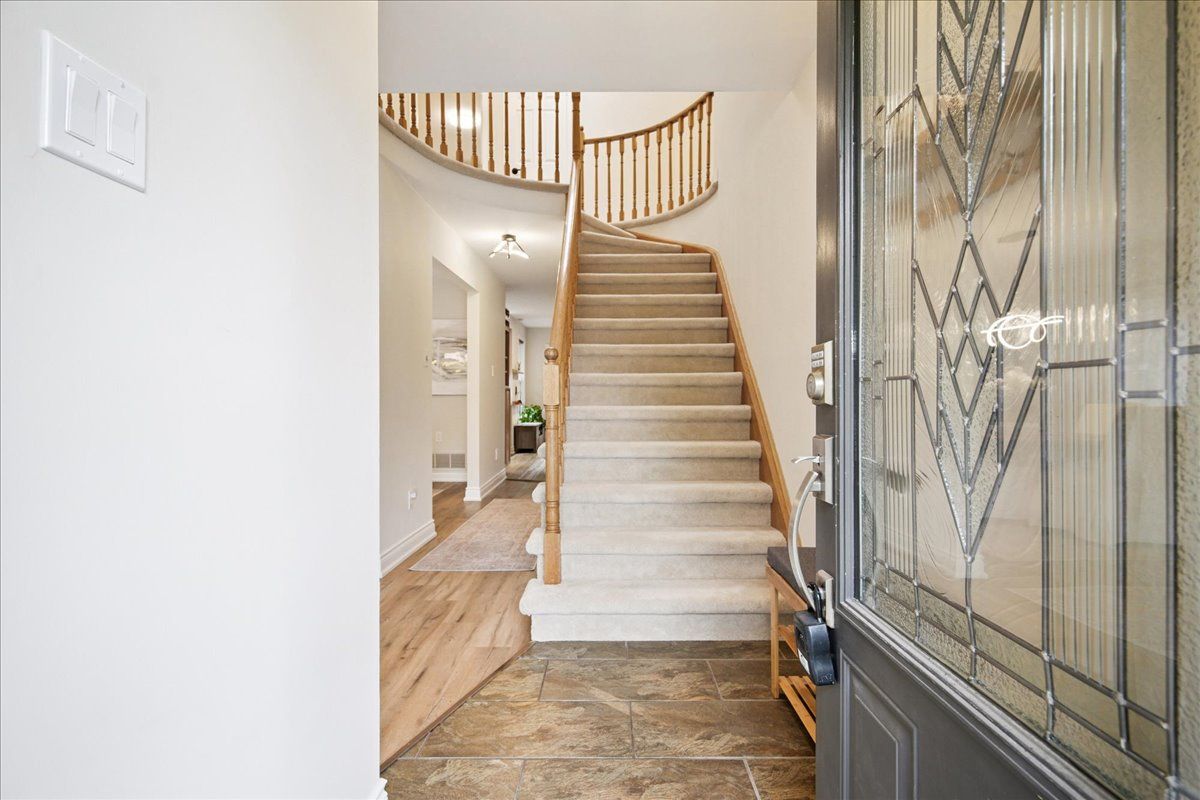 Beautifully maintained & extensively updated 4-bdrm home offering approximately 3,036 sq. Ft. Of finished living space including the newly completed lower level. Located in oakville's sought-after river oaks community, this home is steps to munn's creek park, top-rated schools, river oaks community centre, ravine trails, shopping and transit, an ideal family setting with exceptional walkability & convenience. Loaded with upgrades, this home features smooth 9' ceilings on the main level, upgraded baseboards, new led lighting, fresh broadloom & wide-plank flooring (2024-2025), newer roof shingles & patio doors (2024), windows (2009) & furnace (2019), & an owned hot water tank (2024). The spacious main floor offers an inviting living/dining room with bay window, a sunken family room with vaulted ceiling, two skylights & a brick-feature wood-burning fireplace, plus a renovated 2-piece bath & main floor laundry with garage access. The kitchen offers generous cabinetry with wine storage, quartz counters, pantry, jenn-air fridge, bosch dishwasher, and sliding door walkout to the private backyard. The second floor features four generous bedrooms and two renovated bathrooms. The primary suite includes a large mirrored closet and a stunning 3-piece ensuite (2025) with oversized glass shower, black fixtures, bench seating, toto toilet and modern stone-look finishes. The main 4-piece bath is also updated with a neptune soaker tub and rain shower. The professionally finished basement (2024-2025) adds bright, functional living space with luxury vinyl plank flooring and smooth ceilings, offering an open recreation area, games room, storage & a rough-in for a future bathroom & fireplace. Enjoy outdoor living in the fully fenced backyard complete with a large two-tier deck, pergola wrapped in greenery, arbour with built-in bench, & mature landscaping, perfect for entertaining. Move-in ready & upgraded with pride of ownership throughout, this is the one you've been waiting for.