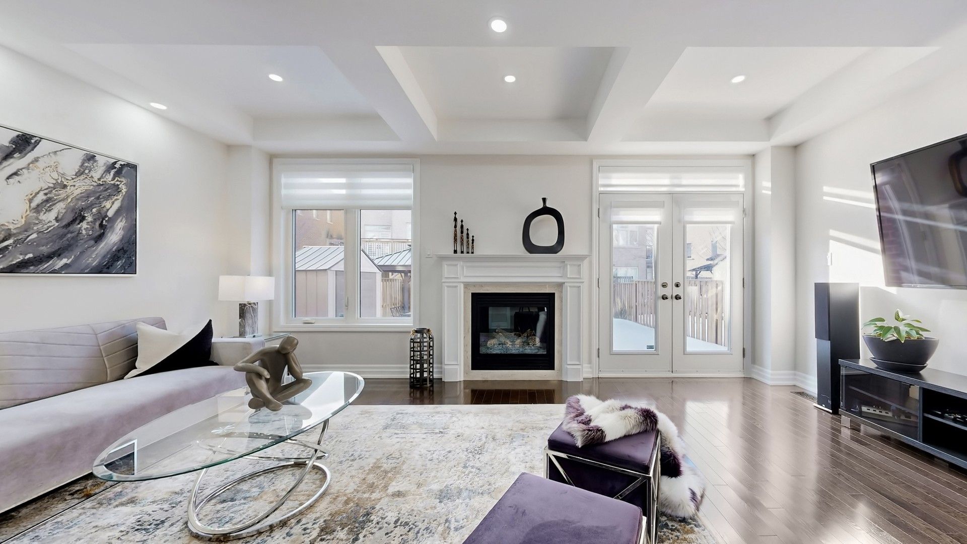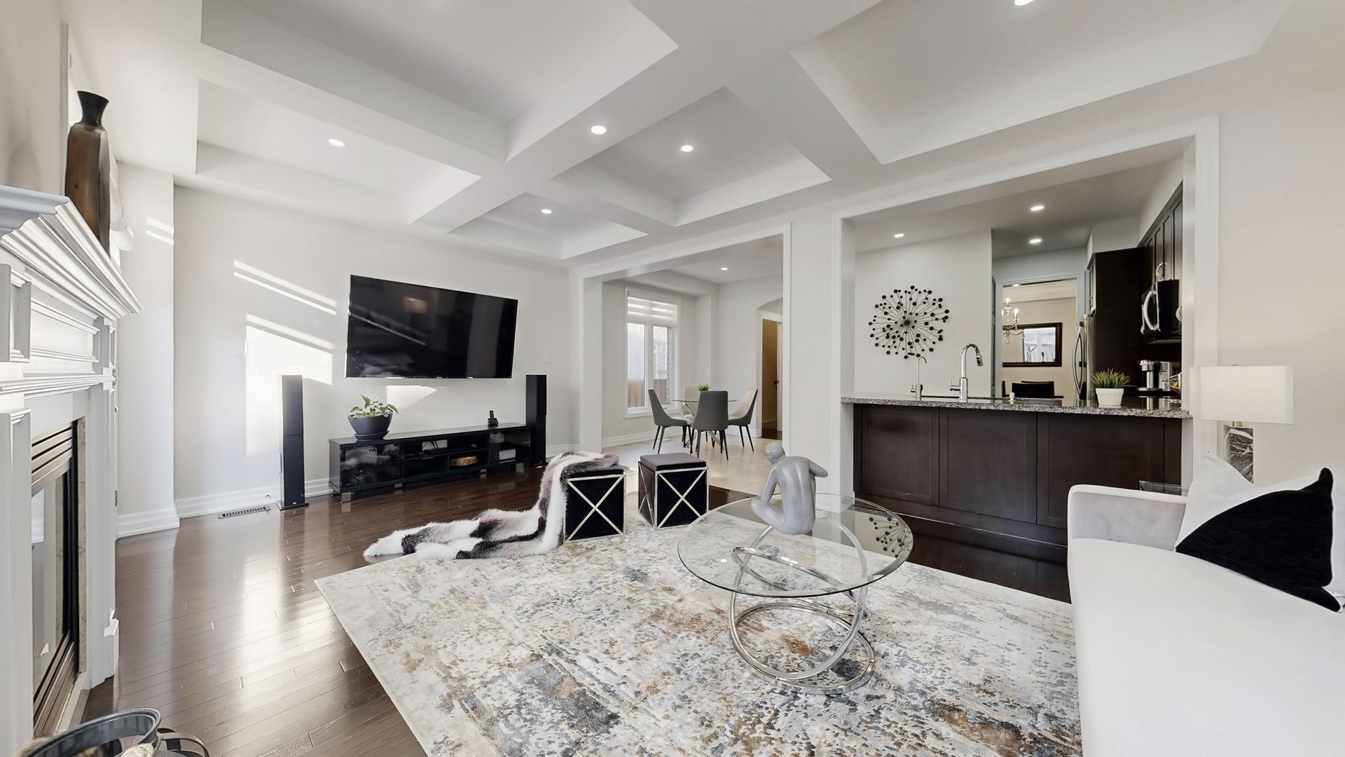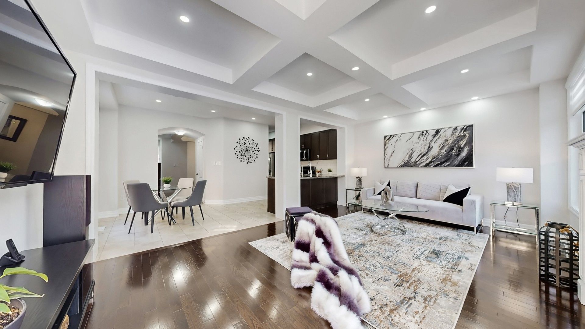 • Thoughtfully upgraded features like hardwood floors and coffered ceilings throughout.