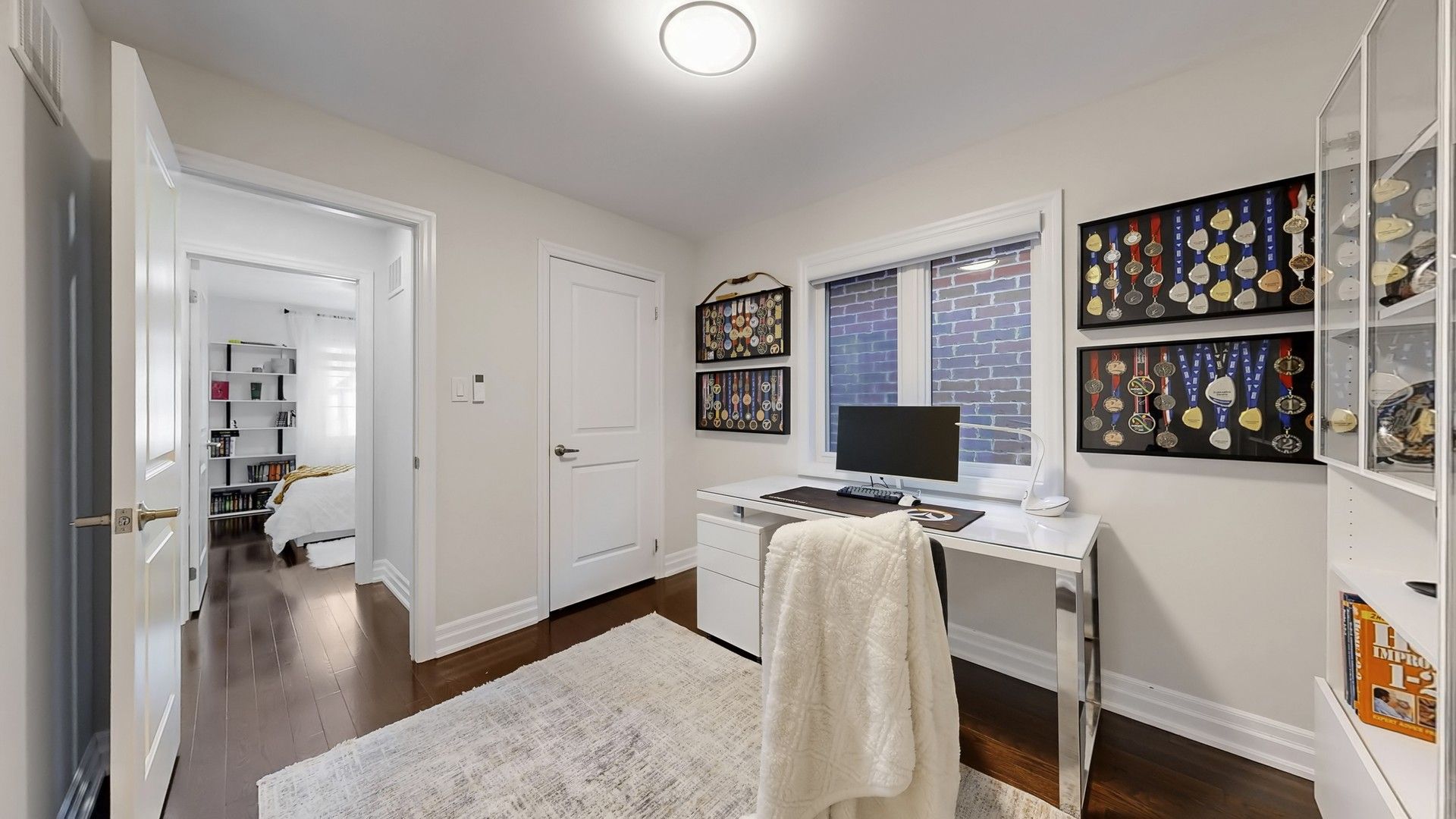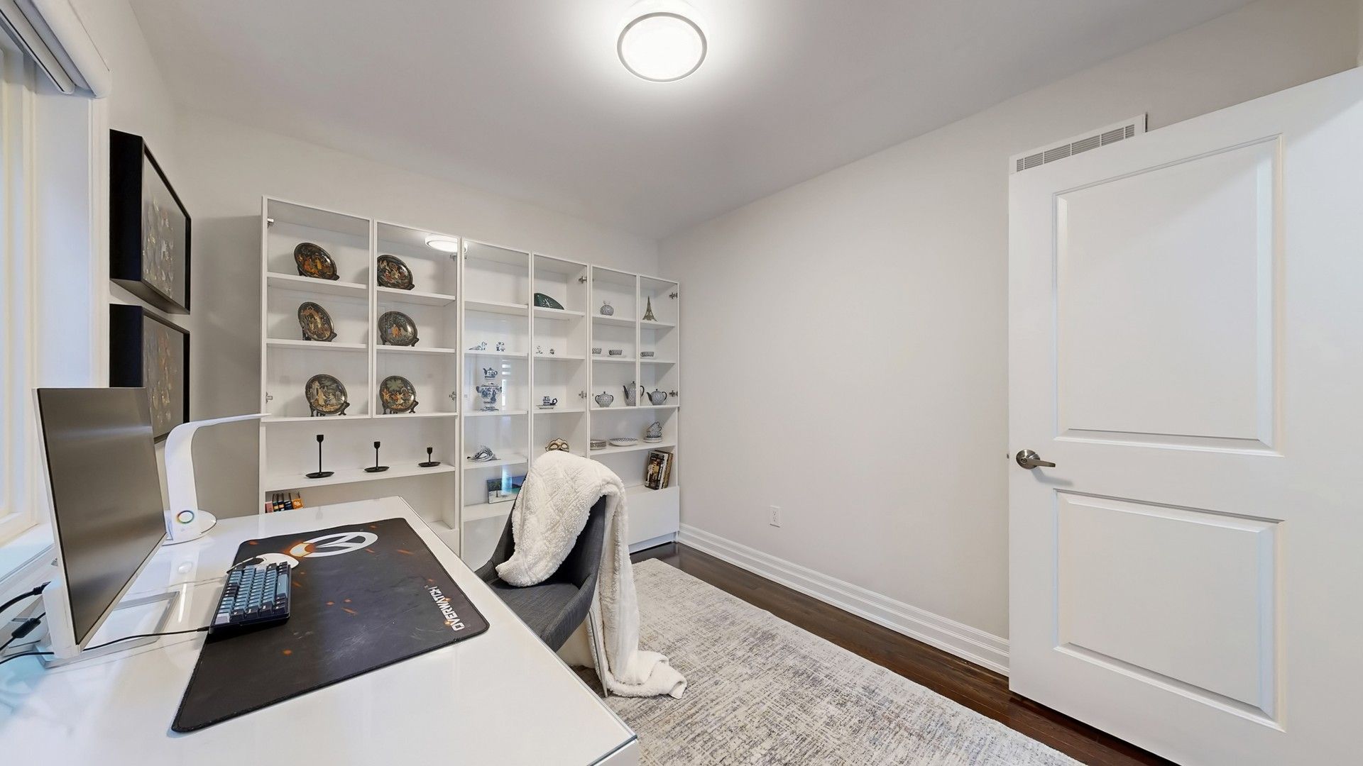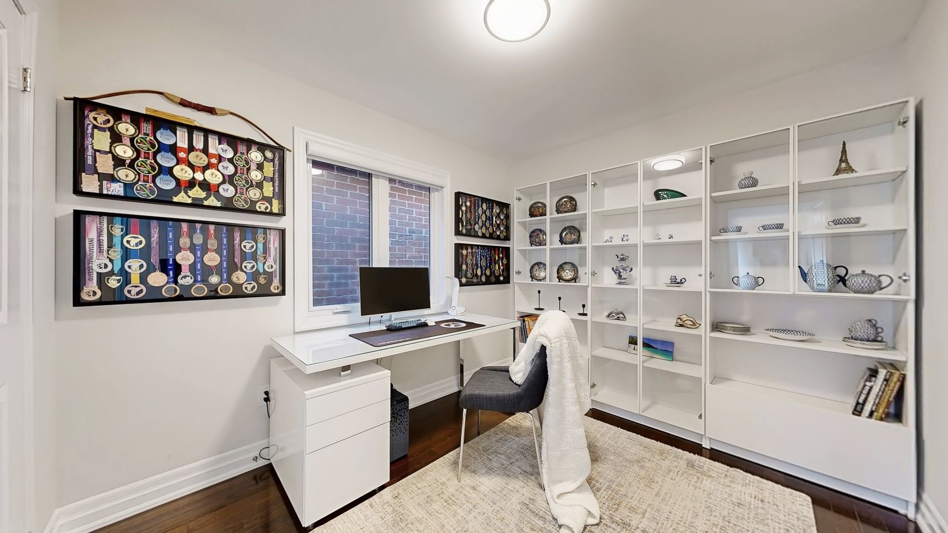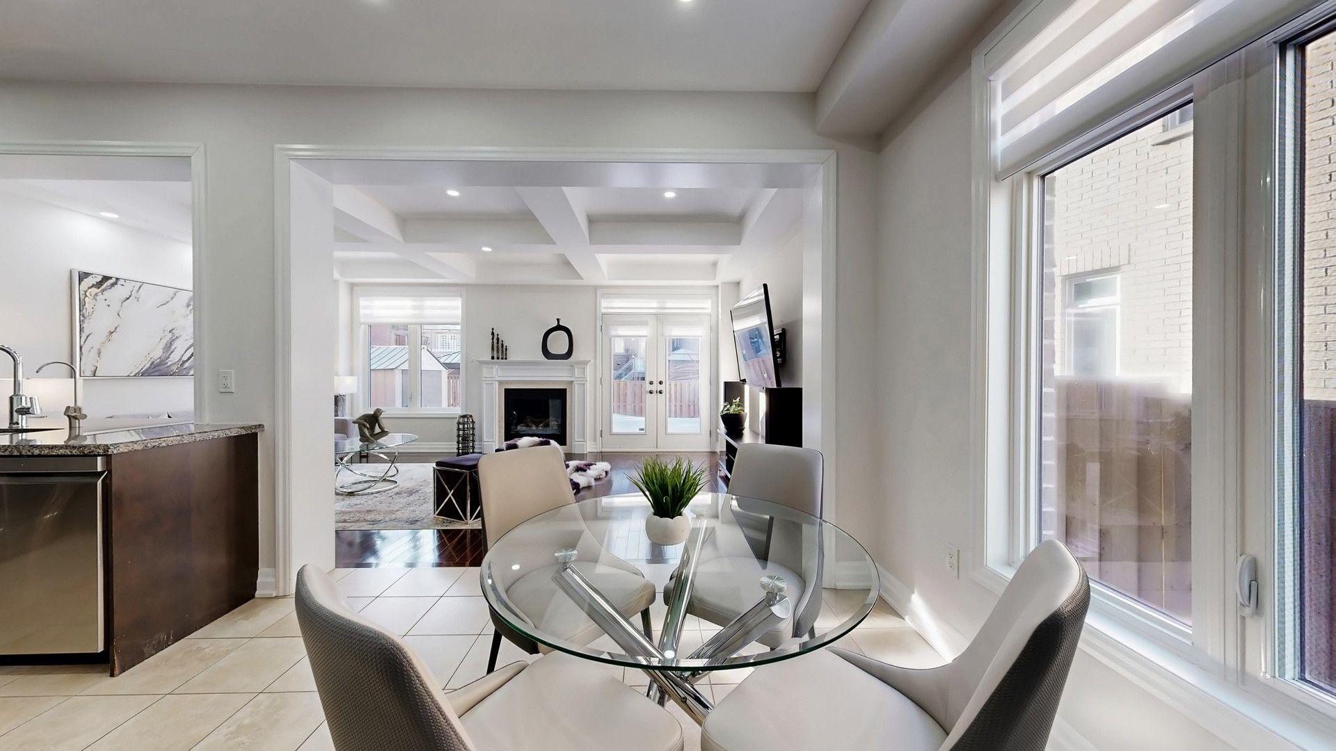 • Thoughtfully upgraded features like hardwood floors and coffered ceilings throughout.