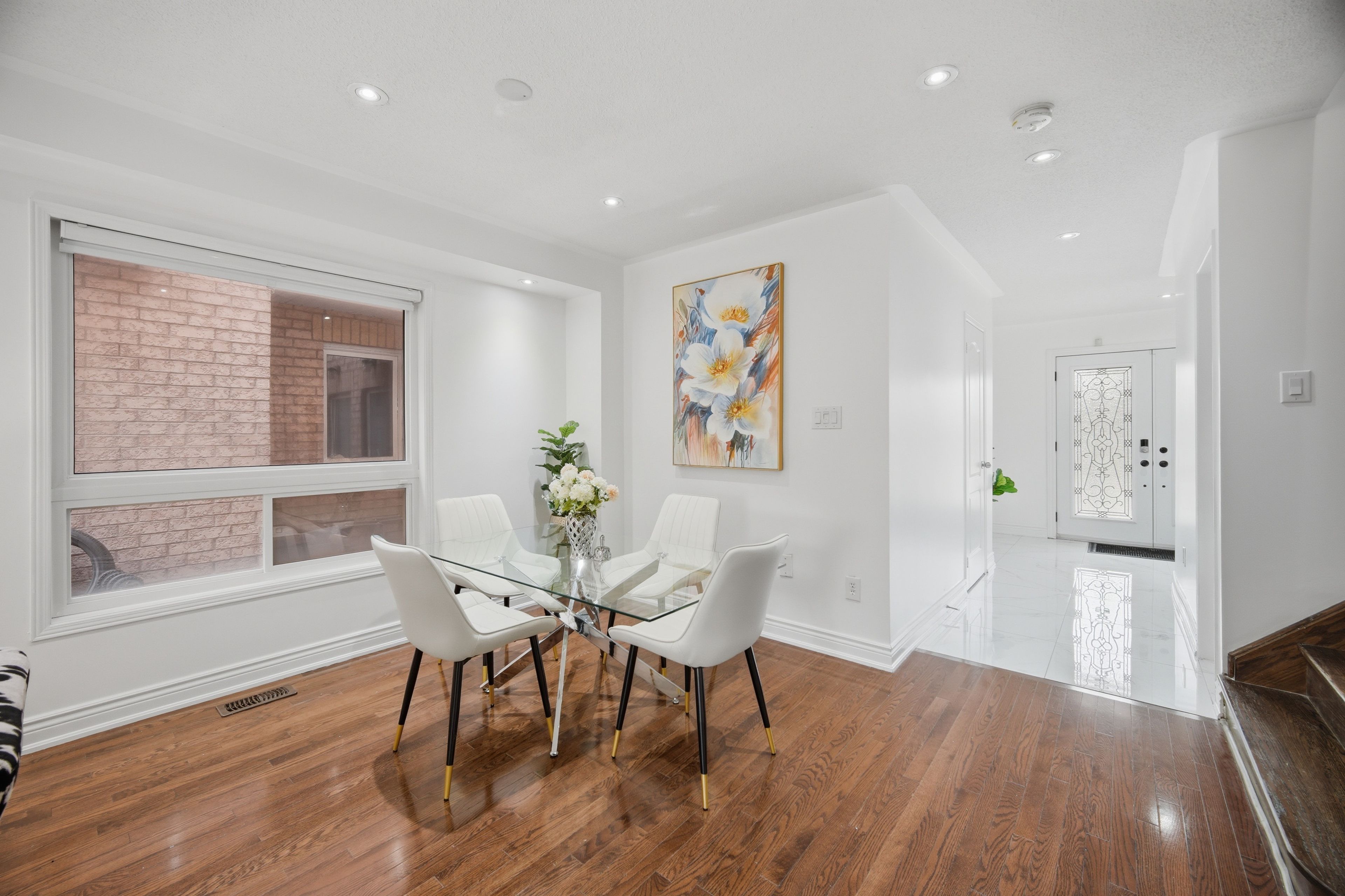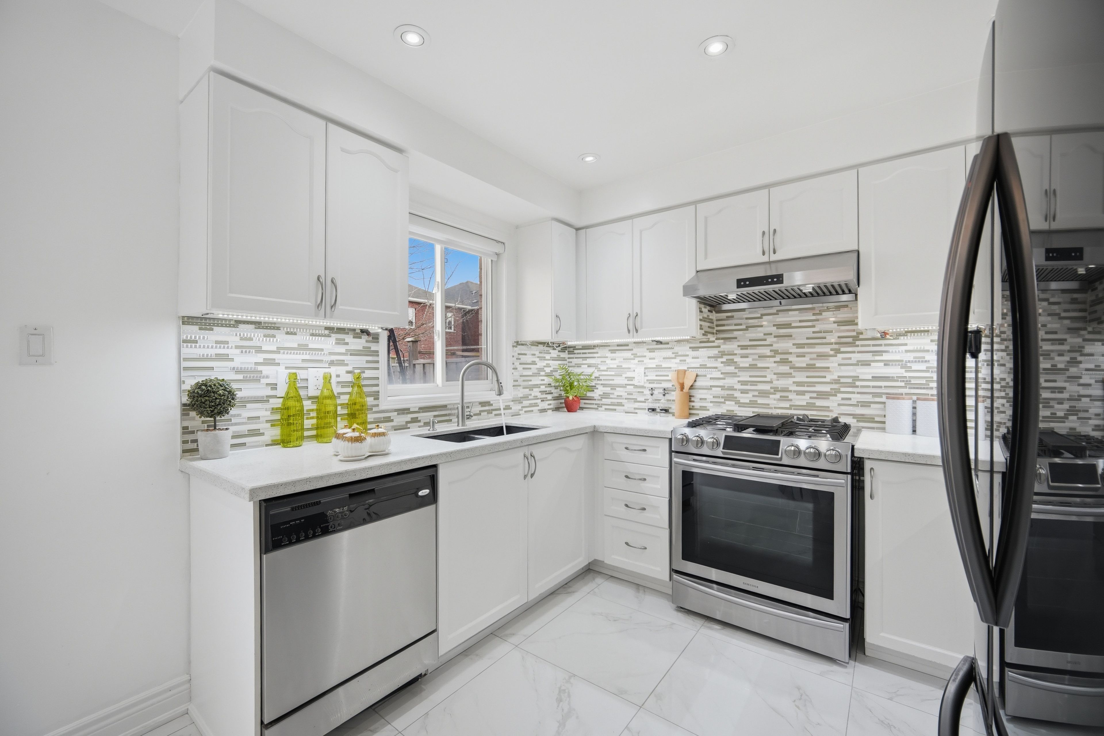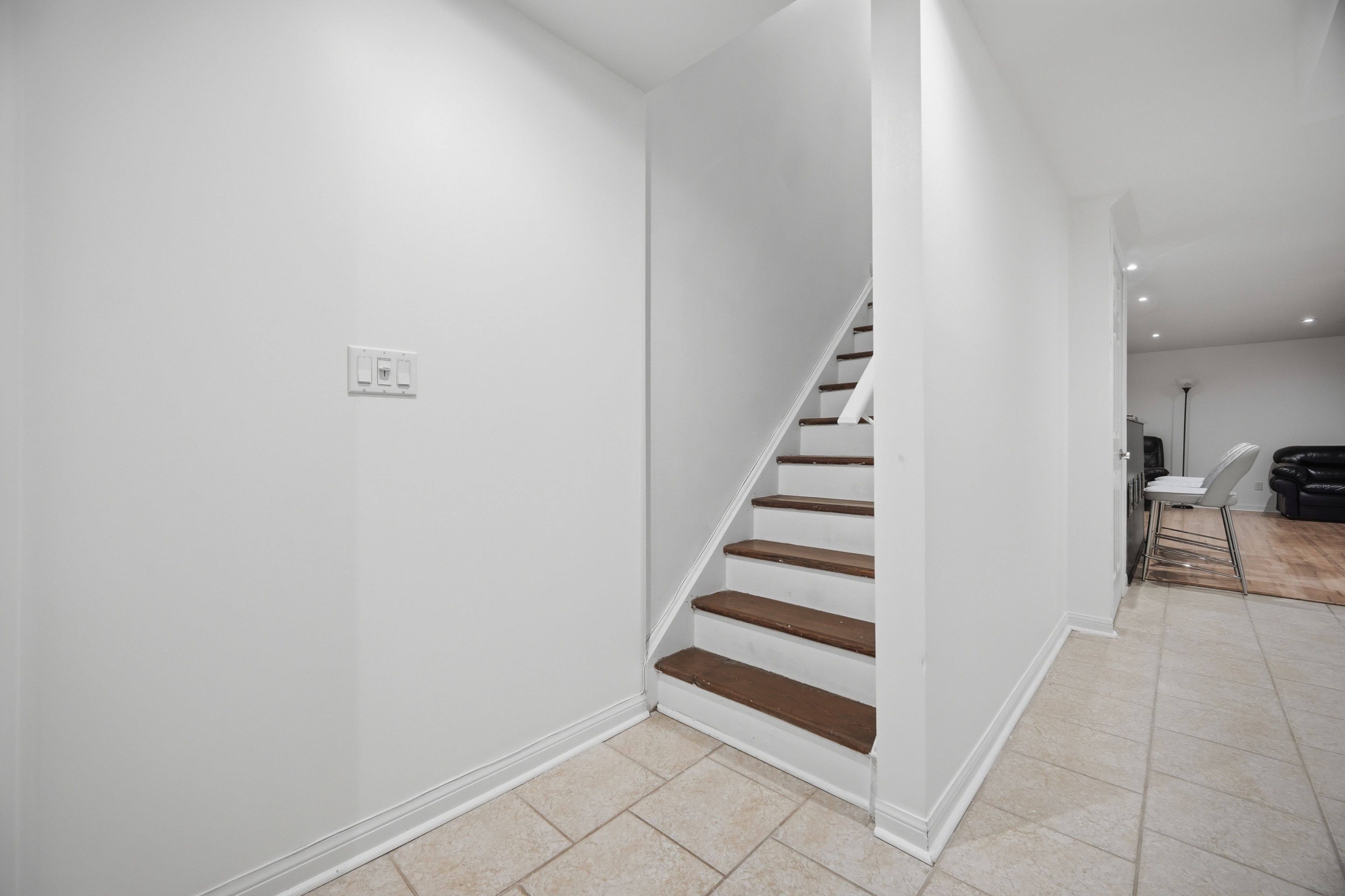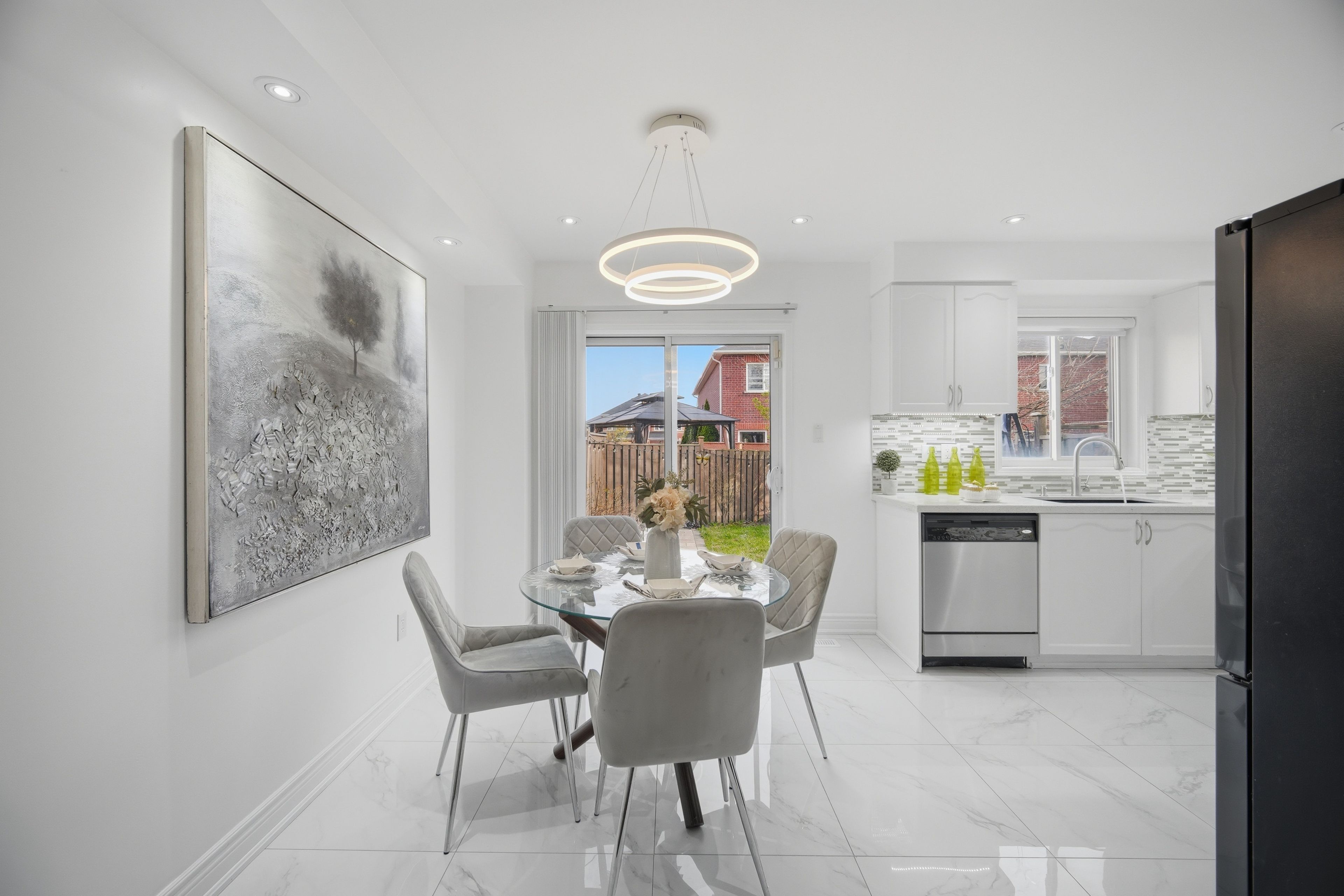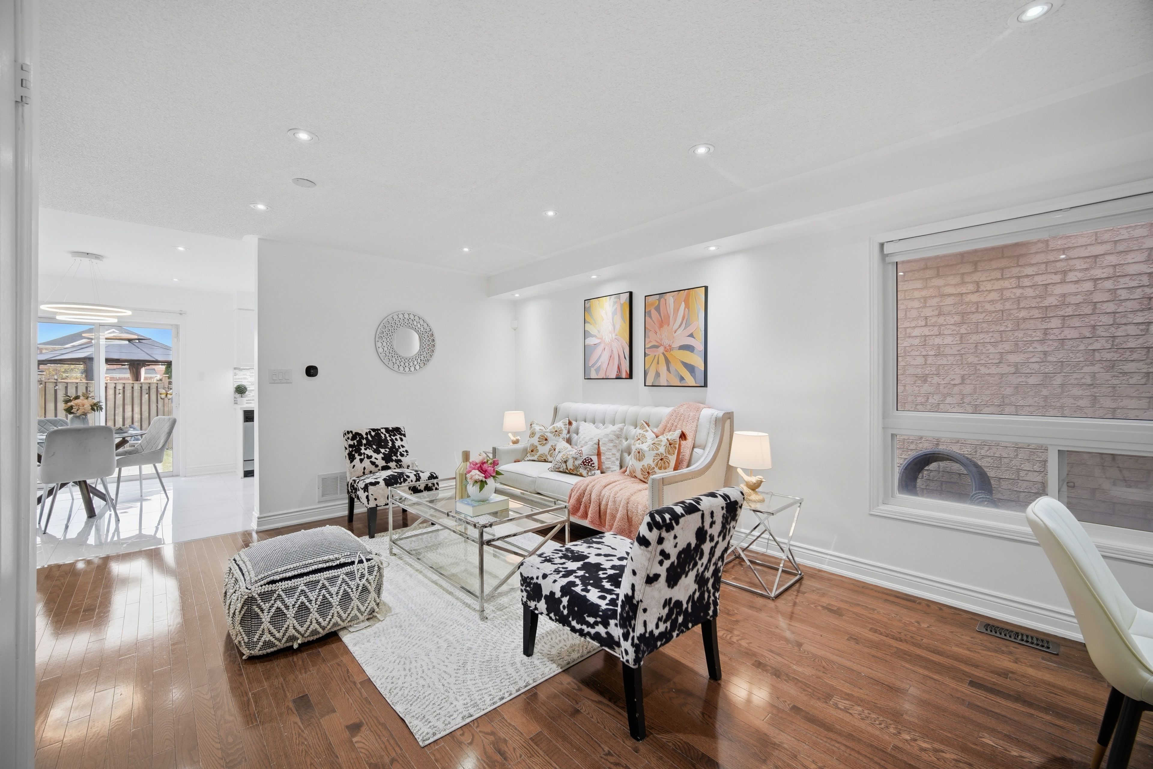 Wow! This is an absolute showstopper and a must-see! This stunning home offers exceptional privacy, abundant natural light, and one of the largest layouts on the street (approx. 1,757 sq. Ft.). Bright and meticulously maintained, it features a grand double-door entry and a spacious foyer, leading into an open-concept living and dining area with hardwood flooring and pot lights. Enjoy brand new 24"x24" porcelain tiles and a modern kitchen complete with quartz countertops, stylish backsplash, and a breakfast area overlooking a beautifully designed backyard-perfect for relaxing or entertaining. Elegant oak stairs lead to the second level, where you'll find a spacious primary bedroom with a custom built walk-in closet and ensuite bath, along with two other large sized bedrooms with double closets. A convenient second-floor laundry room adds everyday ease. Freshly painted throughout, this home also features an extended driveway and a tastefully finished basement with a large recreation area, open bar, 2-piece bathroom, and additional storage-ideal for hosting gatherings. This house garage is attached but the roof in the back is fully detached. Located in a superb, family-friendly neighborhood close to major shopping, schools, and just minutes to mount pleasant go station, new tennis court wj clifford park. A perfect blend of style, space, and convenience-don't miss this incredible opportunity!