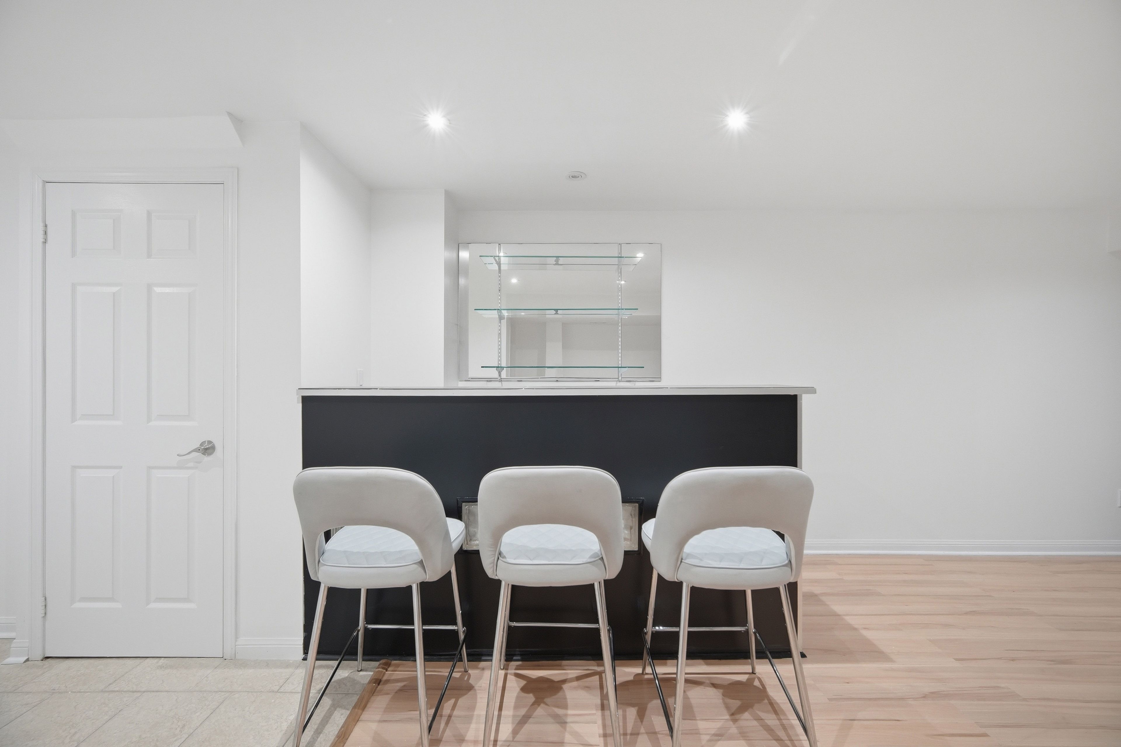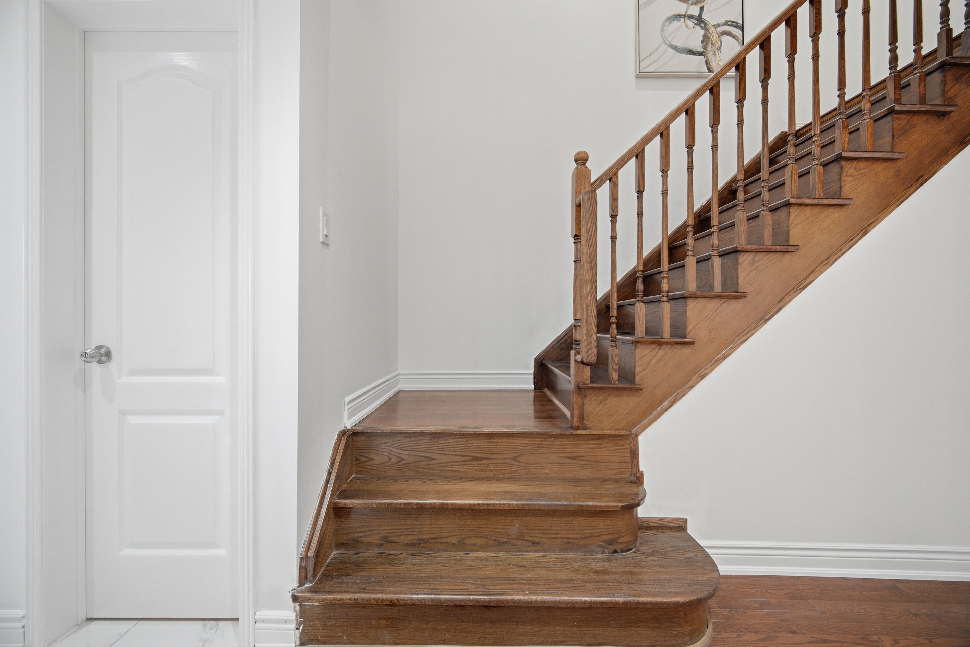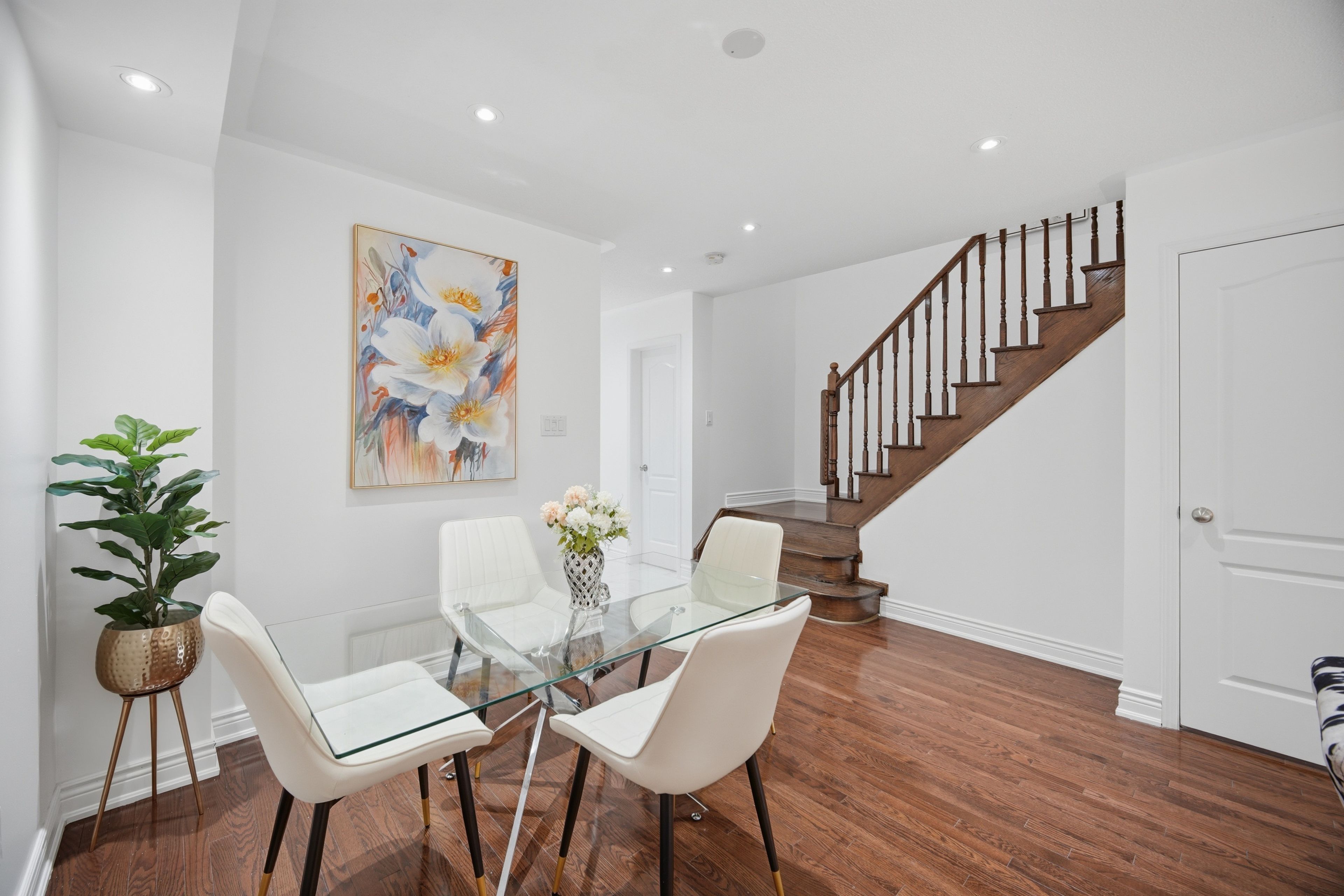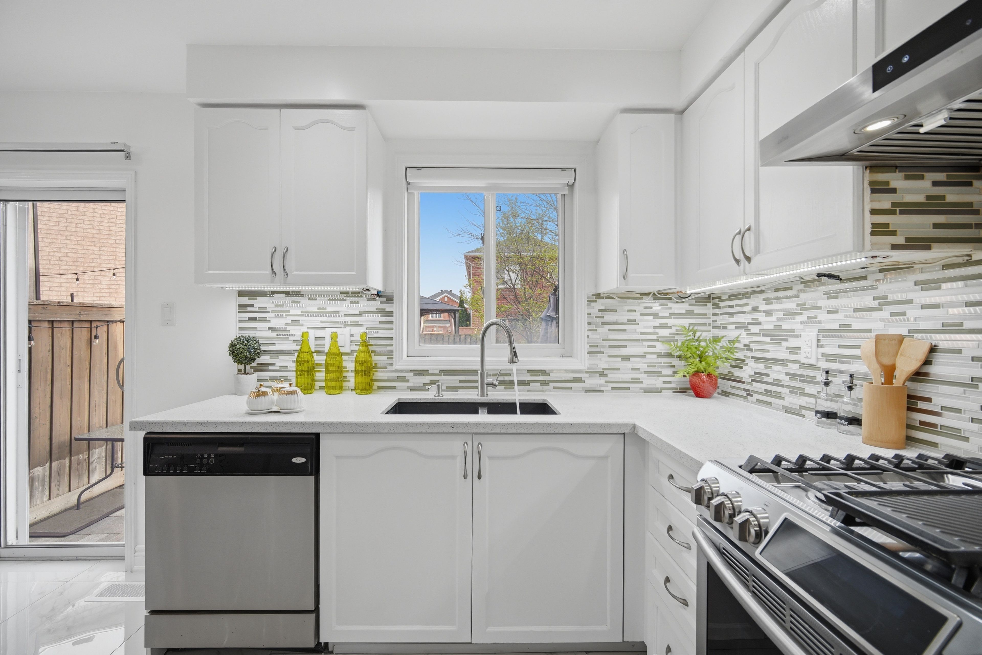 Wow! This is an absolute showstopper and a must-see! This stunning home offers exceptional privacy, abundant natural light, and one of the largest layouts on the street (approx. 1,757 sq. Ft.). Bright and meticulously maintained, it features a grand double-door entry and a spacious foyer, leading into an open-concept living and dining area with hardwood flooring and pot lights. Enjoy brand new 24"x24" porcelain tiles and a modern kitchen complete with quartz countertops, stylish backsplash, and a breakfast area overlooking a beautifully designed backyard-perfect for relaxing or entertaining. Elegant oak stairs lead to the second level, where you'll find a spacious primary bedroom with a custom built walk-in closet and ensuite bath, along with two other large sized bedrooms with double closets. A convenient second-floor laundry room adds everyday ease. Freshly painted throughout, this home also features an extended driveway and a tastefully finished basement with a large recreation area, open bar, 2-piece bathroom, and additional storage-ideal for hosting gatherings. This house garage is attached but the roof in the back is fully detached. Located in a superb, family-friendly neighborhood close to major shopping, schools, and just minutes to mount pleasant go station, new tennis court wj clifford park. A perfect blend of style, space, and convenience-don't miss this incredible opportunity!