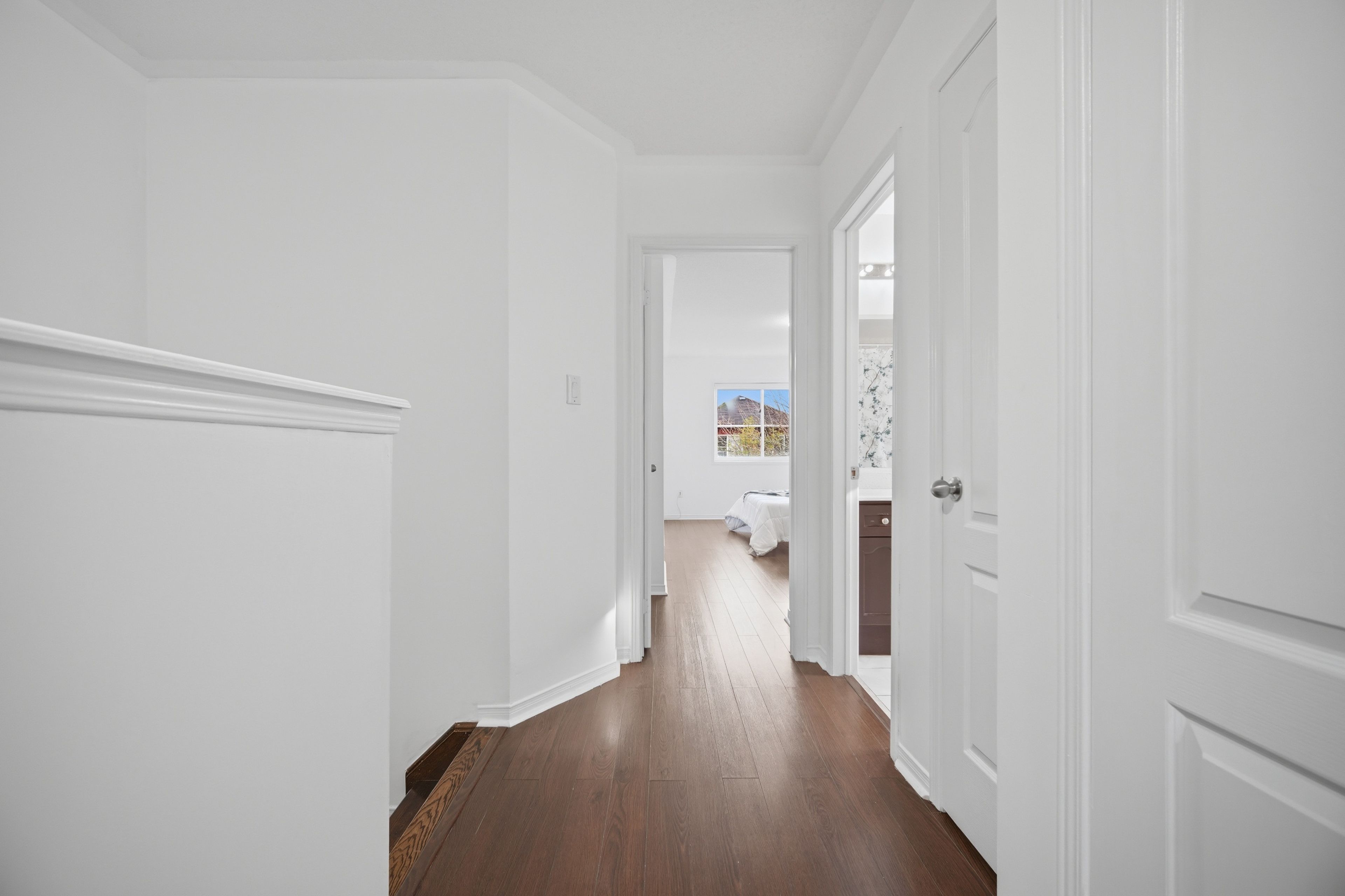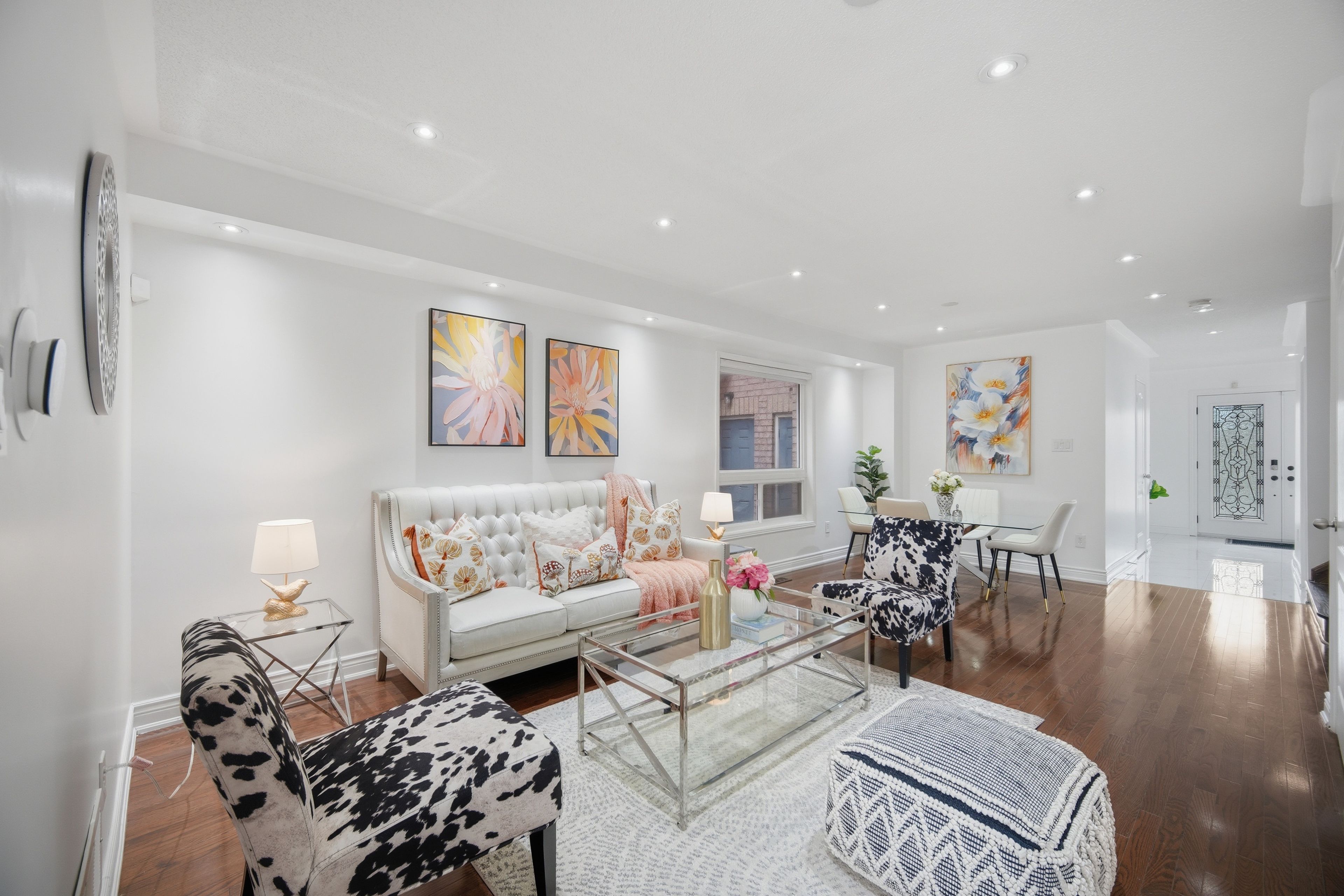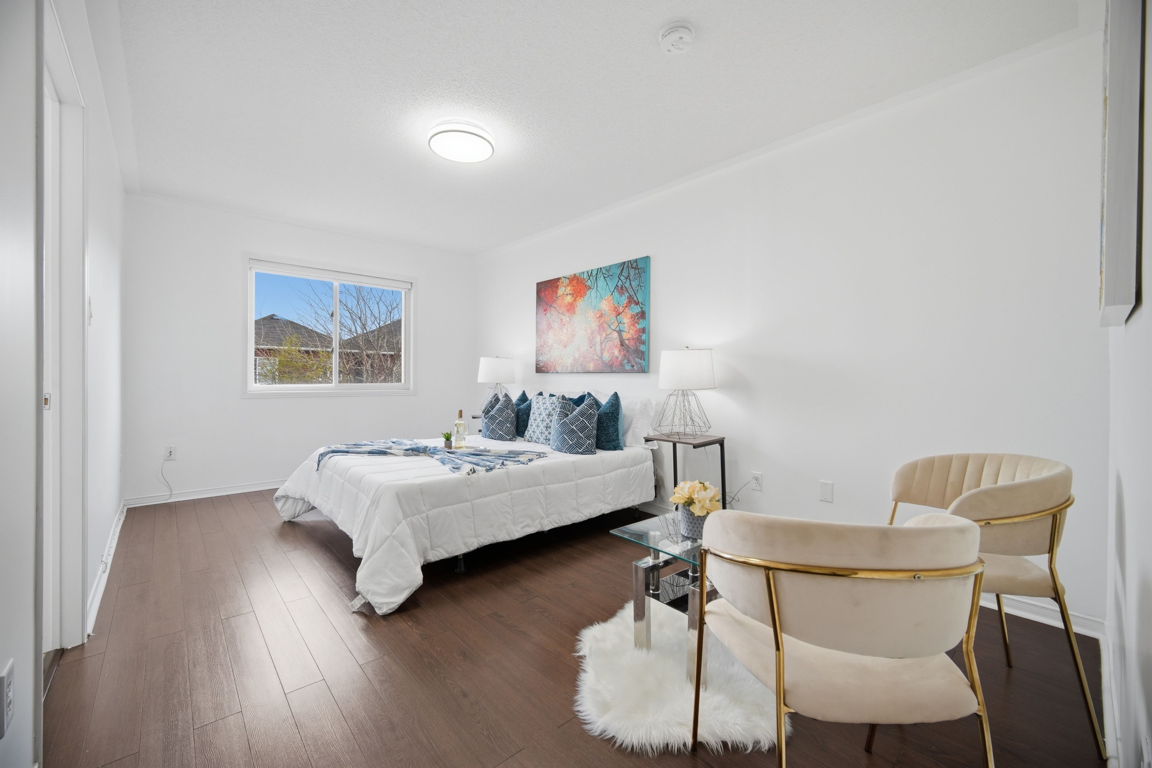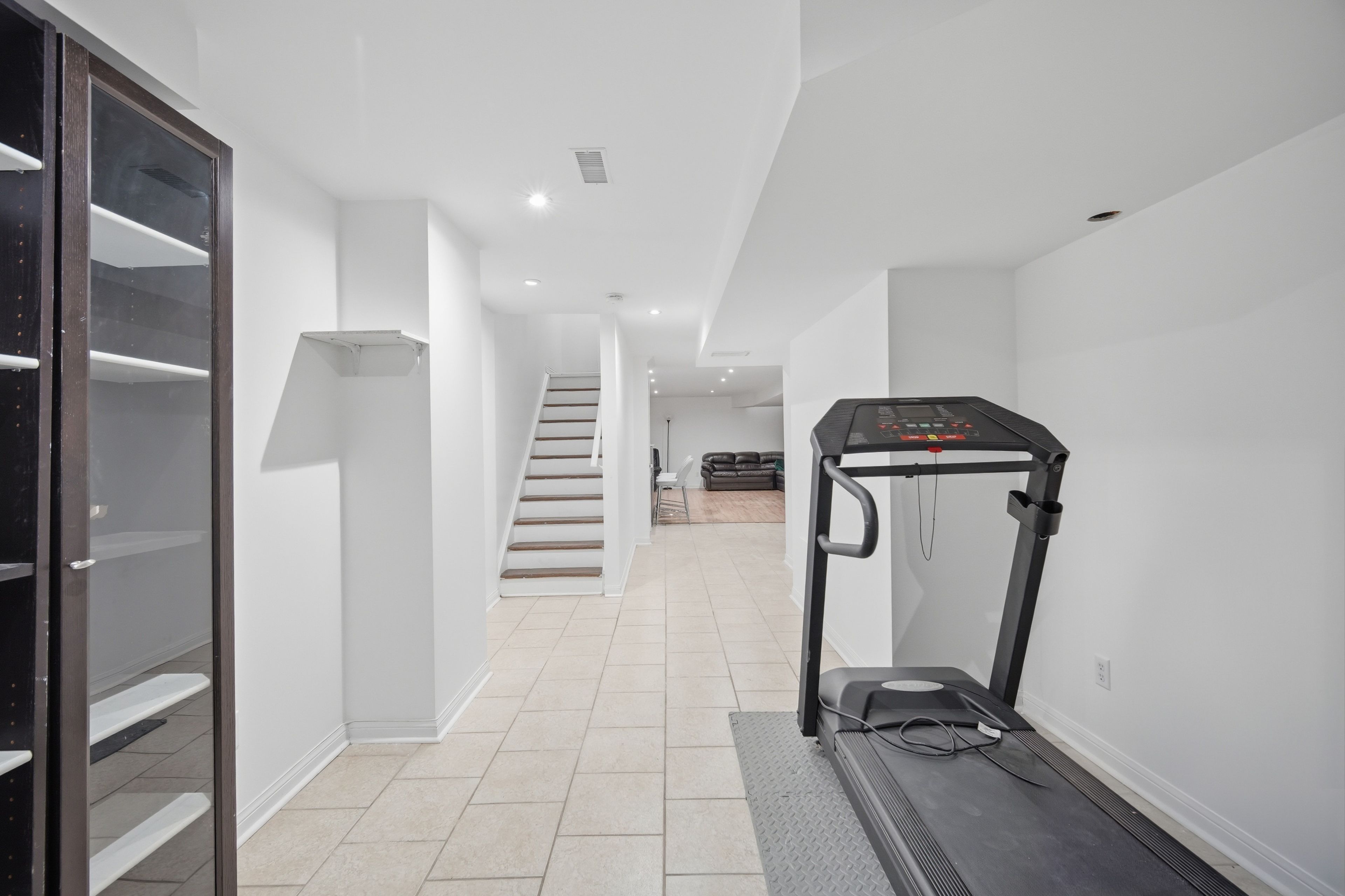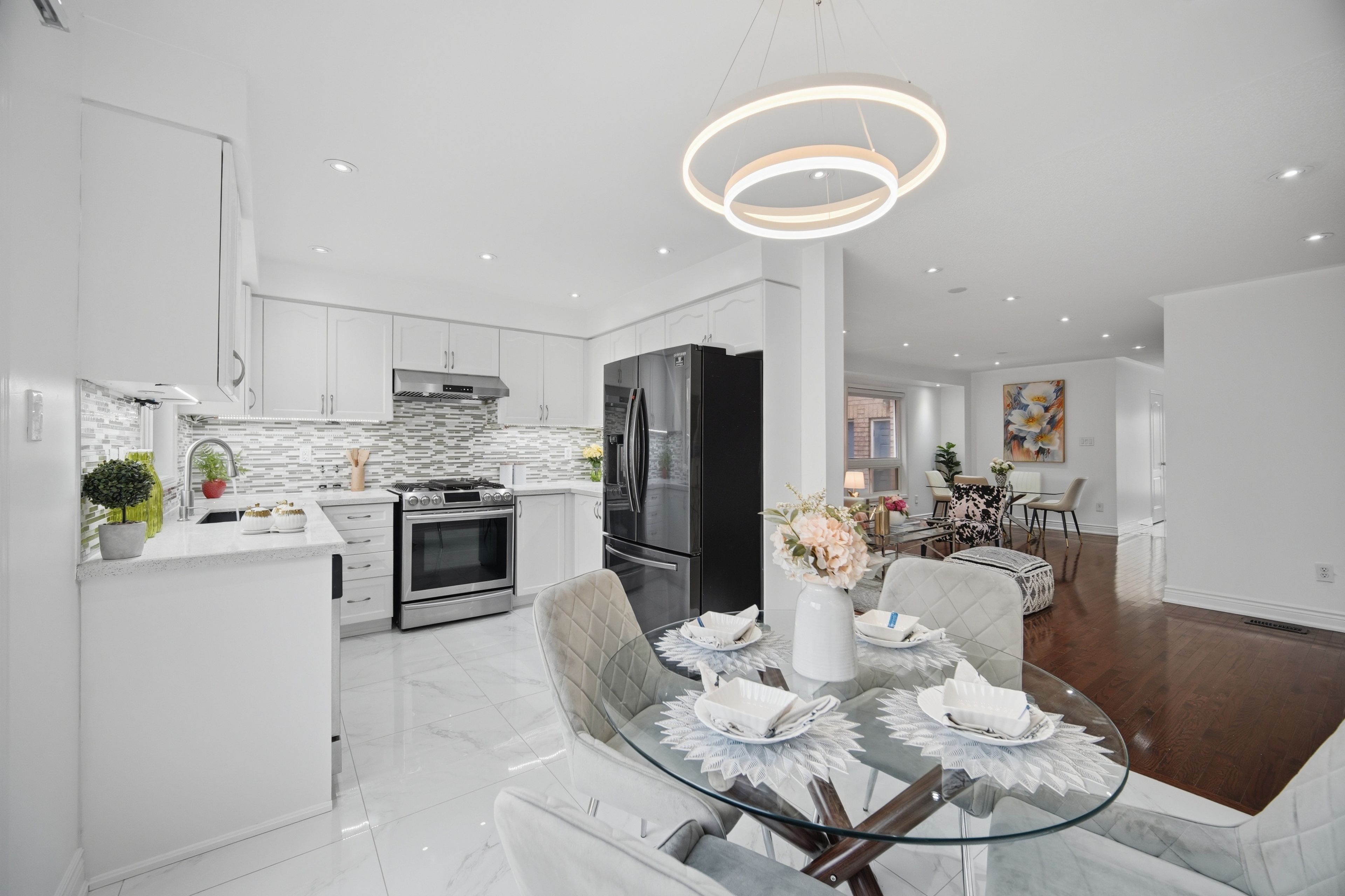 Wow! This is an absolute showstopper and a must-see! This stunning home offers exceptional privacy, abundant natural light, and one of the largest layouts on the street (approx. 1,757 sq. Ft.). Bright and meticulously maintained, it features a grand double-door entry and a spacious foyer, leading into an open-concept living and dining area with hardwood flooring and pot lights. Enjoy brand new 24"x24" porcelain tiles and a modern kitchen complete with quartz countertops, stylish backsplash, and a breakfast area overlooking a beautifully designed backyard-perfect for relaxing or entertaining. Elegant oak stairs lead to the second level, where you'll find a spacious primary bedroom with a custom built walk-in closet and ensuite bath, along with two other large sized bedrooms with double closets. A convenient second-floor laundry room adds everyday ease. Freshly painted throughout, this home also features an extended driveway and a tastefully finished basement with a large recreation area, open bar, 2-piece bathroom, and additional storage-ideal for hosting gatherings. This house garage is attached but the roof in the back is fully detached. Located in a superb, family-friendly neighborhood close to major shopping, schools, and just minutes to mount pleasant go station, new tennis court wj clifford park. A perfect blend of style, space, and convenience-don't miss this incredible opportunity!