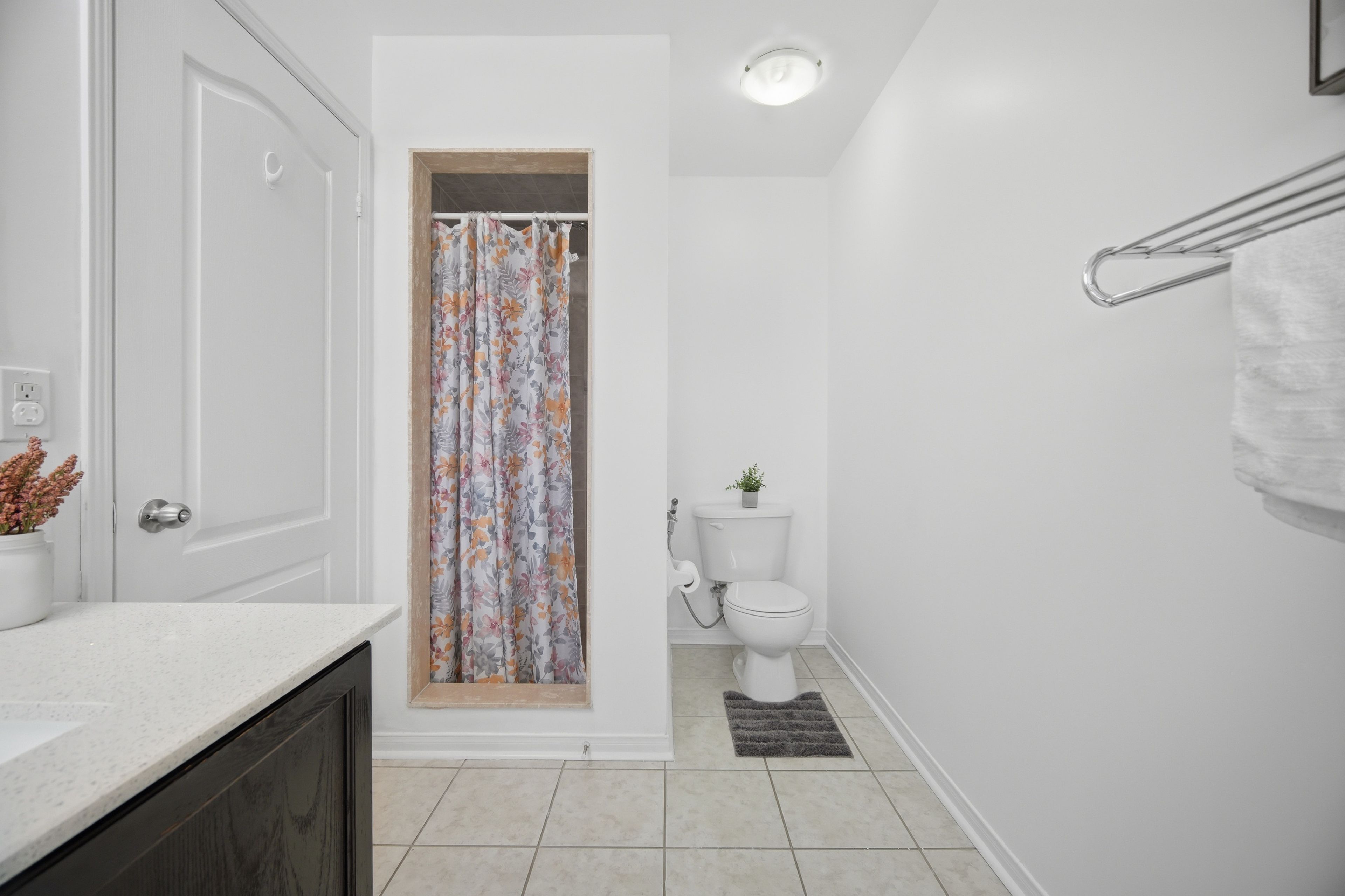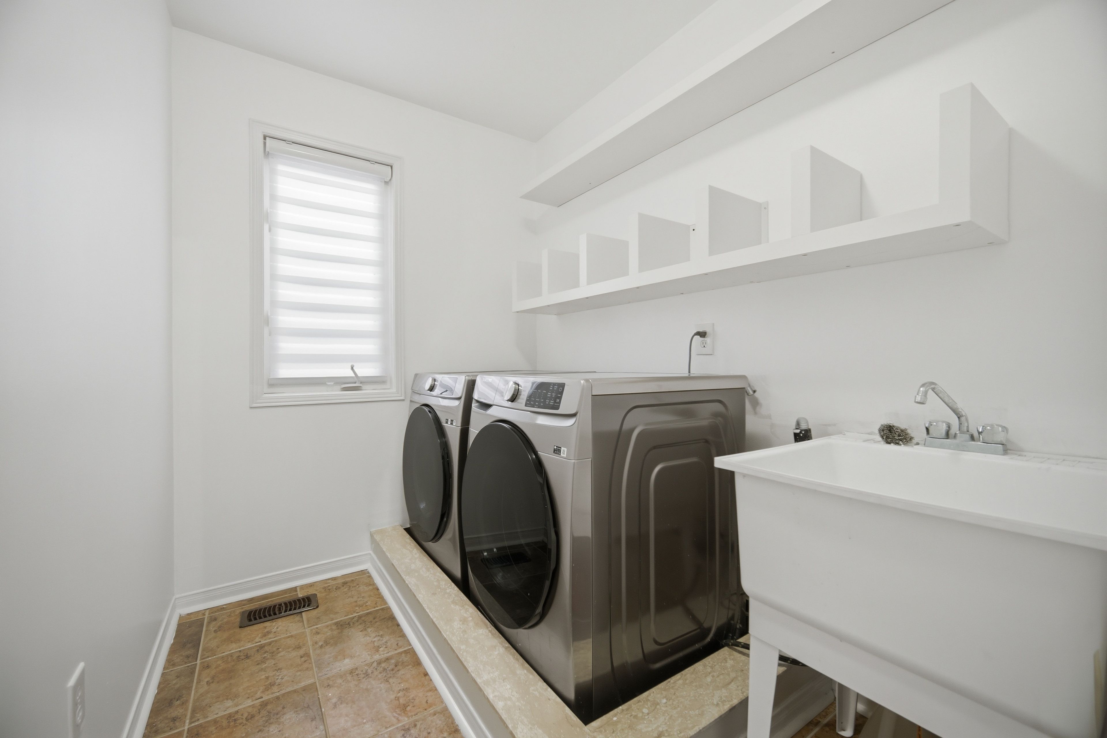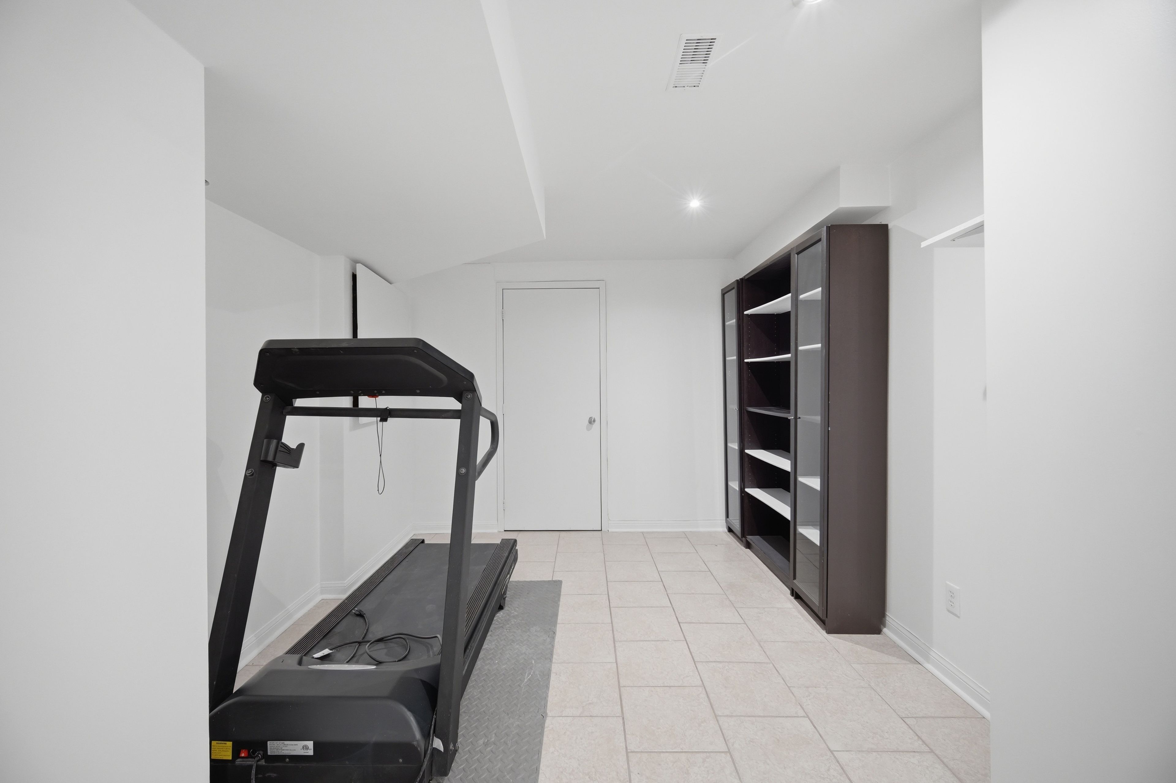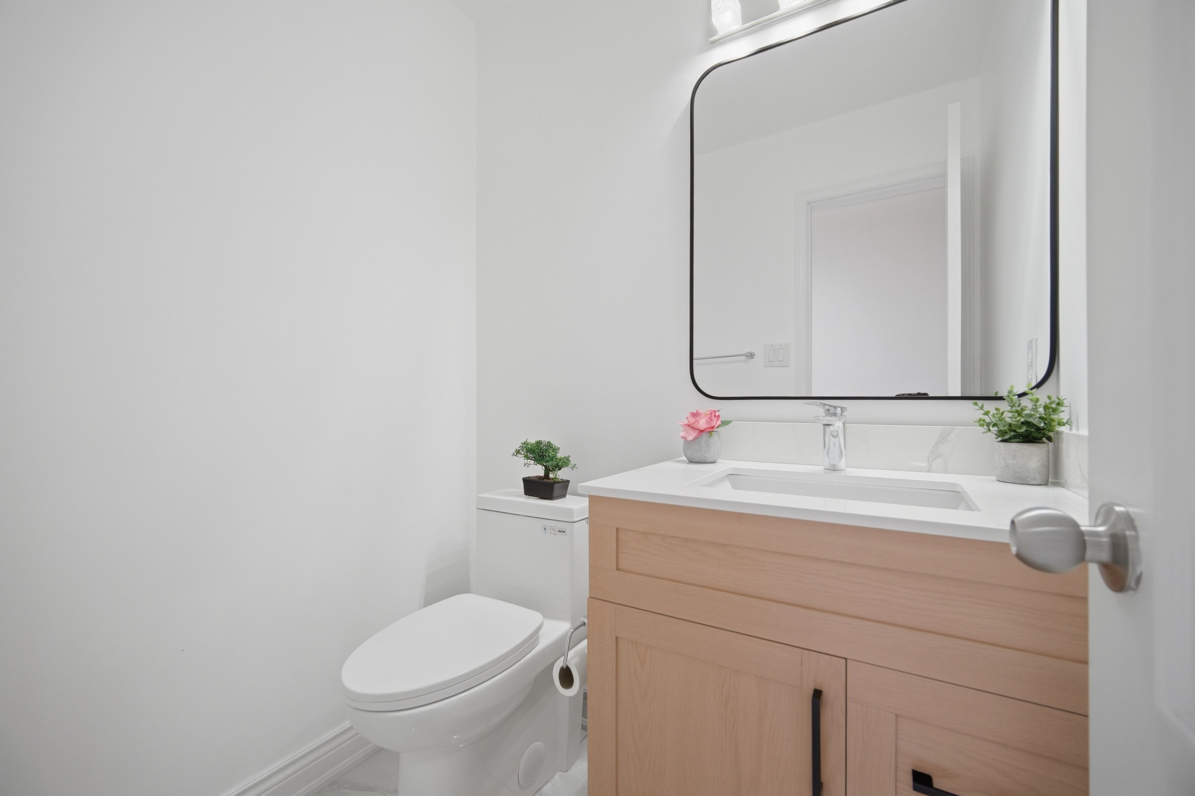 Wow! This is an absolute showstopper and a must-see! This stunning home offers exceptional privacy, abundant natural light, and one of the largest layouts on the street (approx. 1,757 sq. Ft.). Bright and meticulously maintained, it features a grand double-door entry and a spacious foyer, leading into an open-concept living and dining area with hardwood flooring and pot lights. Enjoy brand new 24"x24" porcelain tiles and a modern kitchen complete with quartz countertops, stylish backsplash, and a breakfast area overlooking a beautifully designed backyard-perfect for relaxing or entertaining. Elegant oak stairs lead to the second level, where you'll find a spacious primary bedroom with a custom built walk-in closet and ensuite bath, along with two other large sized bedrooms with double closets. A convenient second-floor laundry room adds everyday ease. Freshly painted throughout, this home also features an extended driveway and a tastefully finished basement with a large recreation area, open bar, 2-piece bathroom, and additional storage-ideal for hosting gatherings. This house garage is attached but the roof in the back is fully detached. Located in a superb, family-friendly neighborhood close to major shopping, schools, and just minutes to mount pleasant go station, new tennis court wj clifford park. A perfect blend of style, space, and convenience-don't miss this incredible opportunity!
