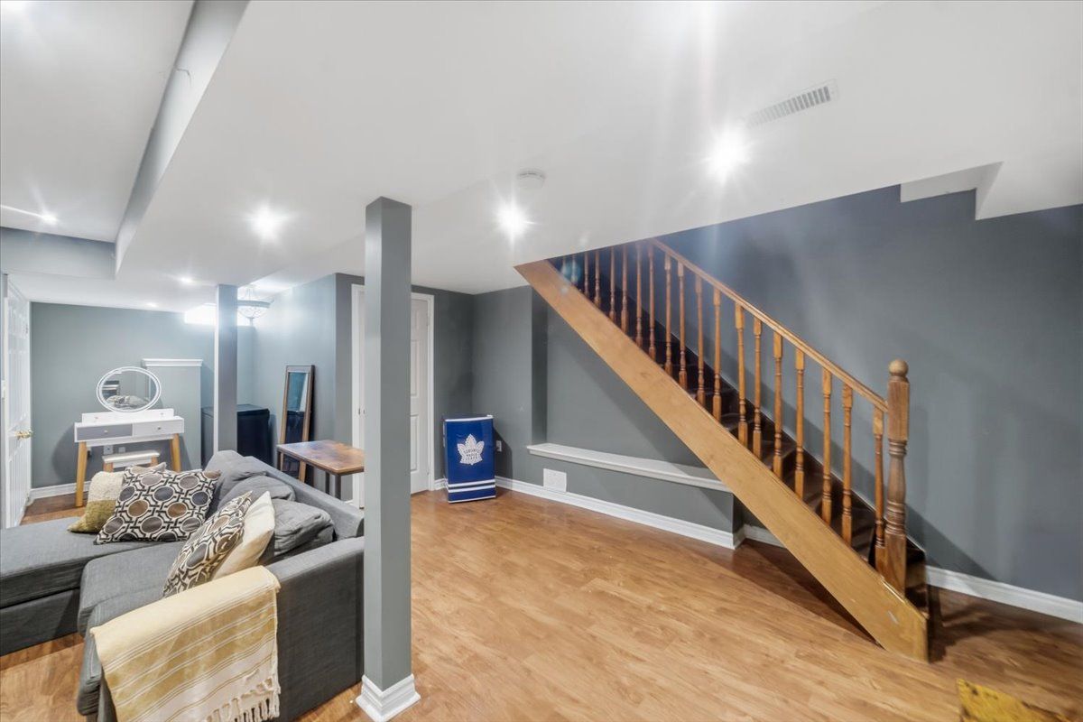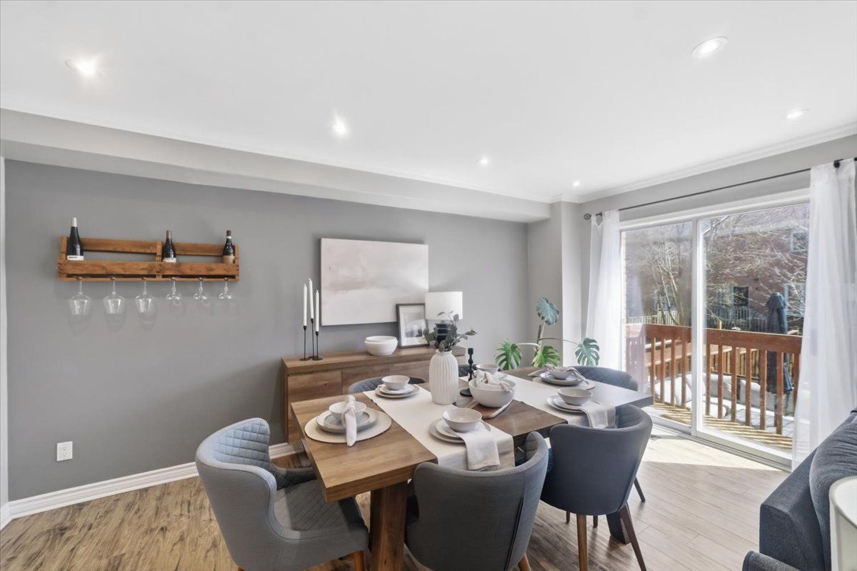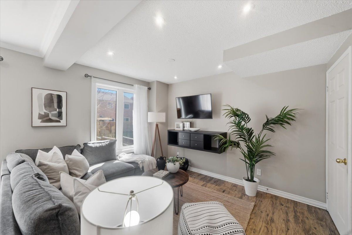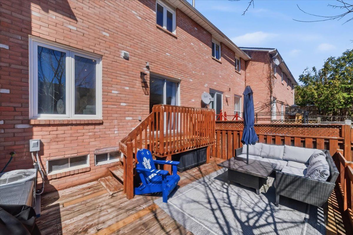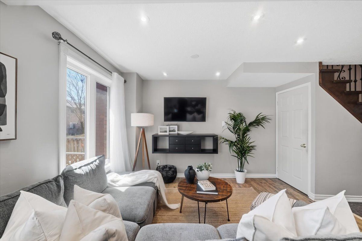 Welcome to 87 thorp crescent - a beautifully maintained townhome nestled in one of ajax's most desirable and family-friendly communities. This inviting property is perfectly suited for first-time homebuyers seeking comfort and value, as well as empty nesters looking to downsize without compromise. Step inside to discover a bright and open-concept main floor designed for modern living. The functional layout seamlessly connects the living and dining areas, creating an ideal space for both everyday living and entertaining. Large windows fill the home with natural light, enhancing the warm and welcoming atmosphere. Upstairs, you'll find three well-proportioned bedrooms, offering flexibility for families, guests, or a home office. The finished basement adds valuable additional living space-perfect for a recreation room, media area, or private retreat. This home has been thoughtfully updated for peace of mind, featuring a newer central ar conditioning unit (2024), a high-efficiency furnace, roof, and all windows (2019). The front door and garage door were also upgraded in 2019, enhancing both curb appeal and energy efficiency. (hot water tank is a rental.)step outside to a beautifully landscaped backyard complete with a tiered deck-an ideal setting for summer gatherings or quiet relaxation. With all-day sun exposure, this outdoor space is a true highlight. Located in a spectacular ajax neighbourhood, you're just a short walk to public schools, shopping, and everyday amenities, making this home as convenient as it is charming. Don't miss this opportunity to own a move-in-ready home in a vibrant, well-connected community.