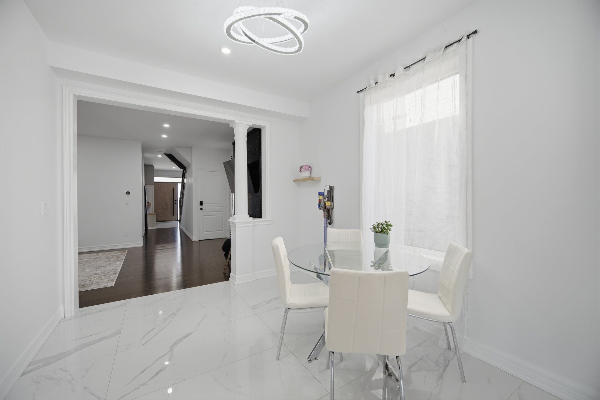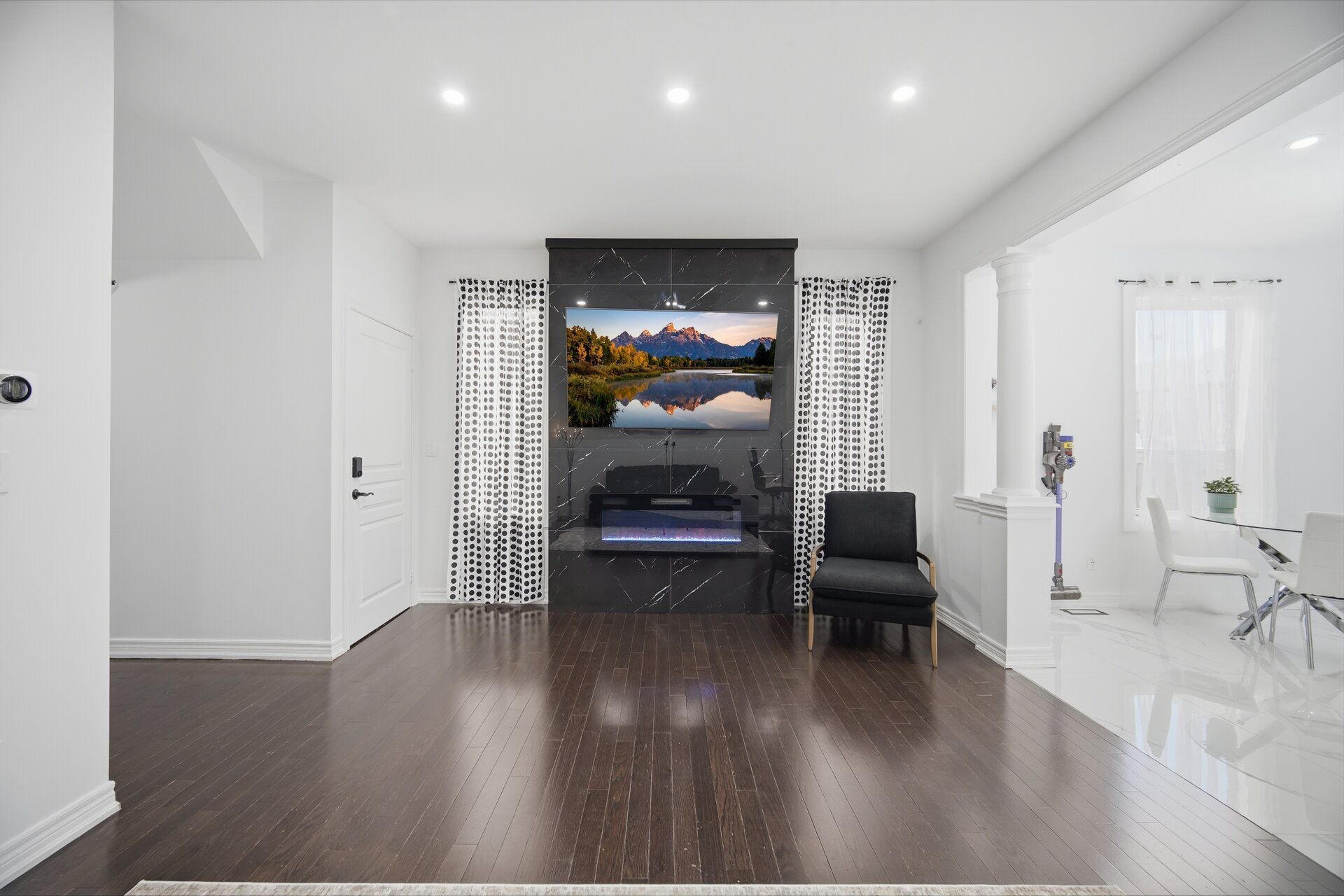 • Open-concept layout with 9-foot ceilings and elegant hardwood flooring.