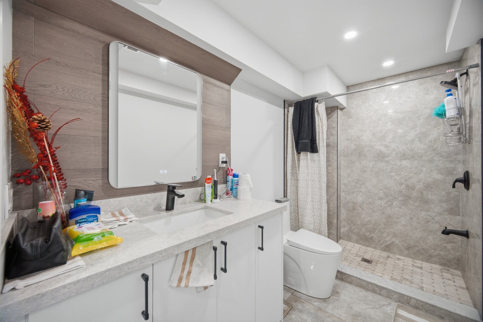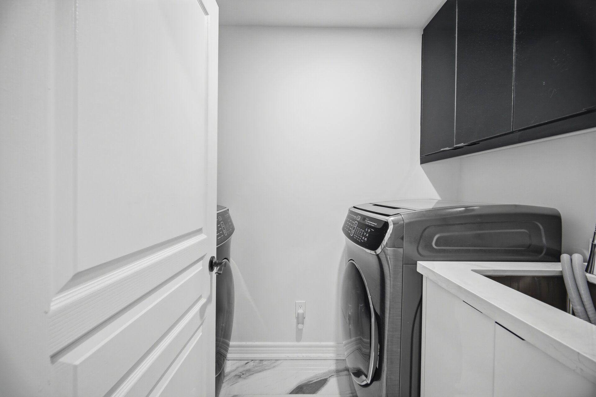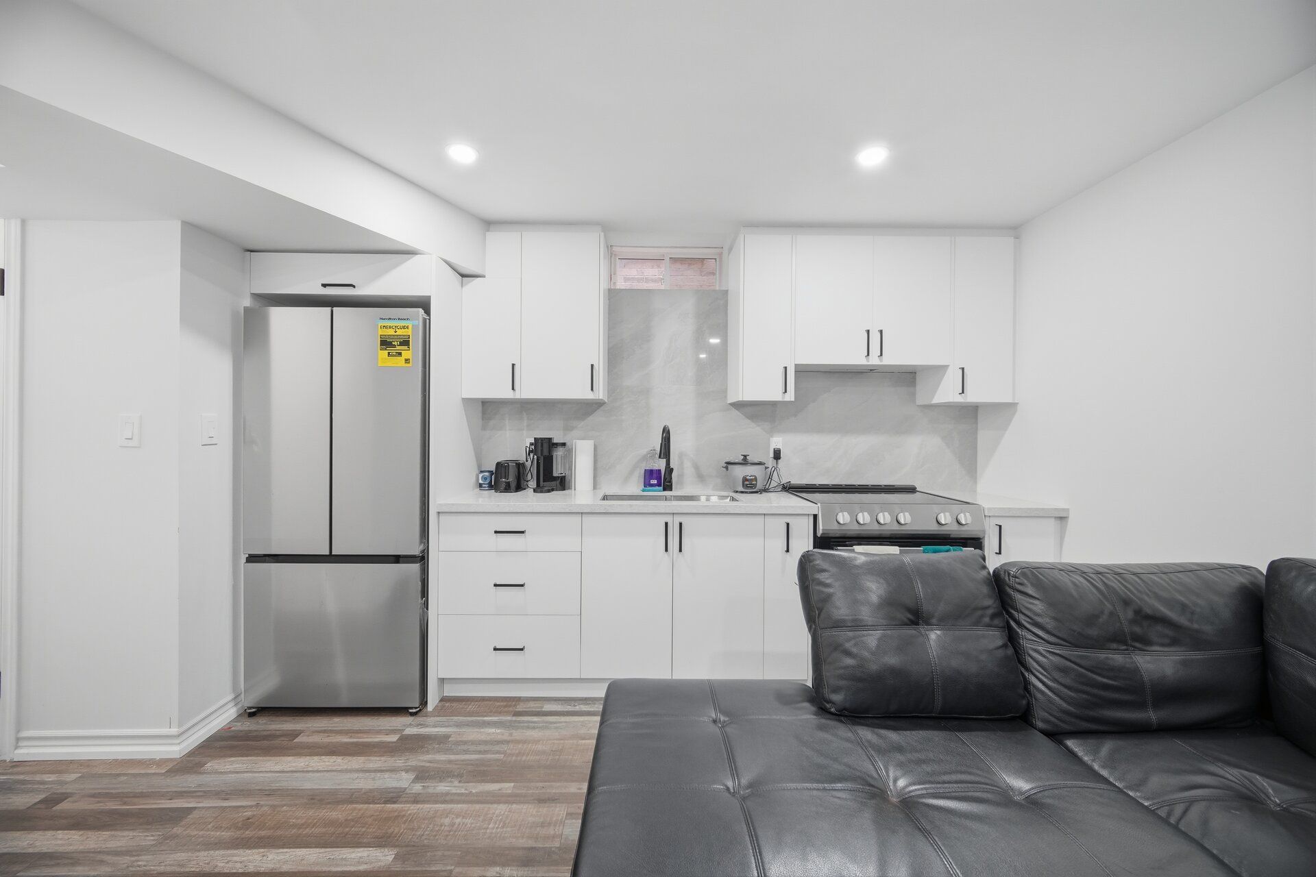 • Modern kitchen with quartz countertops and stainless steel appliances.