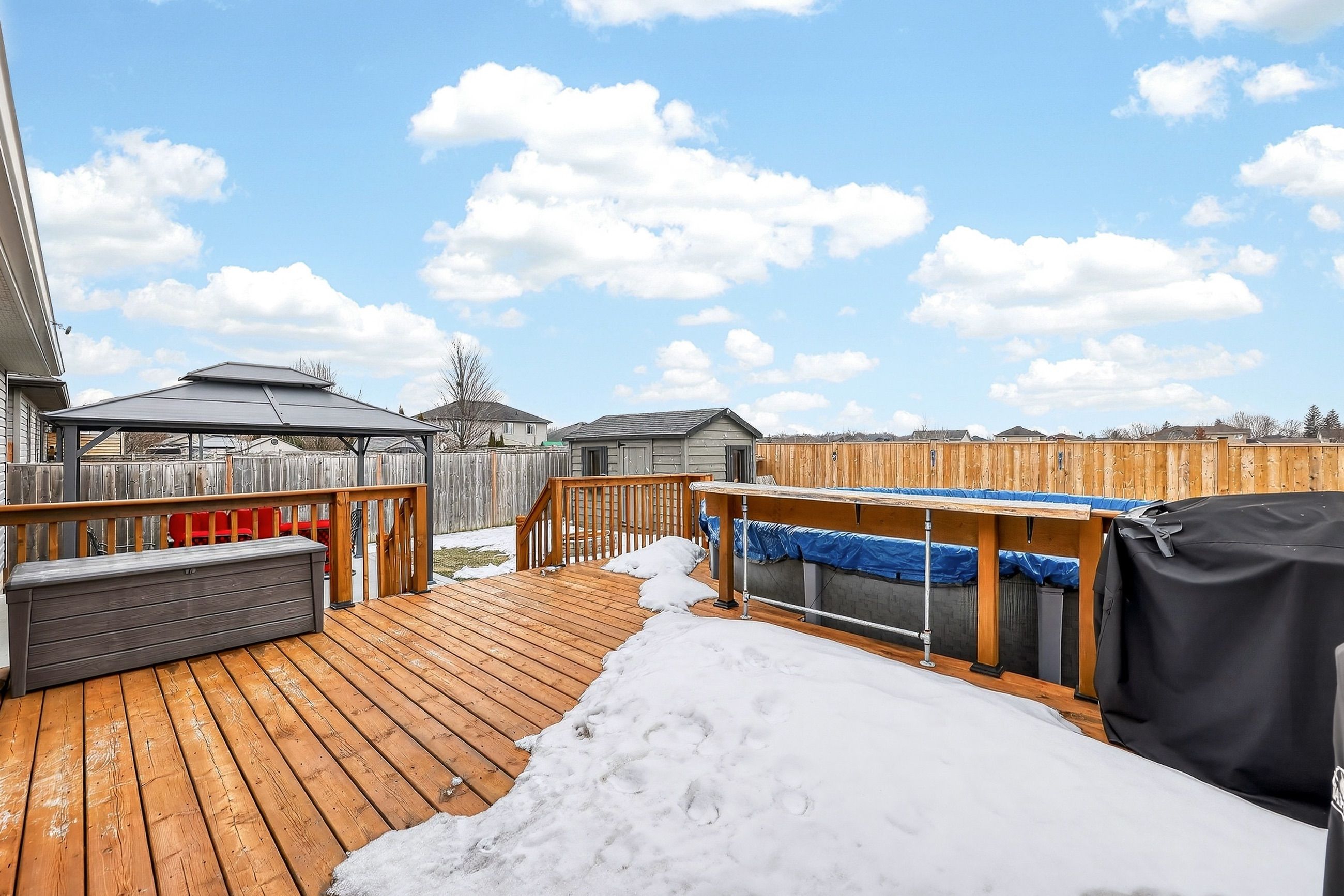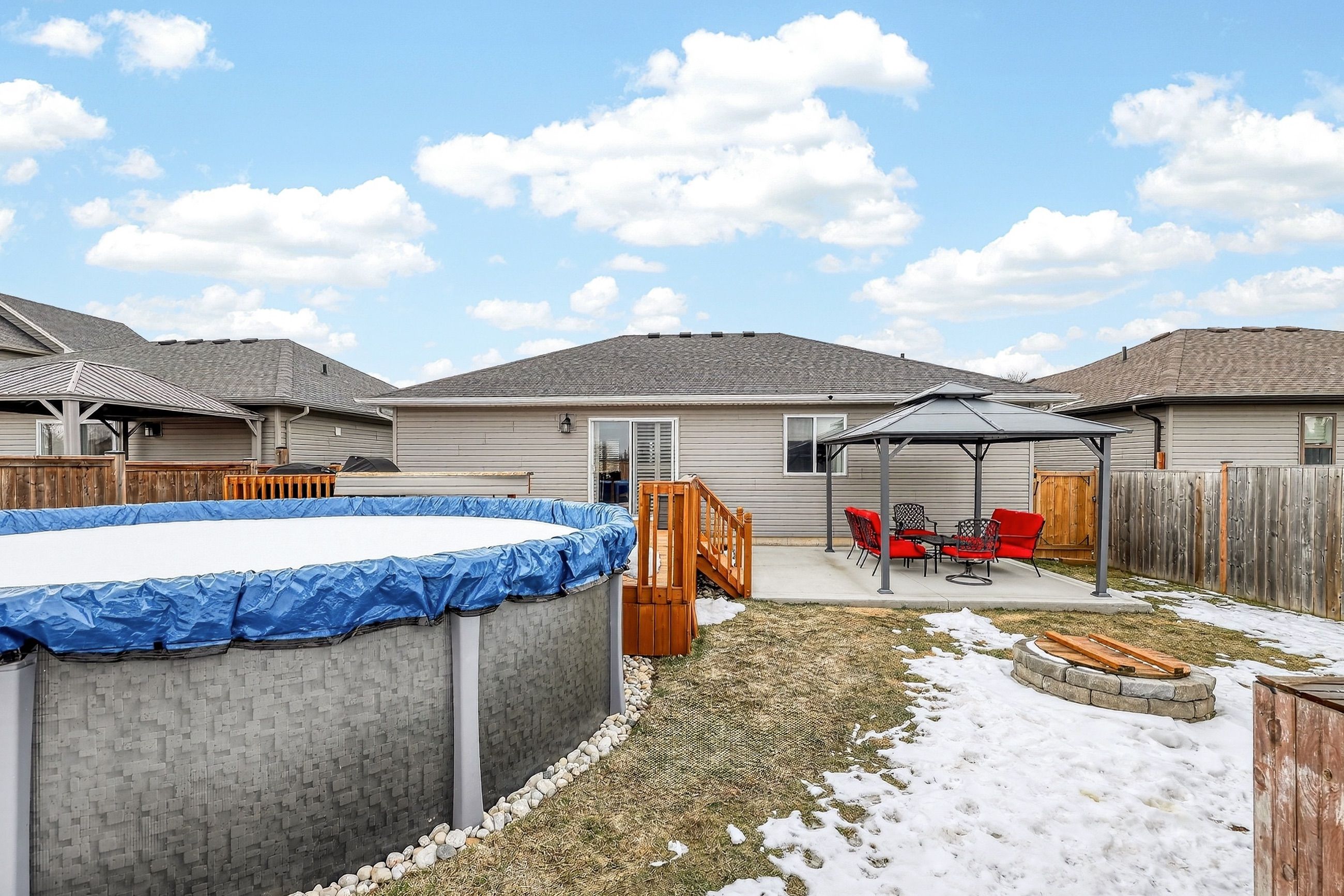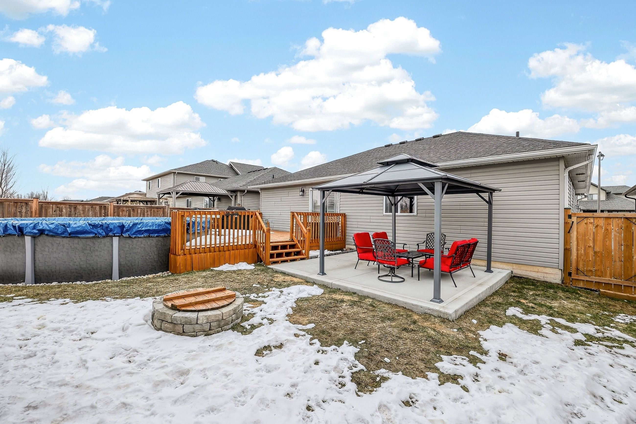 Welcome to this beautifully maintained 2+1 bedroom bungalow offering 2,018 sq ft of finished living space, located in a desirable ingersoll neighbourhood within the royal roads public school district. With its bright open layout, quality finishes, and excellent outdoor space, this home offers comfortable living both inside and out. The main floor features 1,325 sq ft with luxury vinyl plank flooring and a spacious open-concept design. The kitchen offers granite countertops, abundant cabinetry, tiled backsplash, stainless steel appliances, and a large breakfast bar that overlooks the living area-ideal for everyday living and entertaining. Large windows fill the home with natural light, creating a warm and inviting atmosphere. The primary bedroom includes a walk-in closet and 5pc ensuite, the main level also offers a second bedroom and full bathroom. The finished lower level expands the living space with a generous family room, an additional bedroom, and a potential fourth bedroom already pre-framed and is currently used as storage, offering excellent potential for growing families or guests. Step outside to the back deck, where you'll find a 2-year-old saltwater above-ground pool, perfect for summer enjoyment, along with a storage shed and fenced yard. Additional highlights include a double car garage, great storage, custom blinds, and a location that is close to parks with quick and easy access to highway 401, making commuting convenient. A wonderful opportunity to own a move-in ready bungalow in a family-friendly neighbourhood.