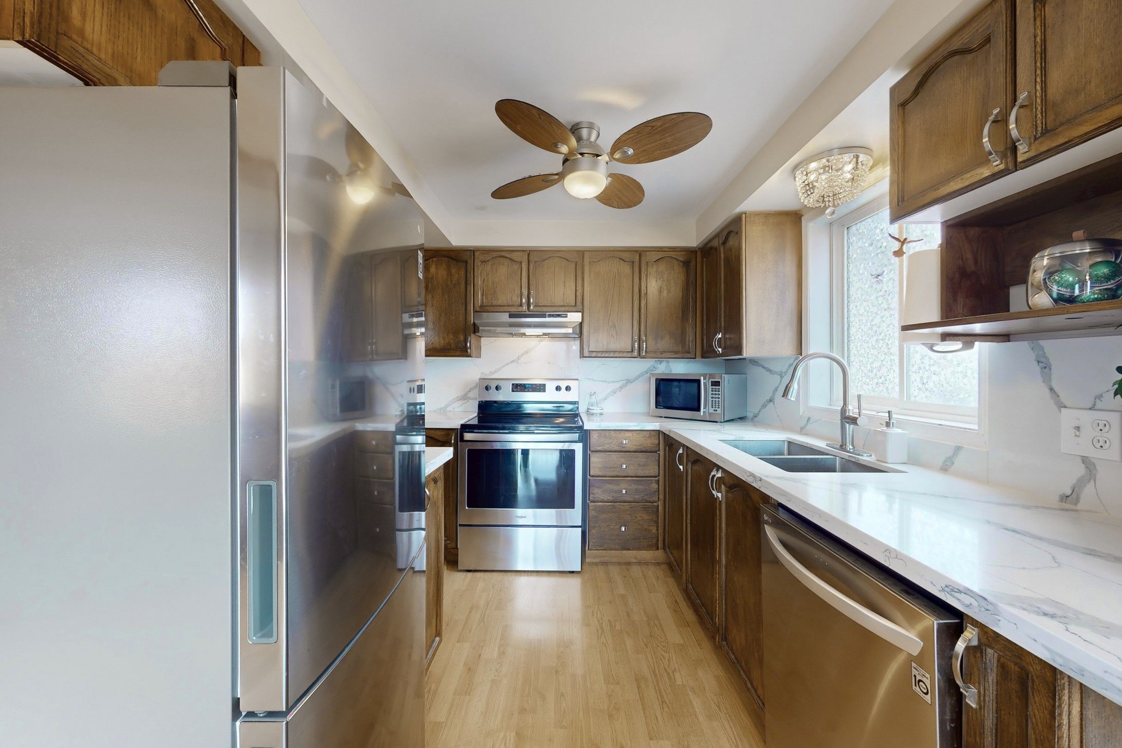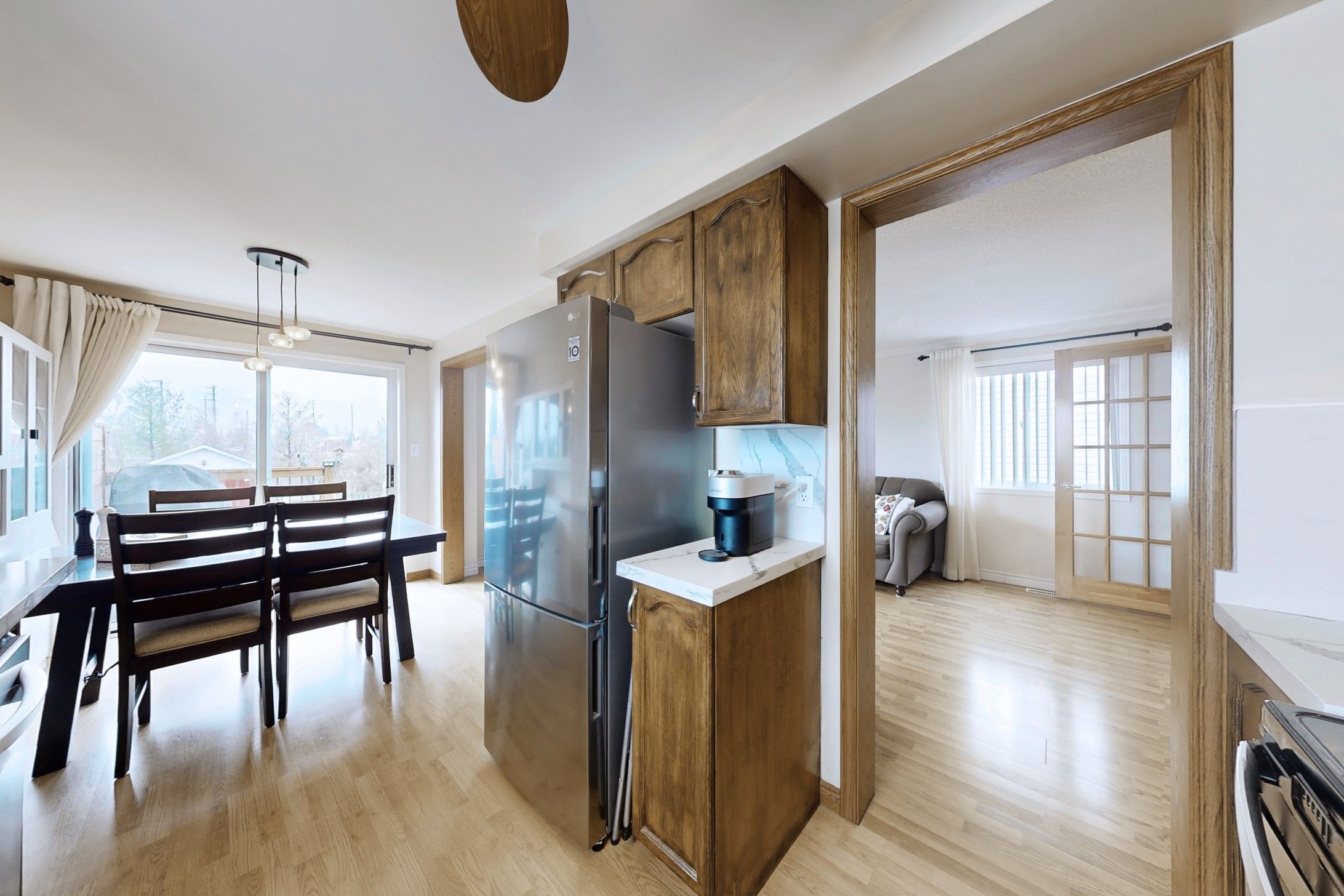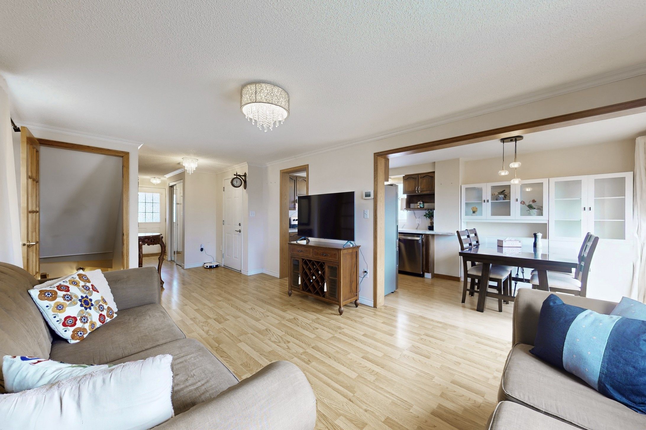 • Bright open concept layout with large windows for natural light.