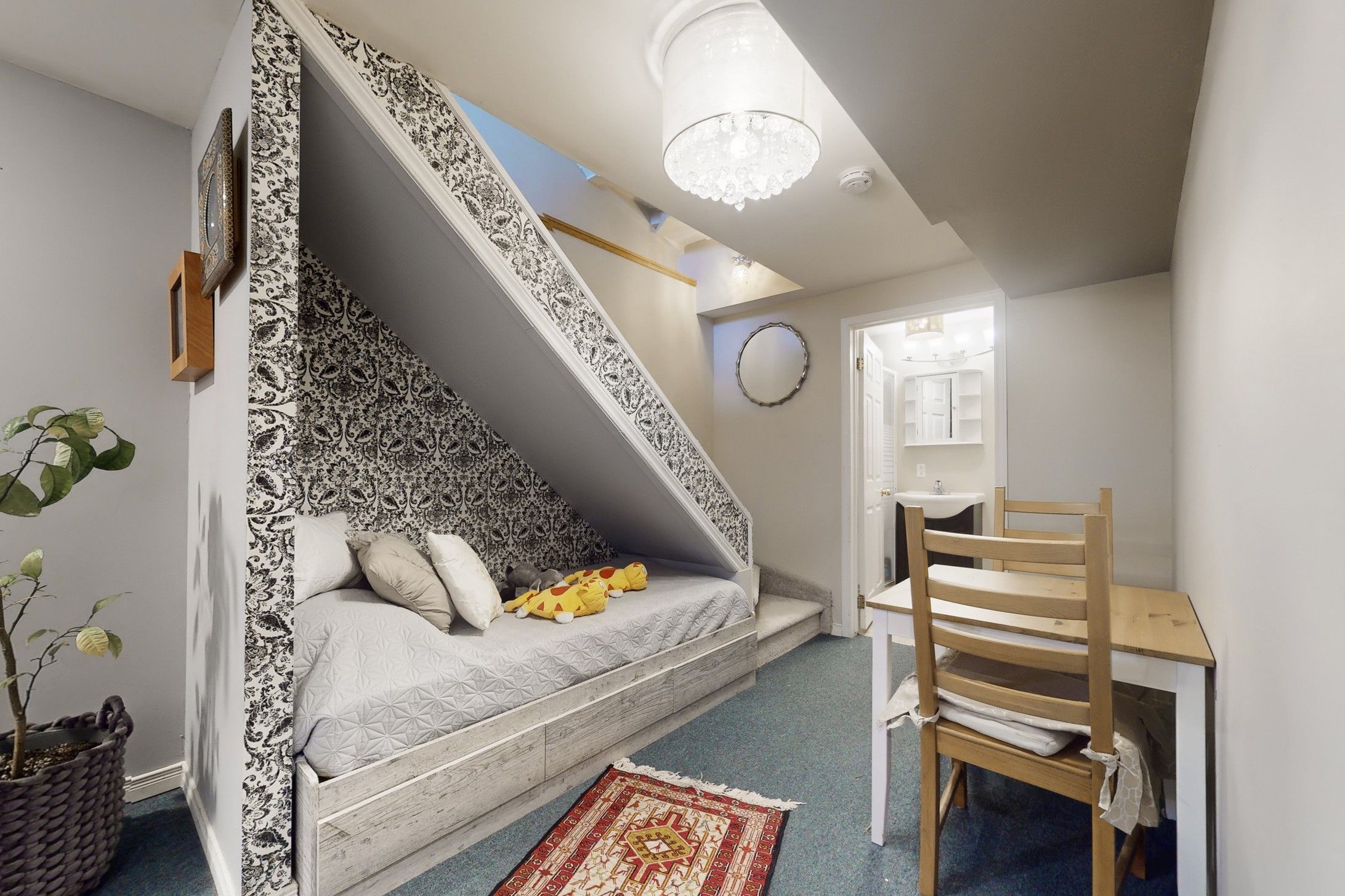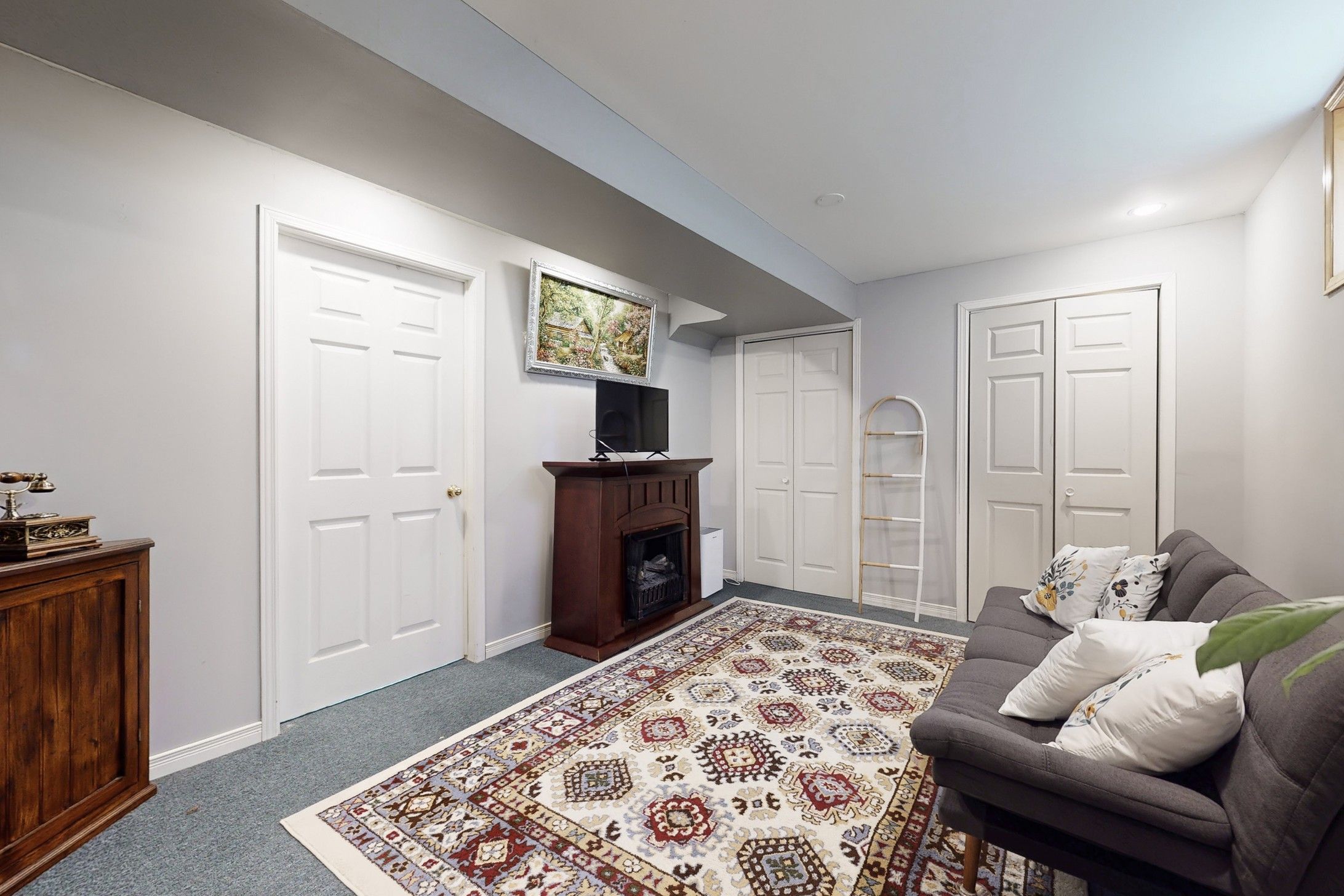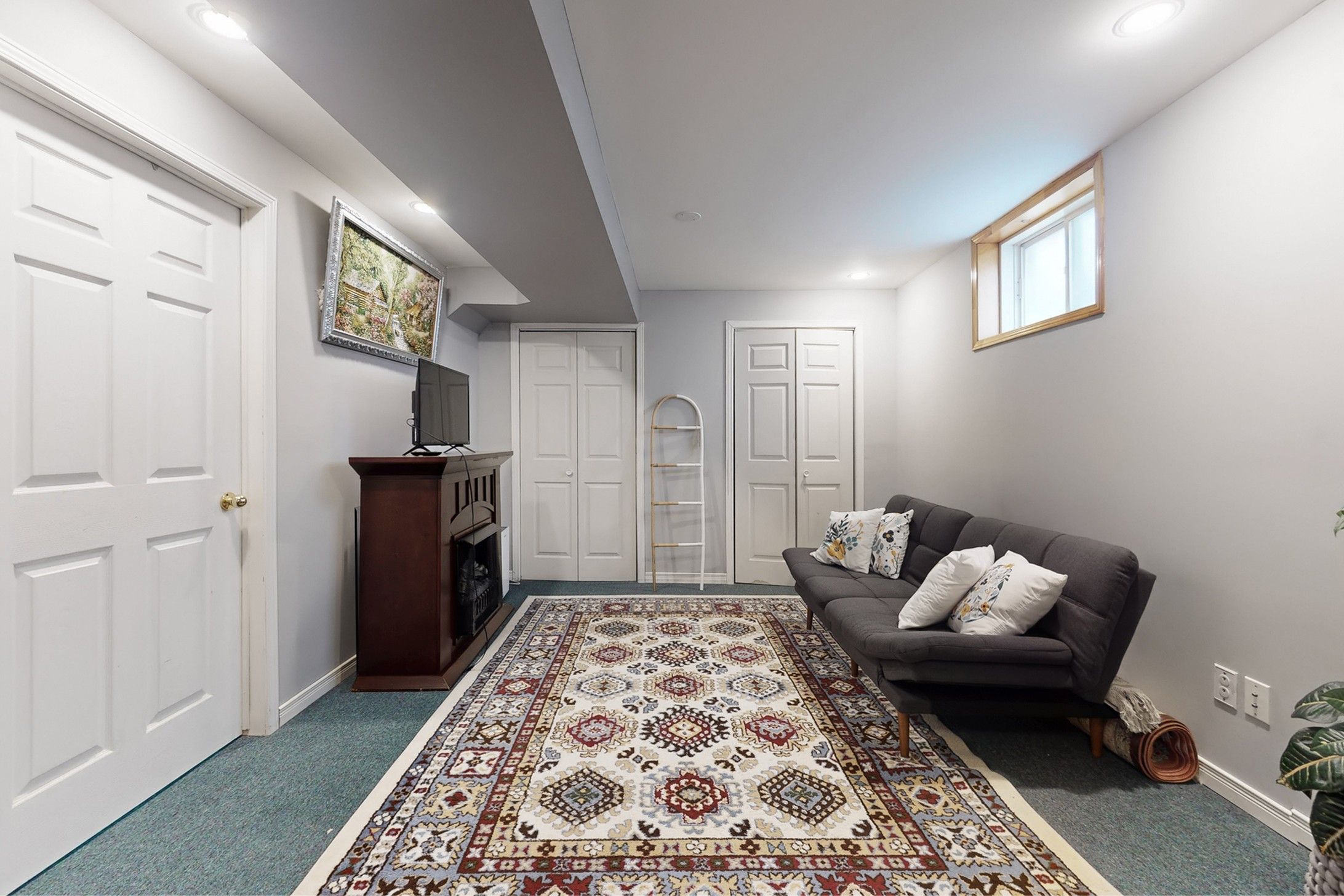 • Finished basement features a cozy reading nook for relaxation.