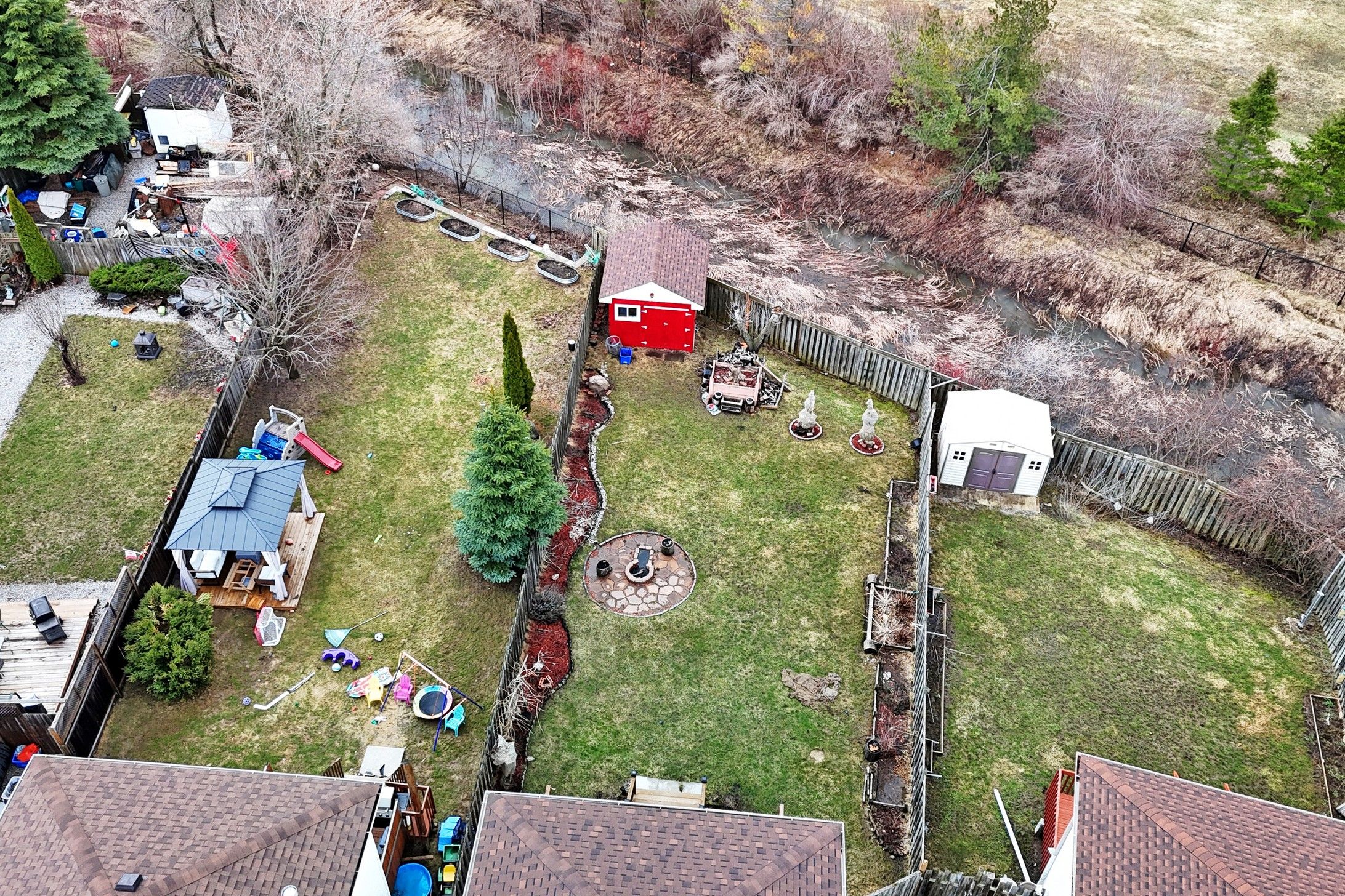 Tucked away in a sought-after barrie neighbourhood, this beautifully cared-for home offers the perfect blend of comfort, style, and natural surroundings. Backing directly onto bear creek, the property provides a rare opportunity to enjoy peaceful water views, mature trees, and added privacy right from your own backyard-an ideal setting for relaxing, entertaining, or unwinding at the end of the day. The interior features a bright and functional open-concept layout, enhanced by large windows that bring in abundant natural light and showcase the serene outdoor setting. With 3 generously sized bedrooms, 2. 5 bathrooms, and a finished basement complete with a cozy reading nook, the home is well-suited for growing families or those seeking extra living space. Conveniently located just minutes from schools, parks, shopping, major commuter routes, and only a few minutes to highway 400, it offers both tranquility and accessibility. Extensive updates and improvements include: owned water heater under warranty (2021), updated light fixtures throughout (2021), renovated powder room and primary washroom (2021), roof (2022), fridge (2022), dishwasher (2022), backyard fire pit (2022), as well as full backyard landscaping and a newly built deck (2022). A rare offering that combines everyday convenience with a peaceful, nature-filled backdrop.