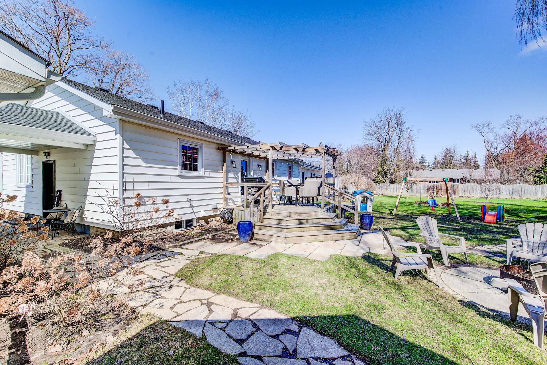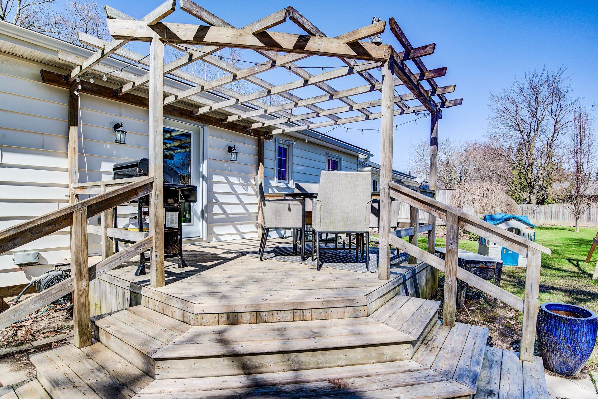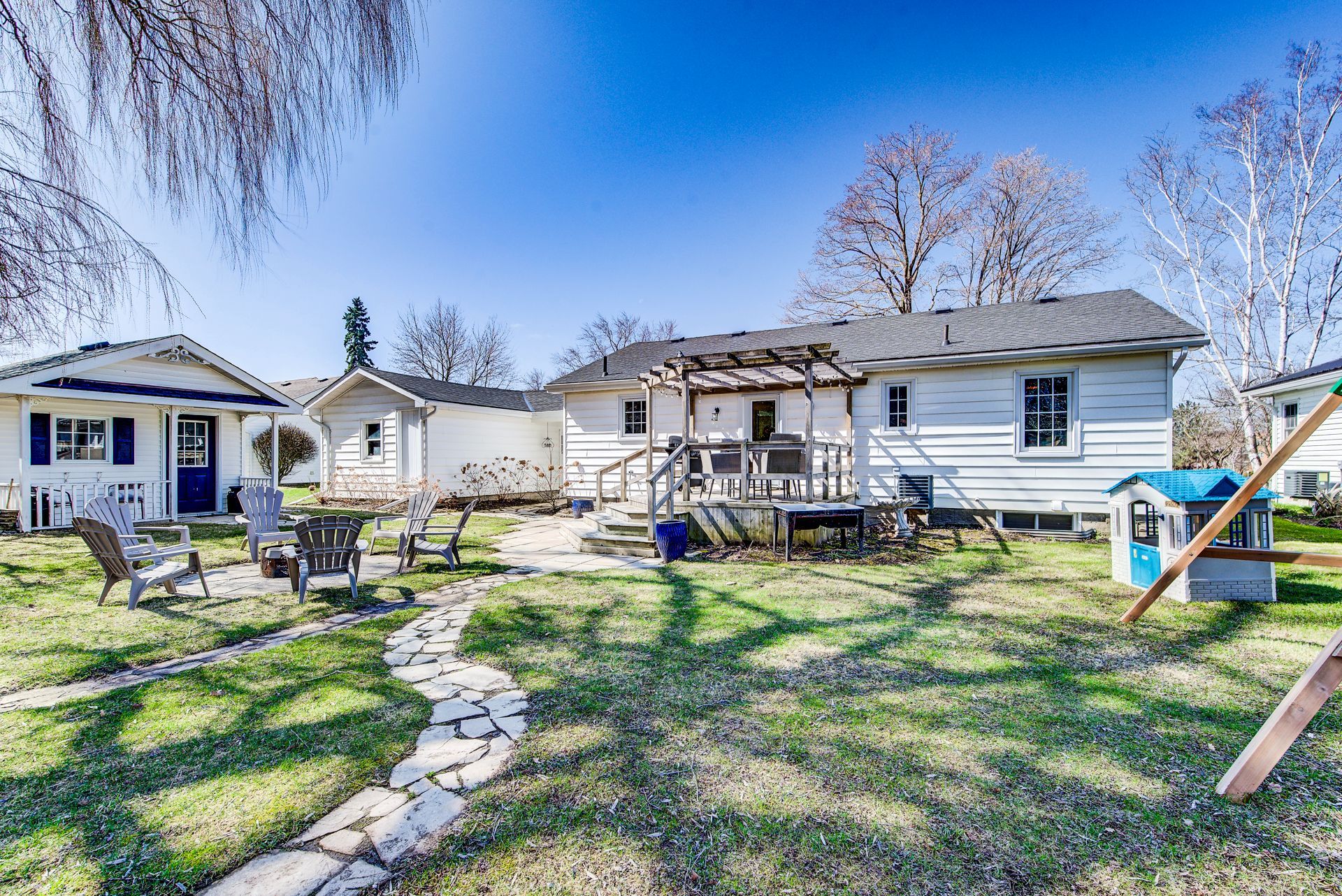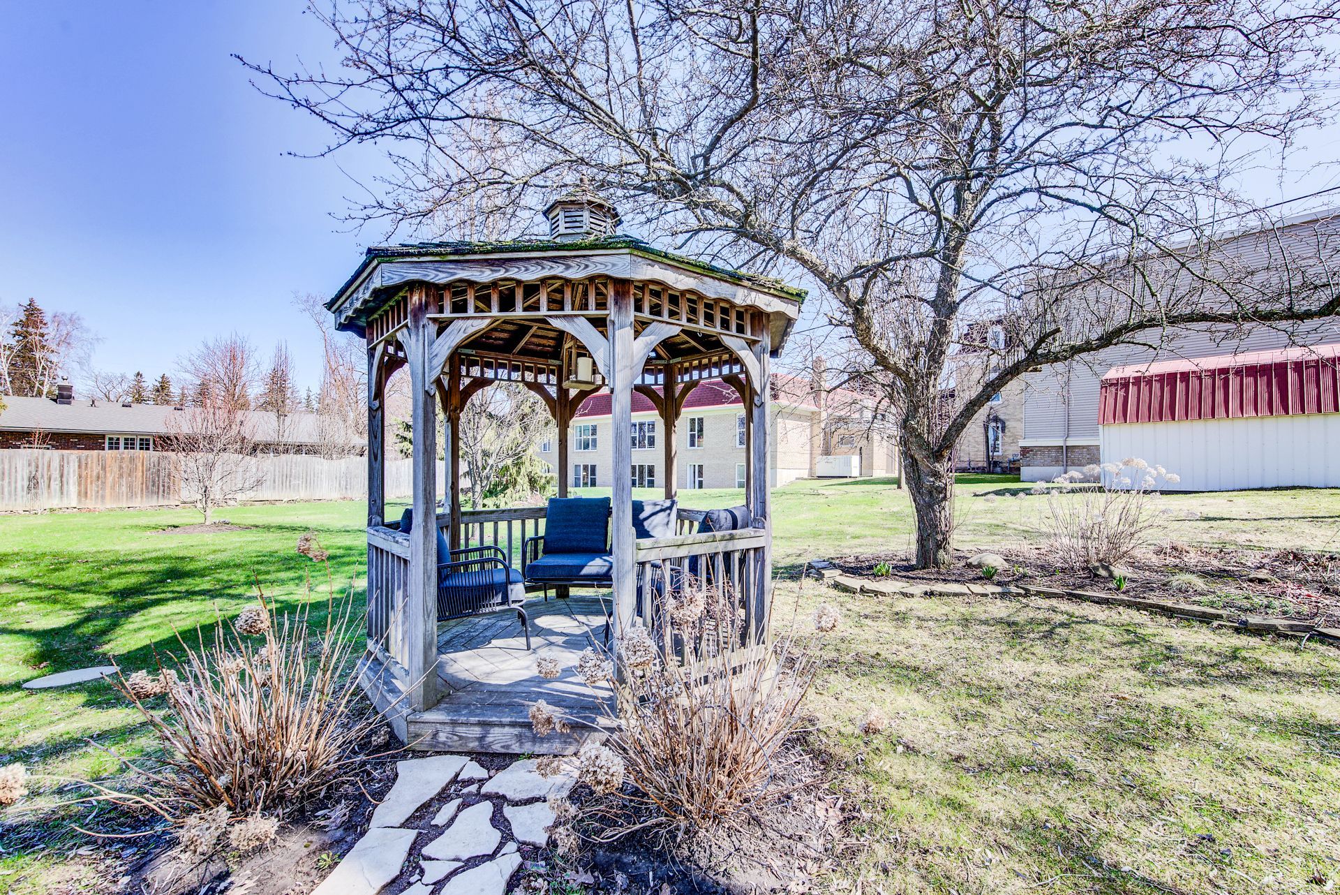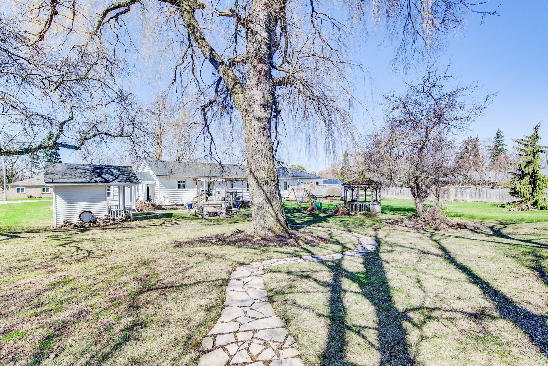 • Large park-like lot with gazebo, fire pit, and deck for outdoor gatherings.