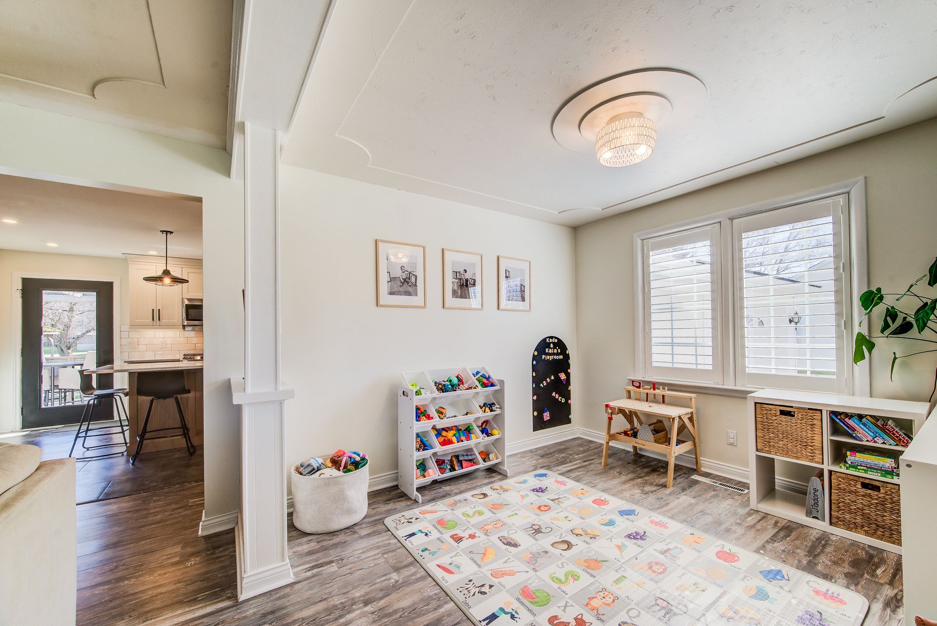 • Versatile dining area perfect for home office, dining, or playroom use.