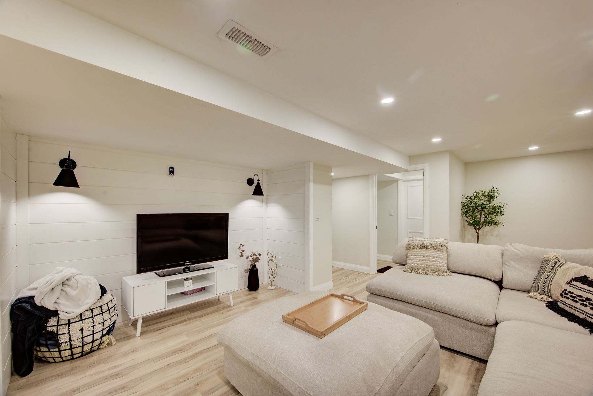 • Finished basement includes family room, bedroom, bath, and wet bar.