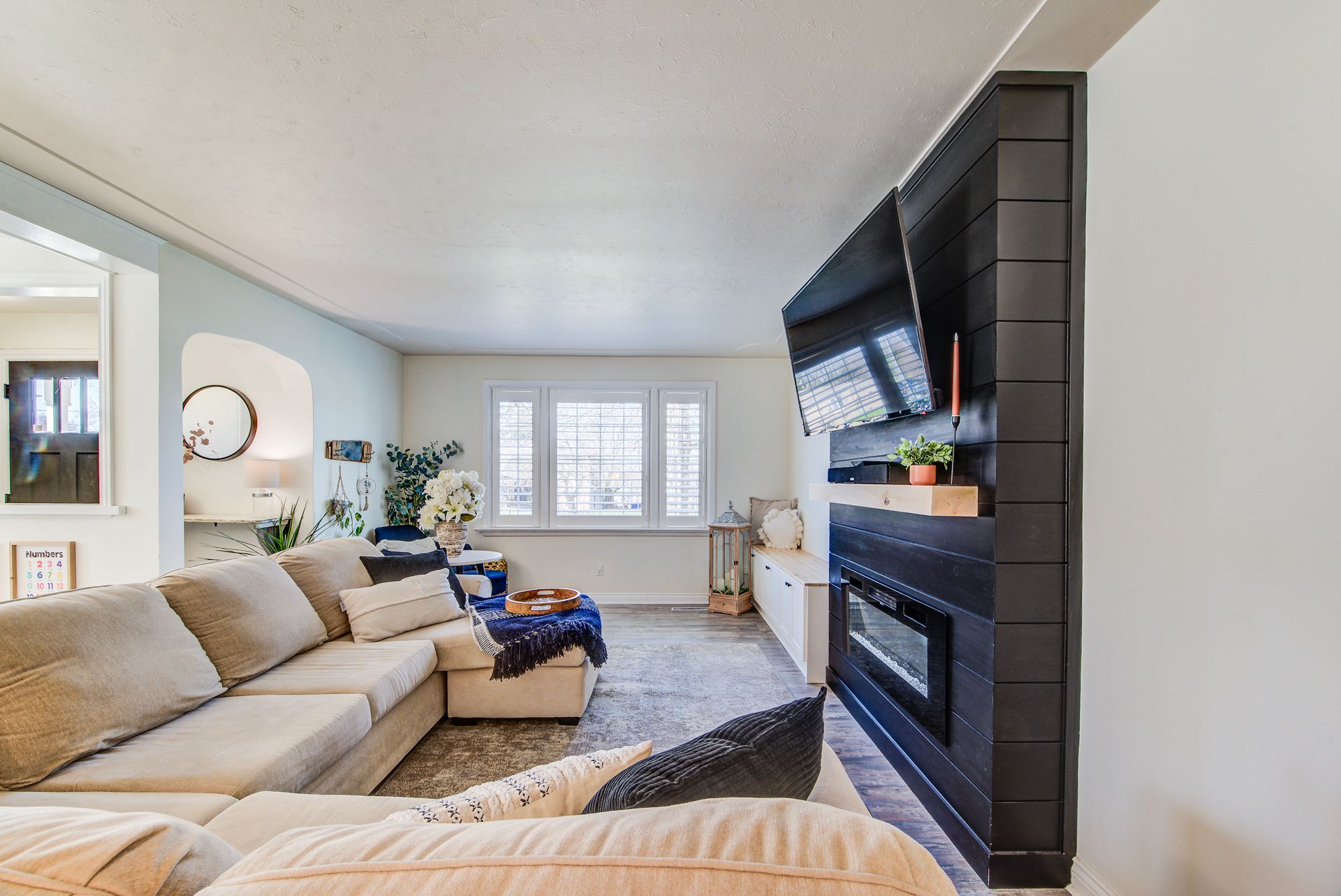 From the moment you walk into this completely renovated home you will fall in love with this bright and airy home. The kitchen is the centre of the home and offers an 8 ft island, upgraded cabinetry, 3 ft pantry, stunning bar area with floating shelves and farmhouse lighting. Lots of pull-out drawers, pull out garbage/recycling caddy. The living room offers a large window, built in electric fireplace, built in cabinets and bench seating. The dining area is currently used as a playroom and offers many different options such as home office, dining room, toy room, etc. California shutters on living and dining room windows complete the look. Two large bedrooms offer lots of space, both have 2 windows and the second bedroom has built in closet system with pull out drawers. The basement is finished to include a family room, bedroom, bath and wet bar area ~ perfect for an in-law suite/teenager/etc. There is a large laundry room with built in cabinets and countertop. This home sits on a large park like lot and offers a gazebo, a shed and an oversized one car garage. There is a deck off of the kitchen, patio stones to the lovely flowerbeds, fire pit ~ perfect for outdoor gatherings! Call today to view this lovingly renovated home.