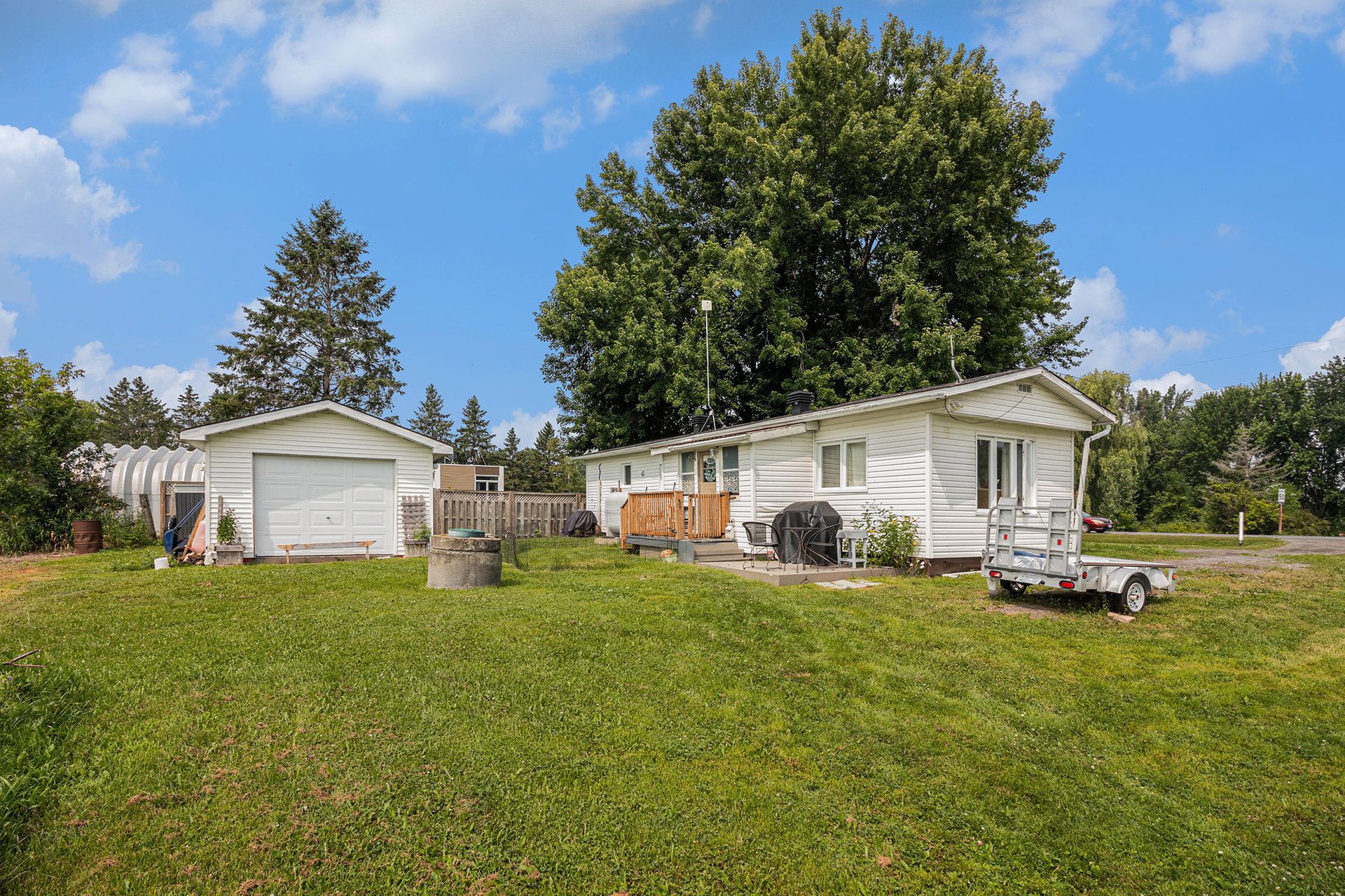 Are you ready to leave the hustle and bustle of the city behind and embrace the peace, tranquility, and freedom of rural living? Maybe you're looking for that small home with big potential. This updated 900 sq. Ft., two-bedroom, one-bath bungalow is everything you want-and all you truly need. Big enough to live comfortably, yet small enough to give you back your time for what matters most. Located within an hour of ottawa and just a 3-minute walk to the treadwell marina on the ottawa river, you'll have easy access to a clean, well-kept boat launch-perfect for kayaking and taking in the fresh country air. Imagine coming home, kicking off your shoes, and hearing nothing but the birds. Inside, the kitchen offers plenty of cabinetry, with a mudroom just off of it featuring abundant storage for all your seasonal gear. The open-concept living, dining, and kitchen areas make entertaining a pleasure. Step out onto the new, low-maintenance composite deck to enjoy your morning coffee overlooking rolling farmers' fields that stretch as far as the eye can see. The sunrises and sunsets will take your breath away-every single time. This home has been thoughtfully updated, including a brand-new furnace and heat pump, giving you modern efficiency and year-round comfort. To the left of the property, you'll find an insulated, heated, and recently renovated hobby shop/home office complete with all new windows, new flooring, and a brand-new propane fireplace. Just add plumbing and you have the potential for a separate 1-bedroom studio or in-law suite. Behind the house, the single-car garage has been transformed into a heated, insulated workshop with a full-width storage room and a new roof (oct. 2024). Ready to be more independent-grow your own food, raise chickens, or simply enjoy a quieter way of life? This country gem offers the lifestyle you've been dreaming of.