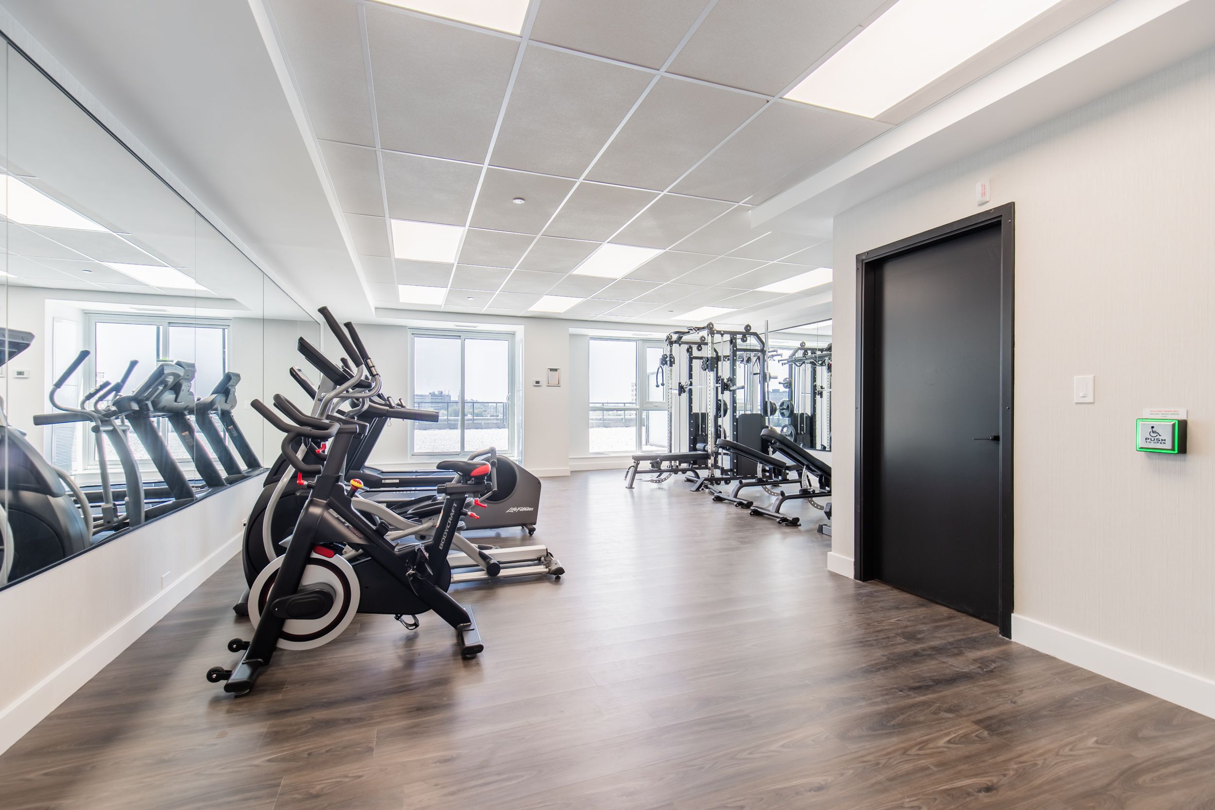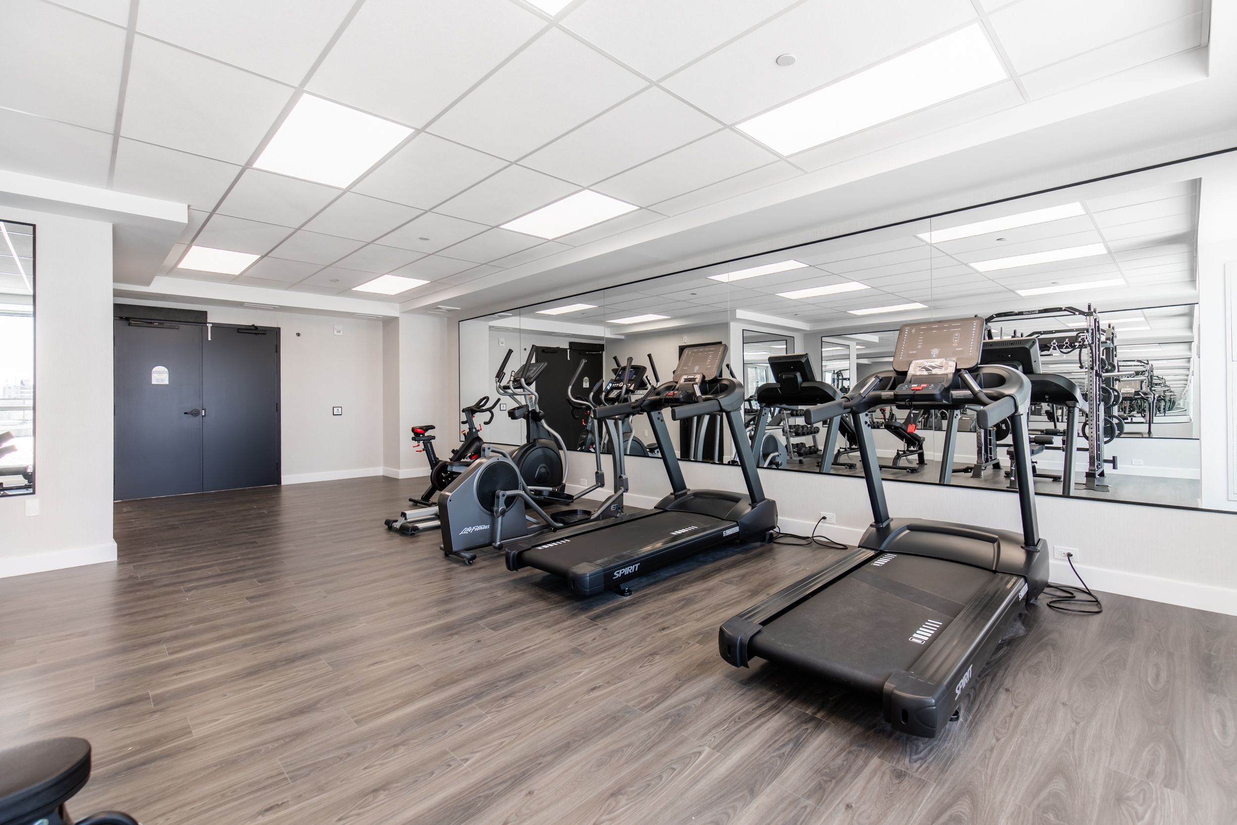 • Building includes a fitness centre, bike storage, and pet wash station.