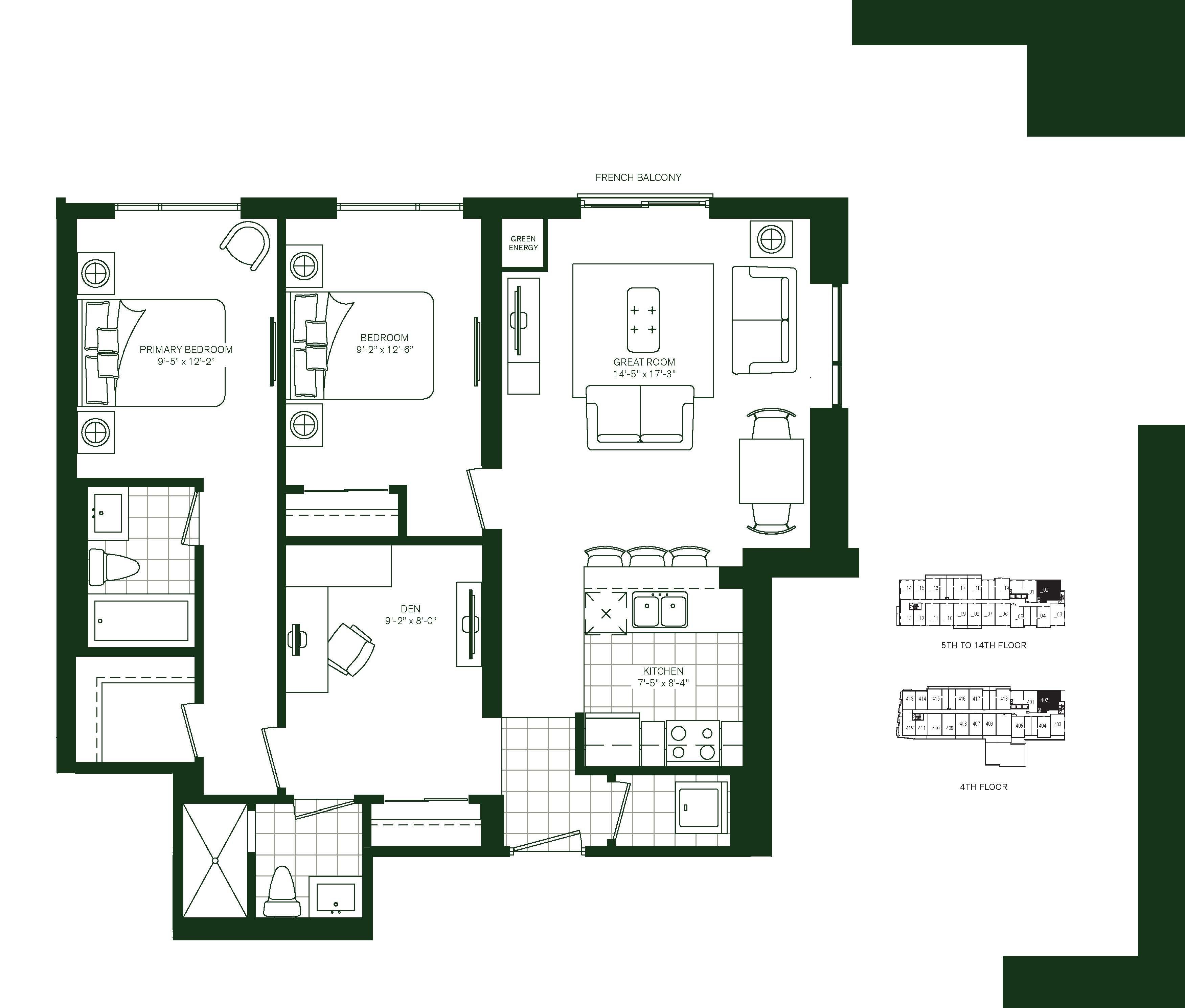 • Spacious 2-bedroom suite with a den for extra living space.