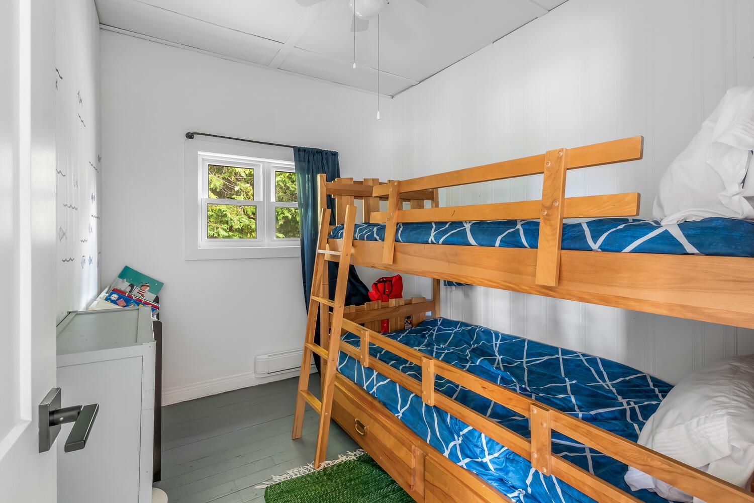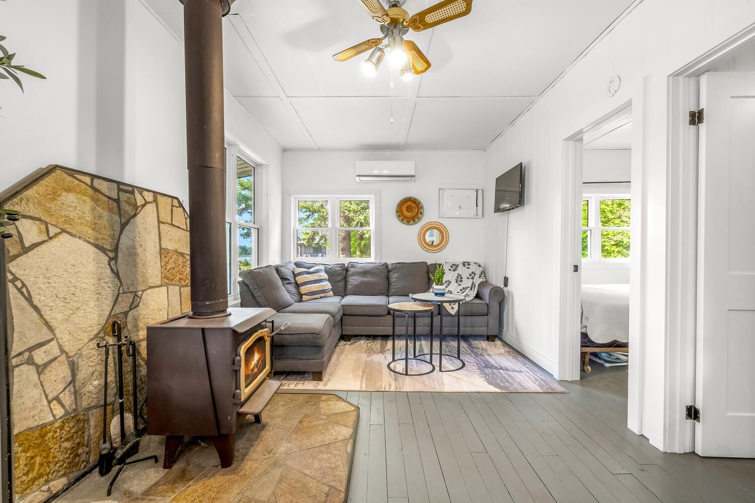 Tucked away in the picturesque community of pike bay, this beautifully refreshed now 4 season 2-bedroom, 1-bath cottage plus a seasonal bunkie, combines rustic character with a long list of updates! Designed as a cozy retreat, it offers the perfect balance of relaxation and convenience whether you're escaping for a weekend getaway or planning family summers on the bruce peninsula. The open-concept kitchen/living/dining area creates a welcoming atmosphere, anchored by a cozy wood stove perfect for gathering with loved ones or curling up on cooler nights. So many recent upgrades including windows, flooring, kitchen, bathroom, laundry, interior doors, iron filter, water heater, heat pump w a/c plus the cottage has been winterized w foam insulation, aspenite and new siding, ensuring both comfort and peace of mind. The inviting covered porch extends the living space outdoors, ideal for enjoying your morning coffee, relaxing with a good book, or taking in the surrounding natural beauty and lake views. New 10x16 bunkie/shed provides for an excellent space for extra guests, storage for tools, toys, or seasonal gear. Adding to its appeal, the property includes deeded water access with 1/9th ownership just across the road. Whether you're launching a boat, enjoying an afternoon swim, or simply soaking up the sun by the shoreline, water adventures are right at your fingertips. Everyday essentials are close by, lcbo and general store within walking distance, amenities of lions head or wiarton a short drive away. Centrally located on the bruce peninsula, offering easy access to endless outdoor attractions..... Hiking trails, beaches, and breathtaking natural wonders all await. Whether you're searching for a year-round retreat, a seasonal escape, or an investment in a lifestyle property with an already established rental income, this charming pike bay cottage is ready and waiting for new memories to be made..