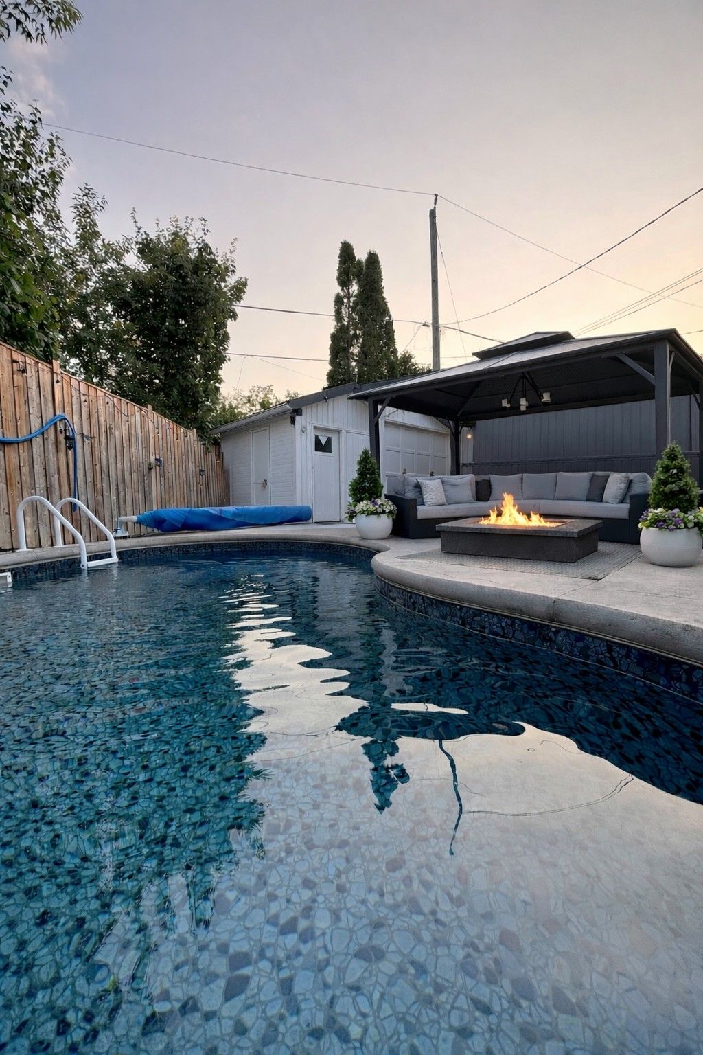 • Private backyard with heated saltwater in-ground pool and gazebo.