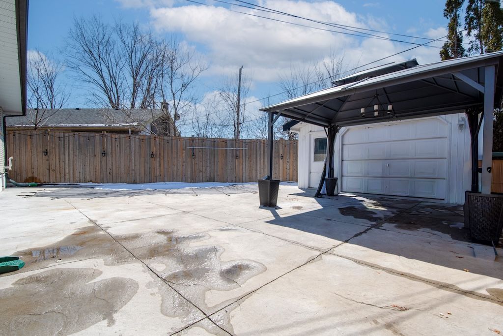 Welcome to this beautifully maintained all brick bungalow, ideally situated in peterborough's sought-after north end. The main level offers three well-appointed bedrooms and a newly updated bathroom (2025), along with elegant hardwood flooring throughout. A bright and spacious living room is filled with natural light from a large front window, creating a warm and inviting atmosphere. The eat-in kitchen features newer, high-end stainless steel appliances and a functional layout designed for both everyday living and entertaining. A convenient side entrance leads to a fully finished lower level, complete with a cozy family room featuring a fireplace and pot lighting an additional bedroom, a bathroom, and a dedicated laundry area-ideal for extended family living or added versatility. Step outside to your private backyard retreat, highlighted by a newly installed heated, kidney-shaped saltwater in-ground pool surrounded by low-maintenance stamped concrete. A hardtop gazebo with solar lighting enhances the space, making it perfect for relaxing or hosting guests. The property also features a new fence along the north side (2025) for added privacy, as well as a detached 1. 5 car garage. Recent updates include shingles, furnace, air conditioning, hot water tank, and the newly renovated upstairs bathroom (2025), offering peace of mind for years to come. Conveniently located near parks, walking and biking trails, schools, and essential amenities, this home clearly reflects pride of ownership throughout.